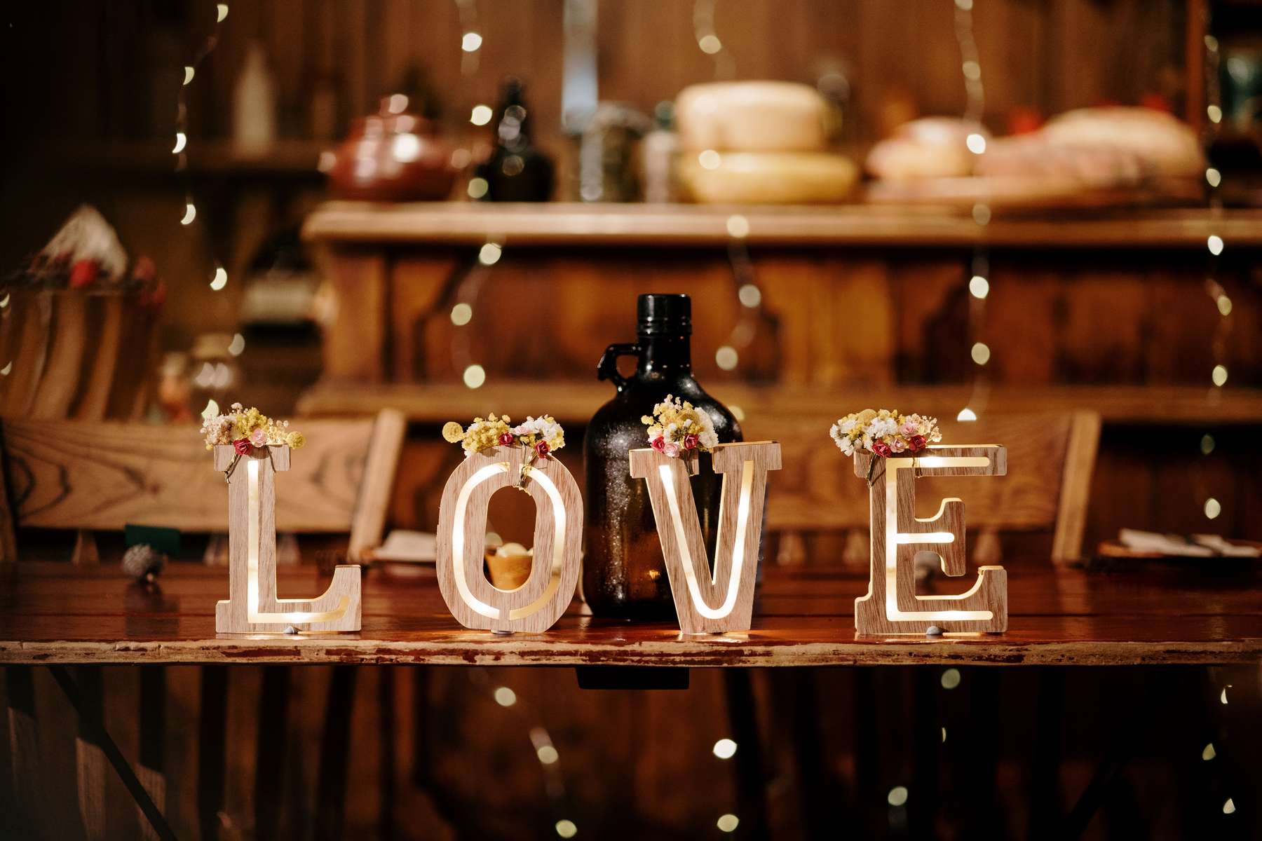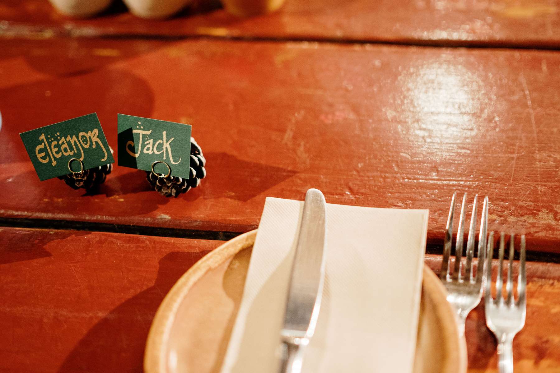 The DIY projects for the wedding were a labour of love for the couple, but also the bride’s favourite part of planning the day. The centrepieces were made from pine cones (collected from Jack’s parent’s garden) and flower arrangements made from blooms the bride had grown herself. She also created their wedding website and they worked on the playlists for the day together.