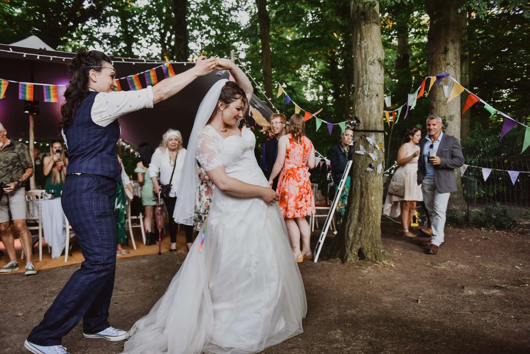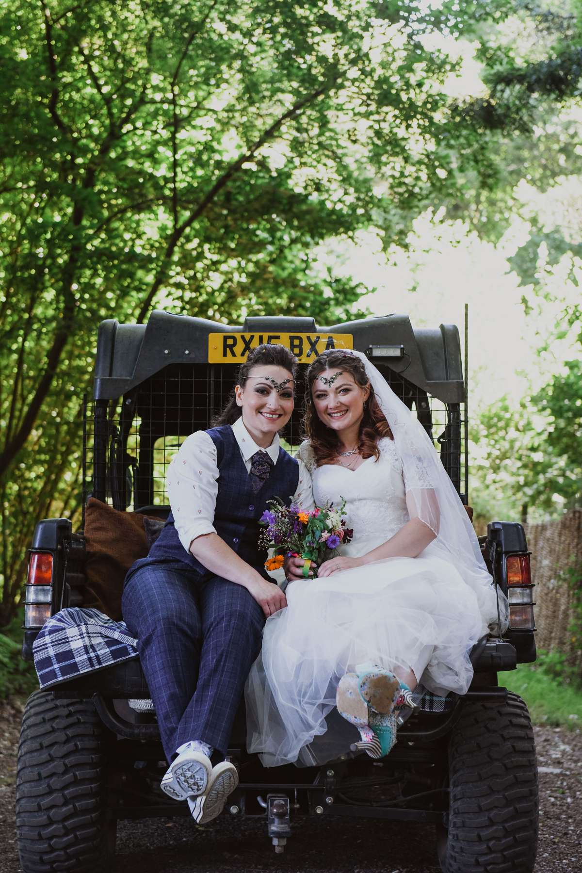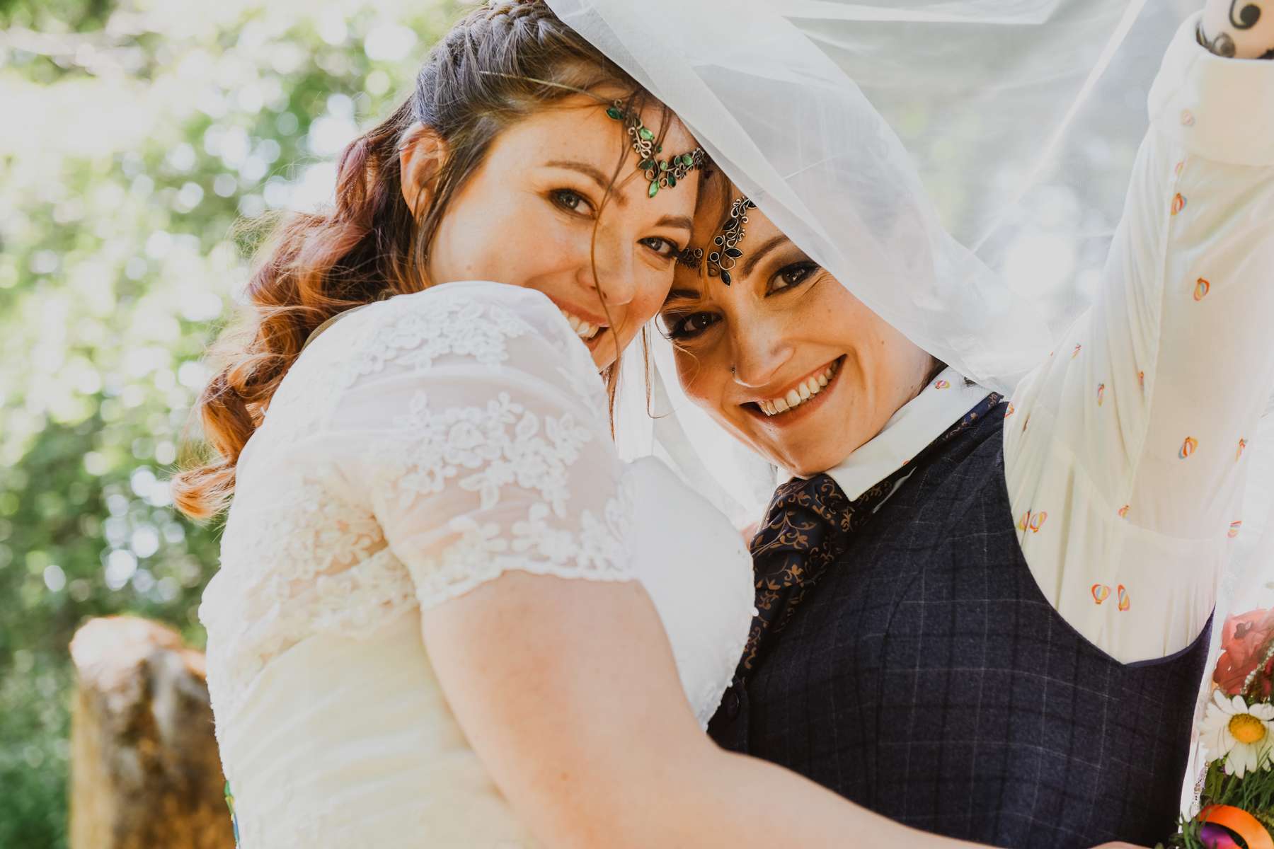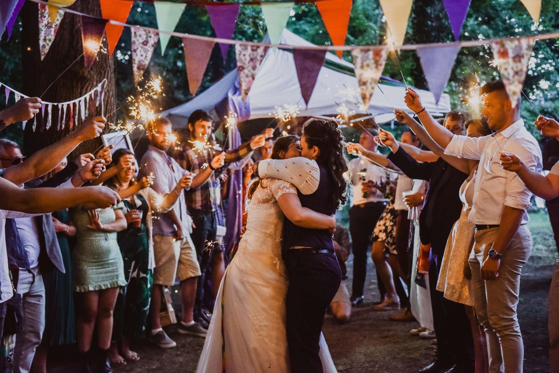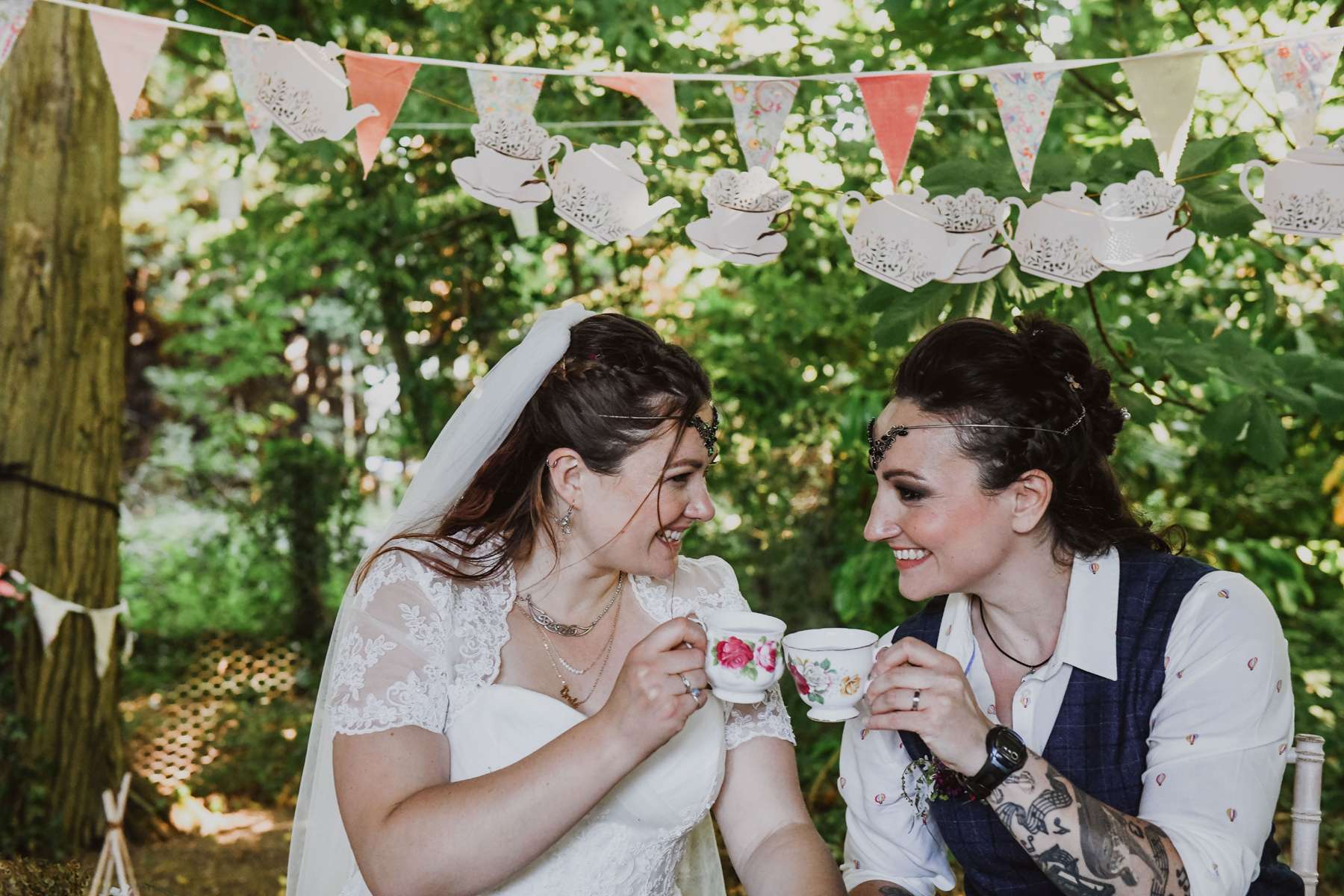 Dani and Susi were married in a woodland ceremony and had the reception in Susi’s mum’s back garden. They did almost everything themselves, including all the set up and decorations, and were guided by the idea of making their day feel personal to them and not taking anything too seriously.