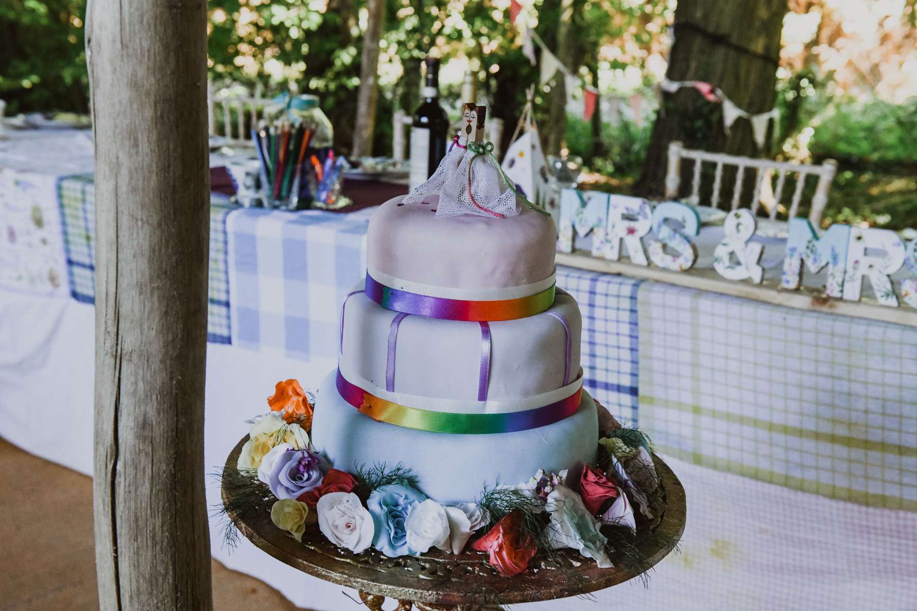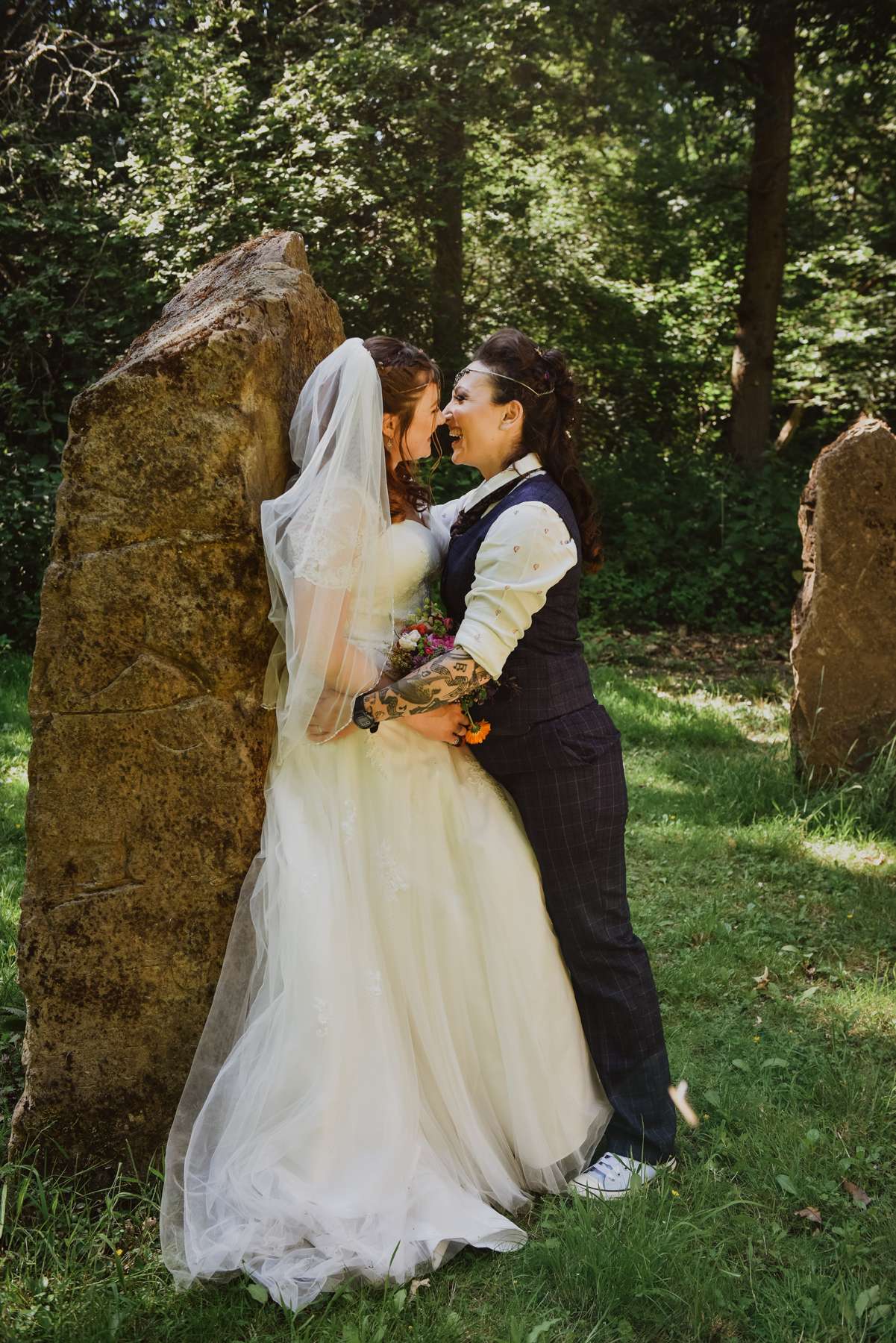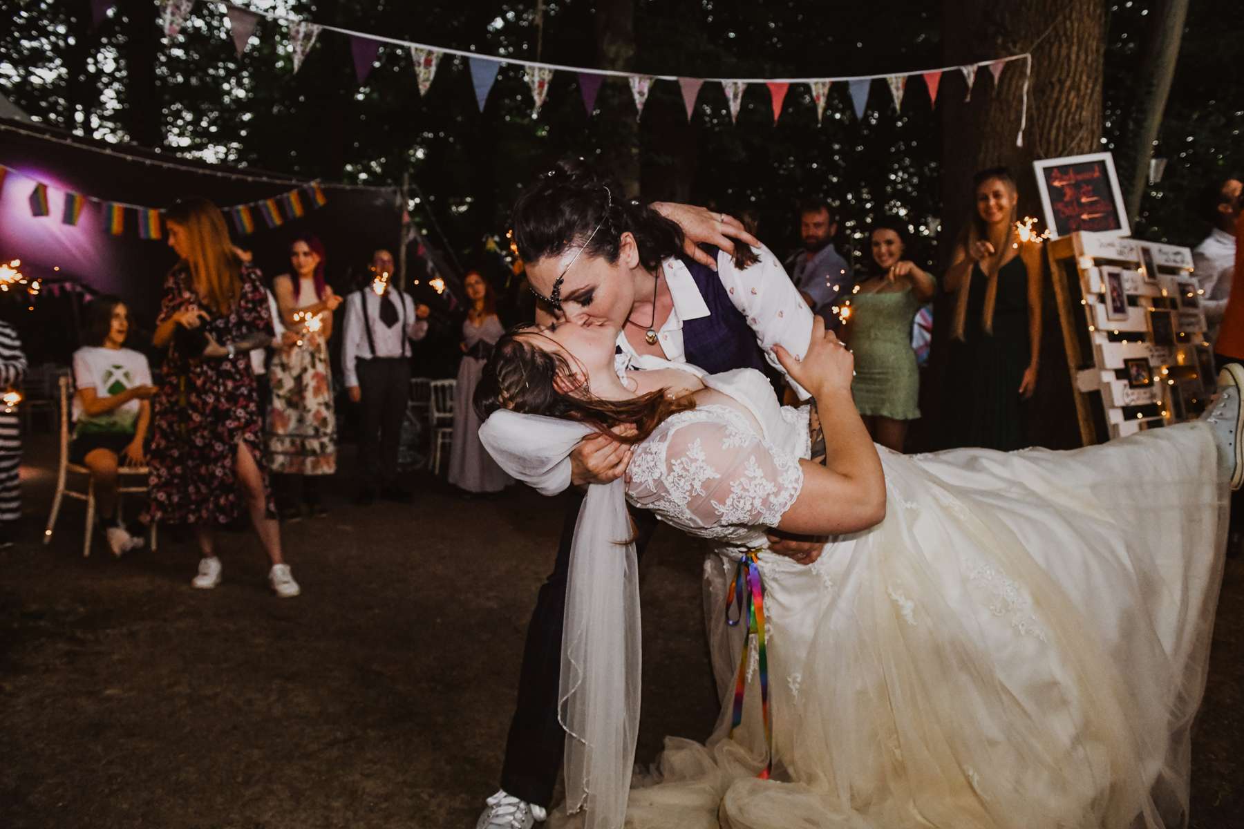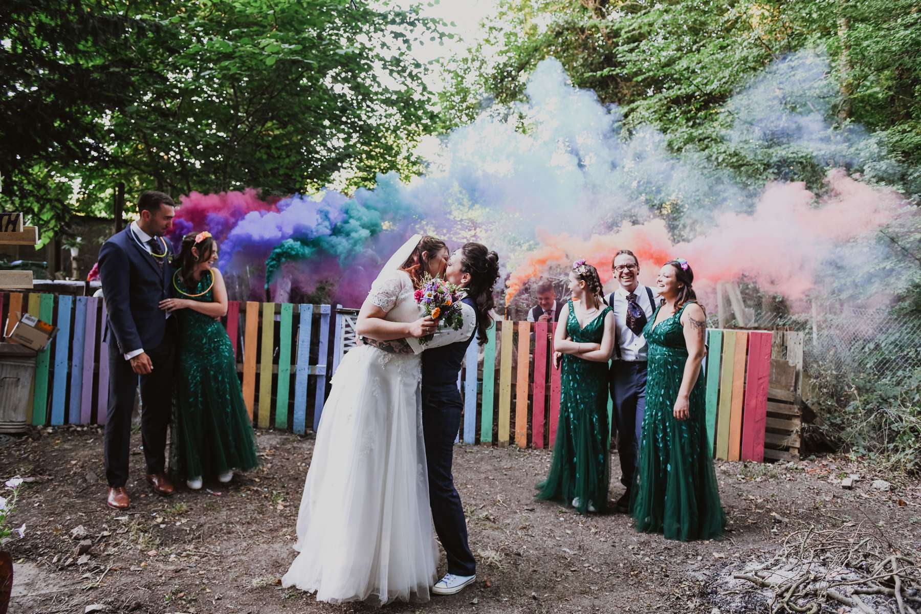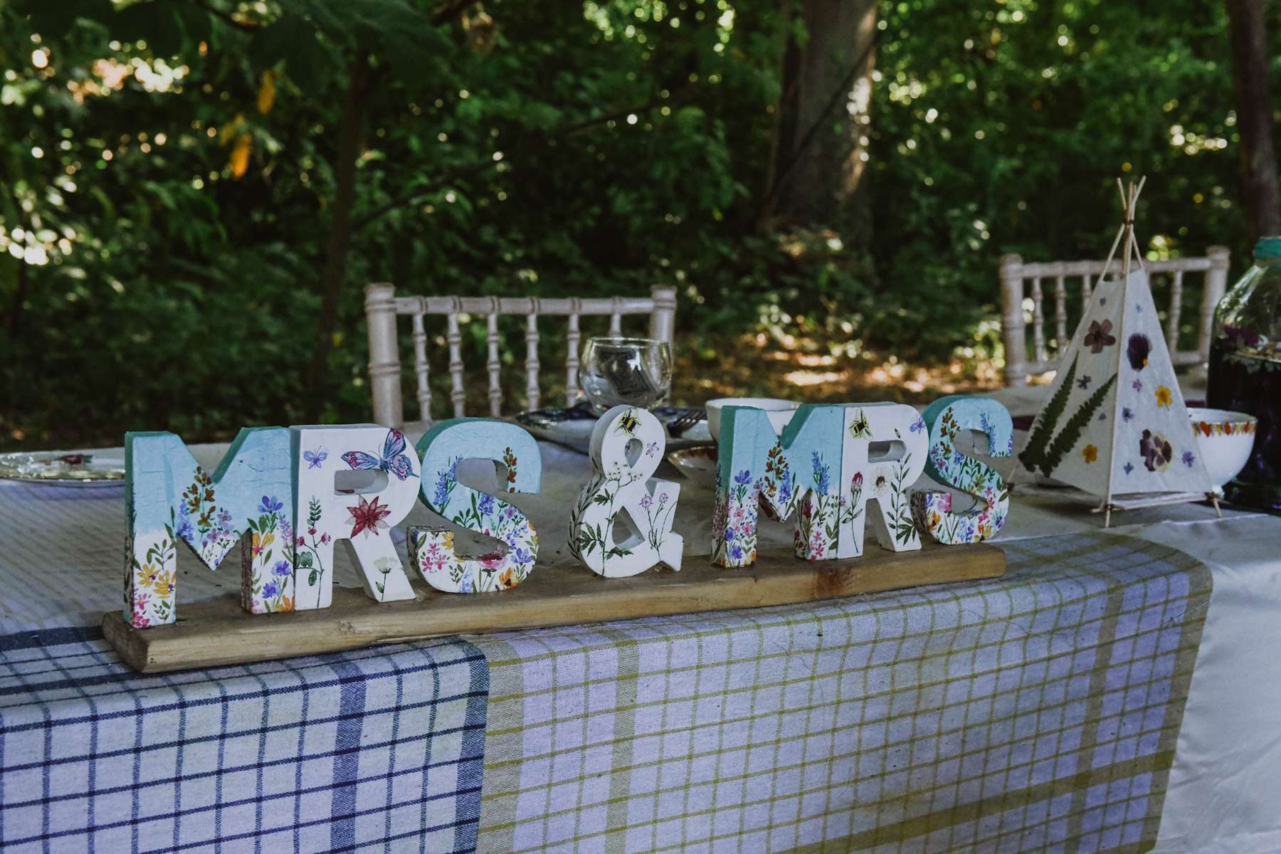 Dani and Susi were married in a woodland ceremony and had the reception in Susi’s mum’s back garden. They did almost everything themselves, including all the set up and decorations, and were guided by the idea of making their day feel personal to them and not taking anything too seriously.