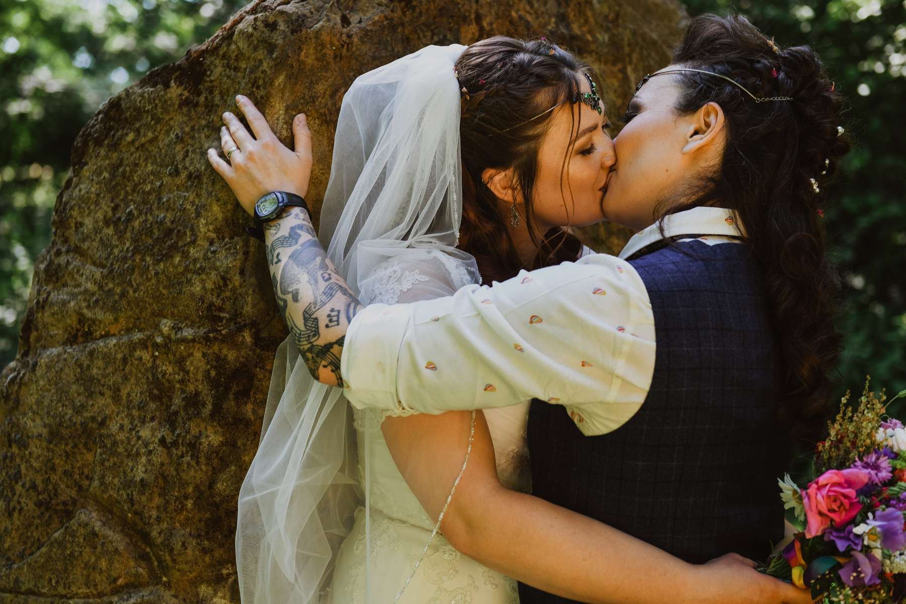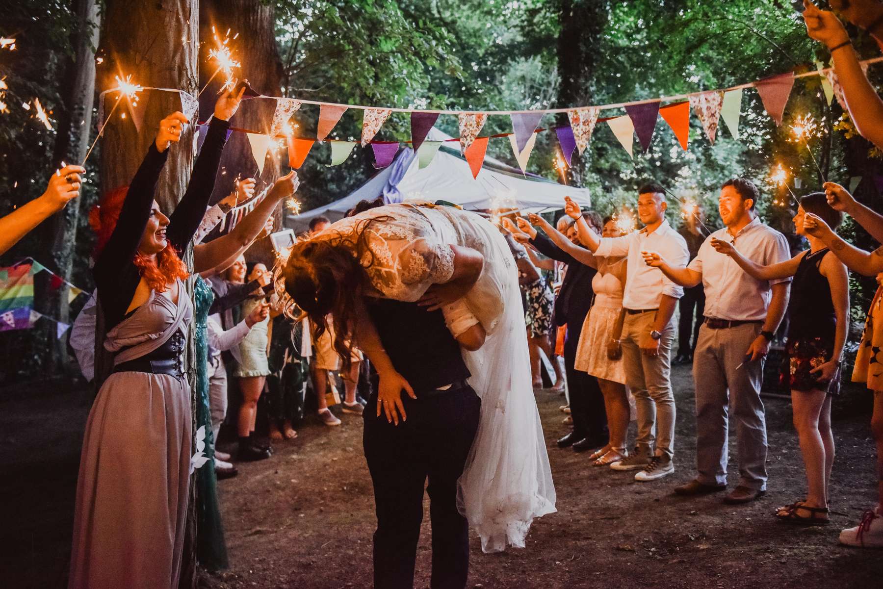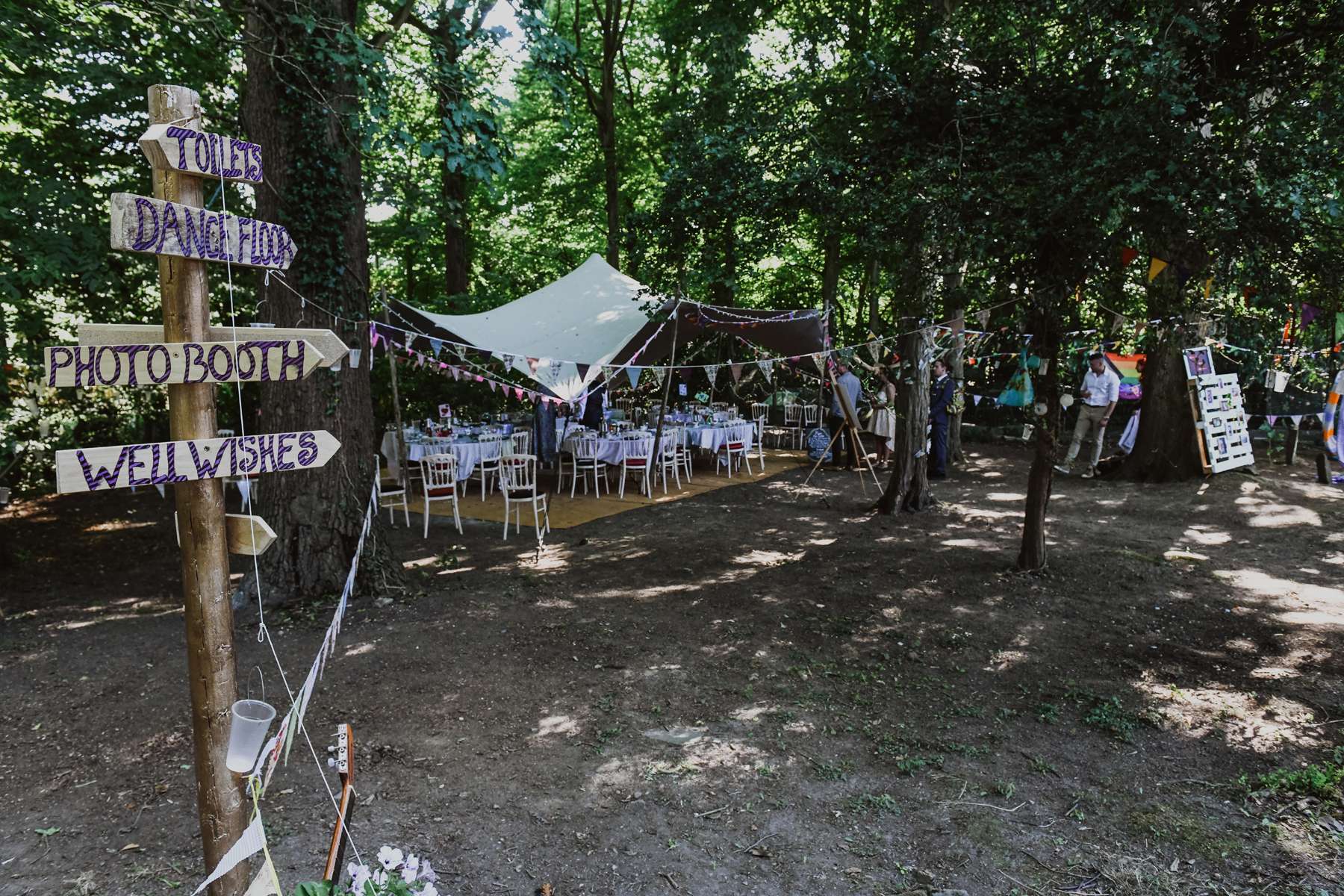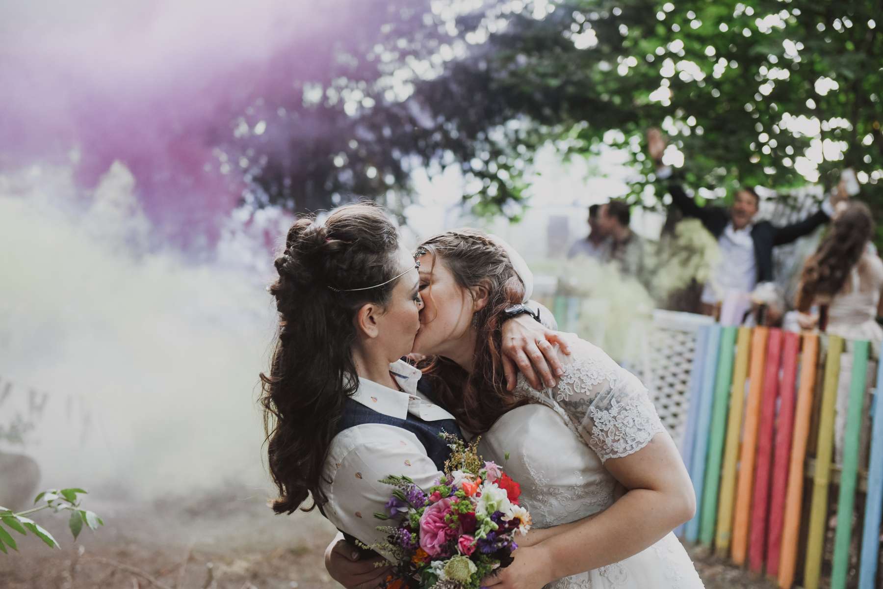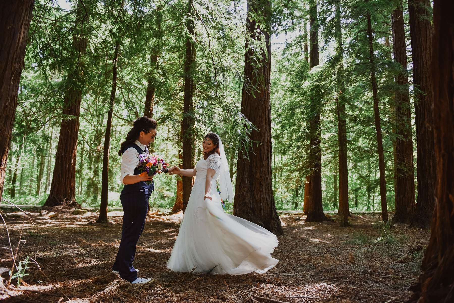 Dani and Susi were married in a woodland ceremony and had the reception in Susi’s mum’s back garden. They did almost everything themselves, including all the set up and decorations, and were guided by the idea of making their day feel personal to them and not taking anything too seriously.