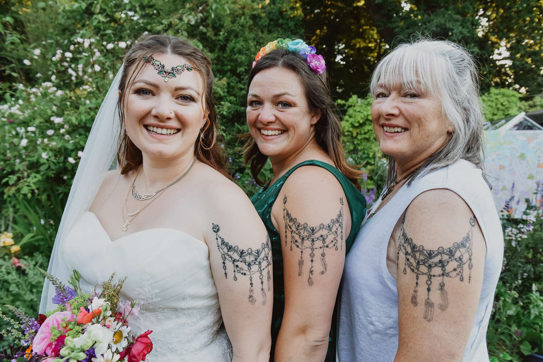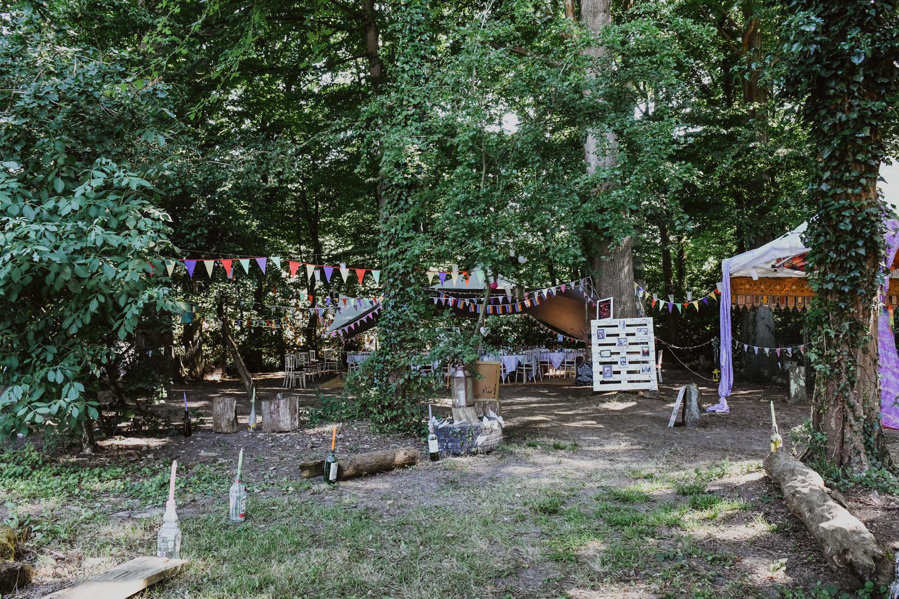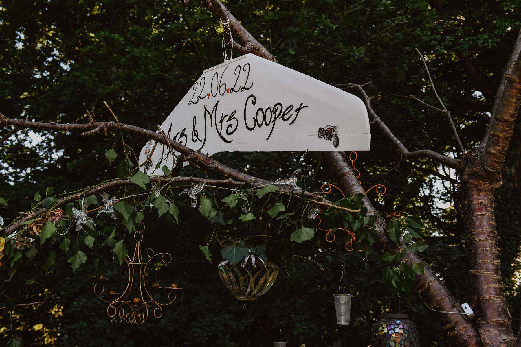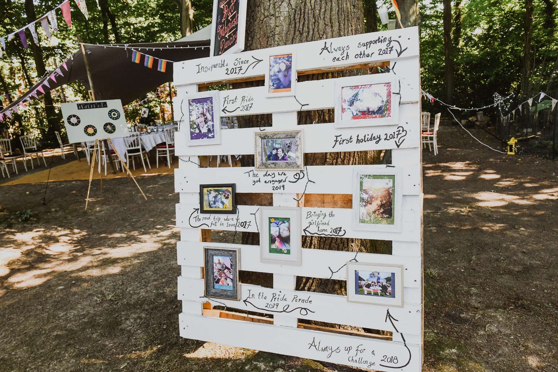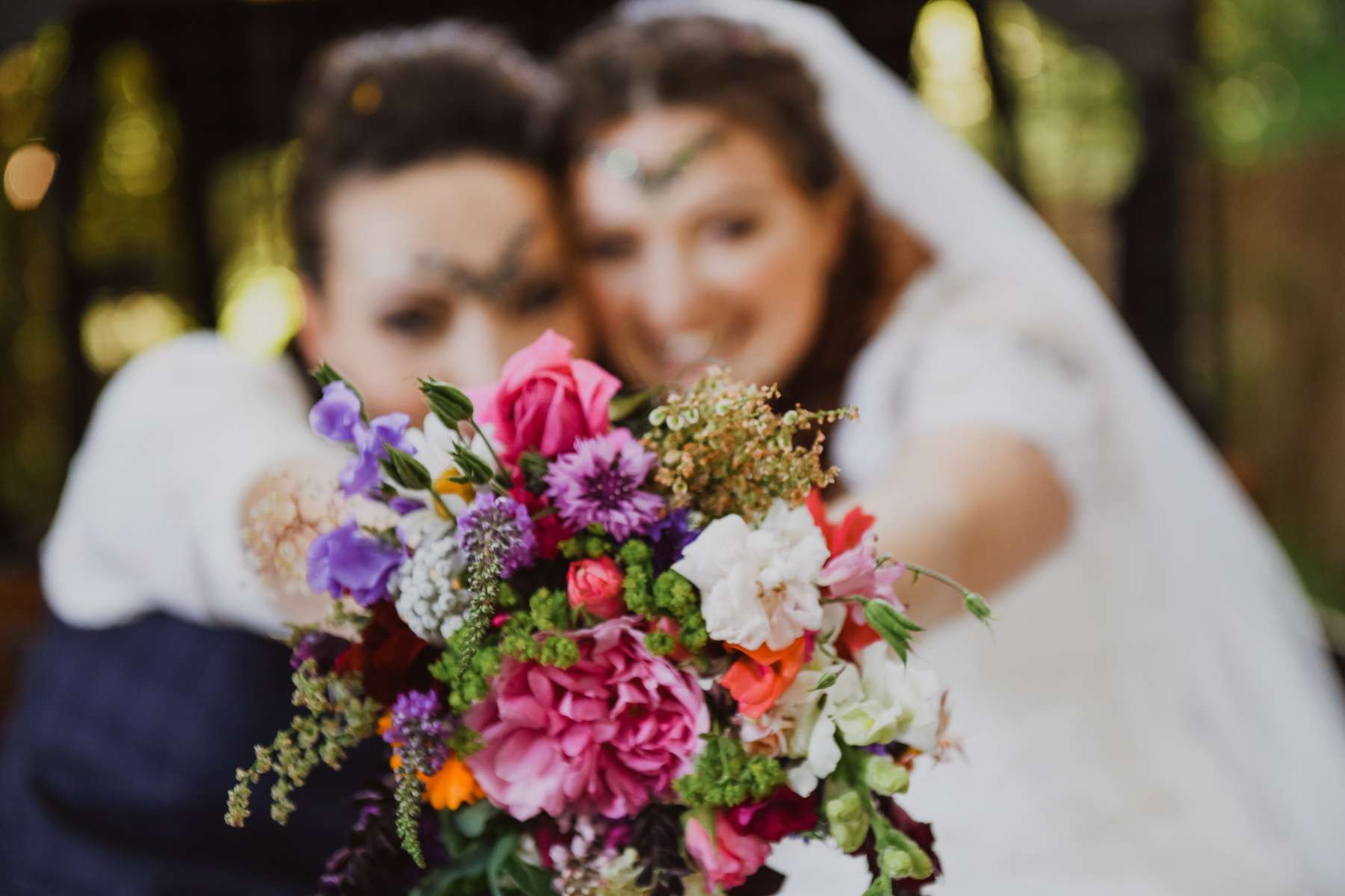Dani and Susi were married in a woodland ceremony and had the reception in Susi’s mum’s back garden. They did almost everything themselves, including all the set up and decorations, and were guided by the idea of making their day feel personal to them and not taking anything too seriously.
