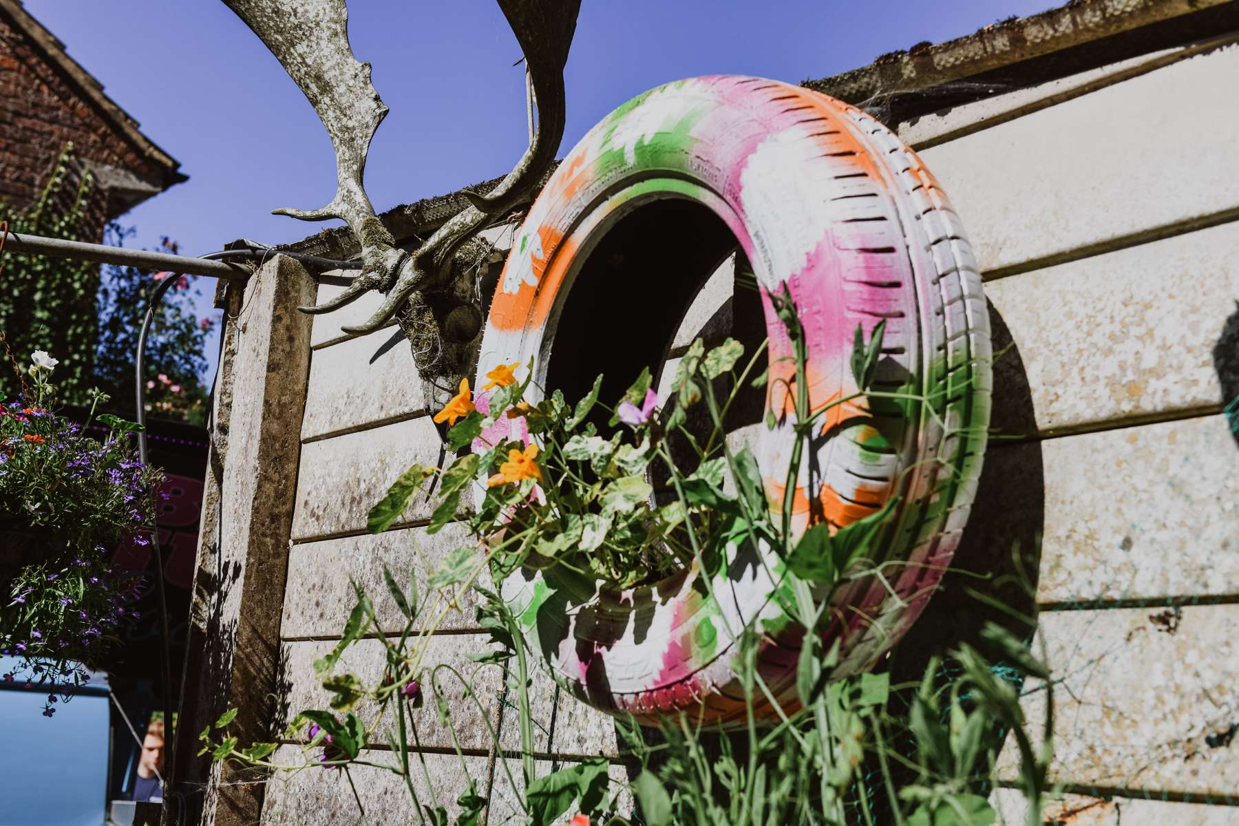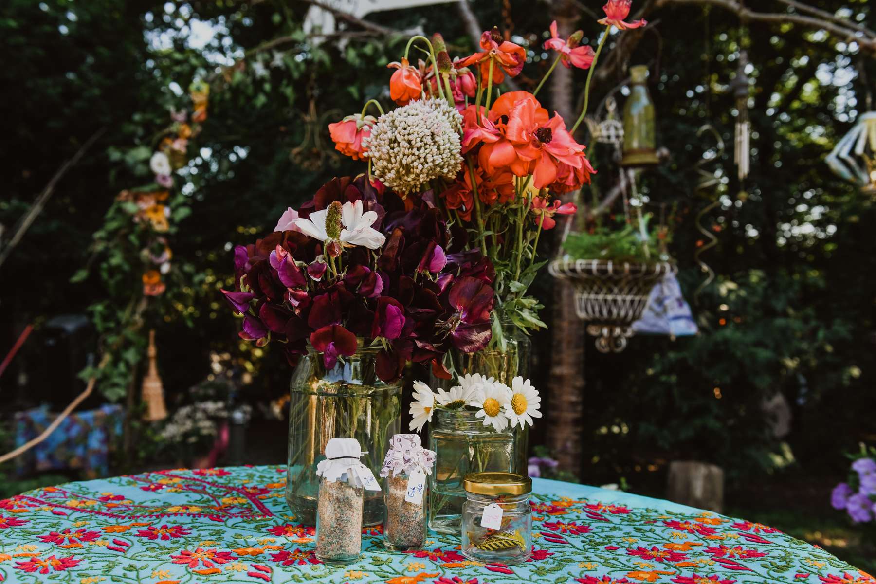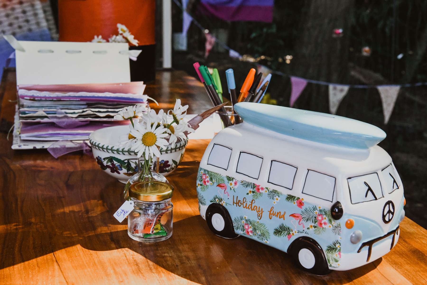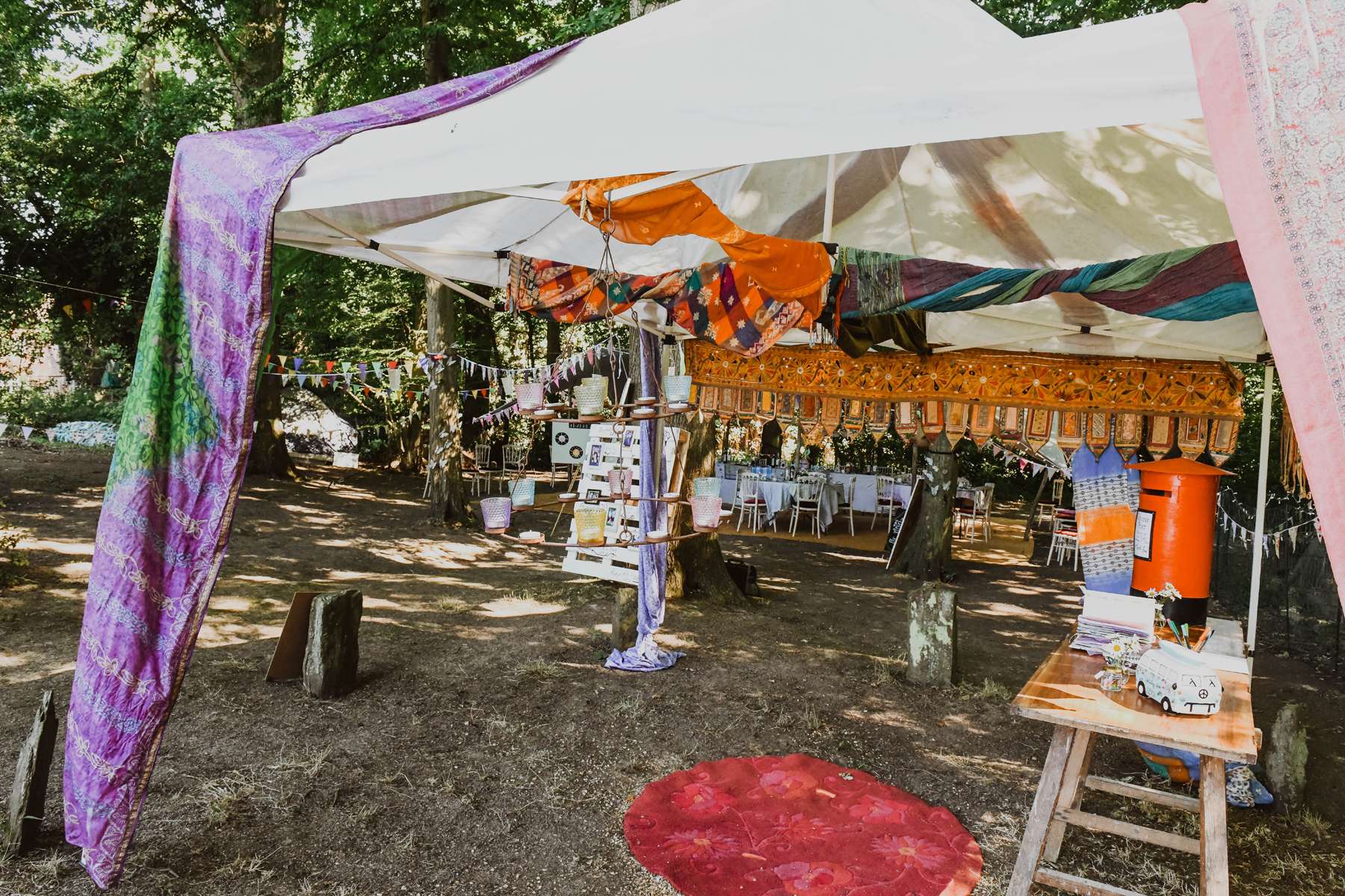 As the reception was held at Susi’s mum’s garden, they had been preparing it for the past couple of years; clearing and re-planting things where needed. They hired a VW campervan bar and a stretch tent for the wedding breakfast. Everything else, from the furniture to the decorations, was hand made or collected by the couple.
