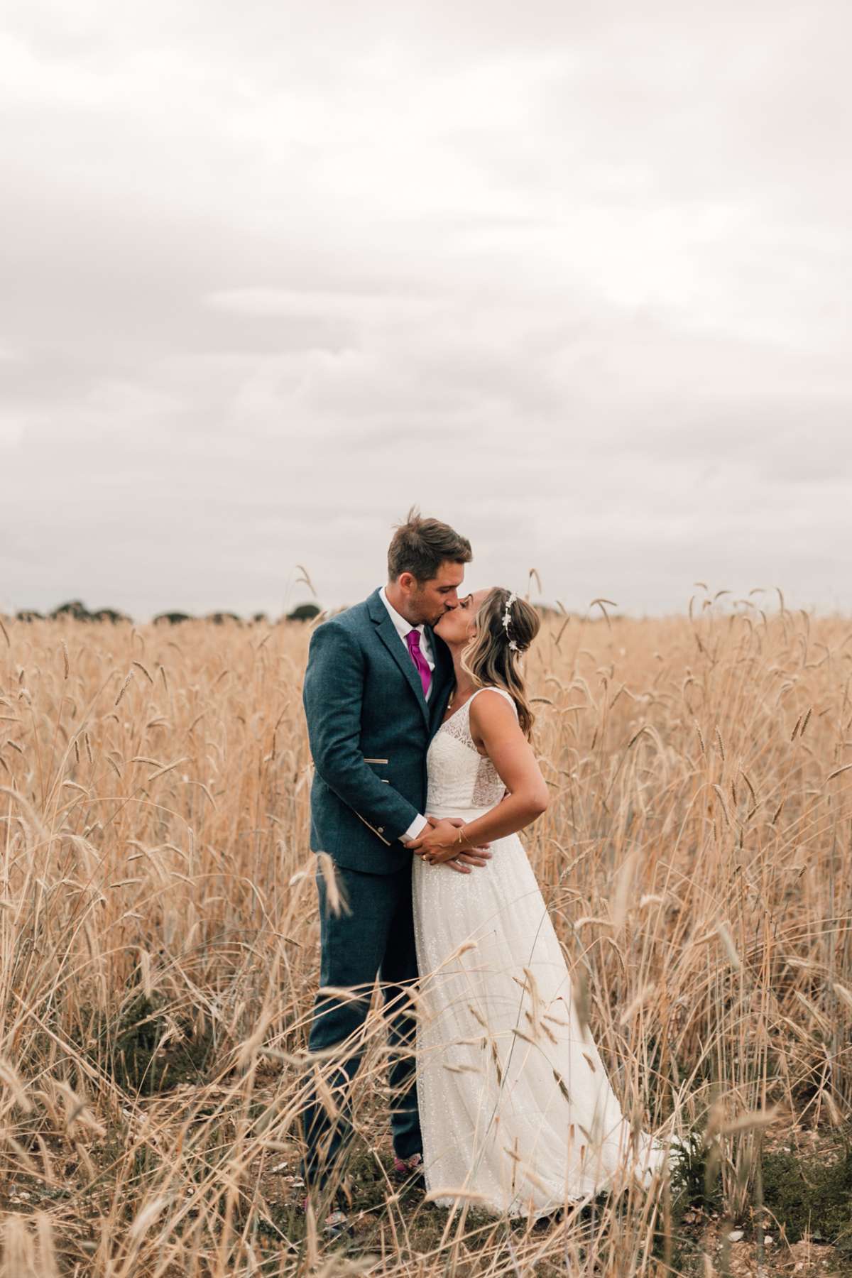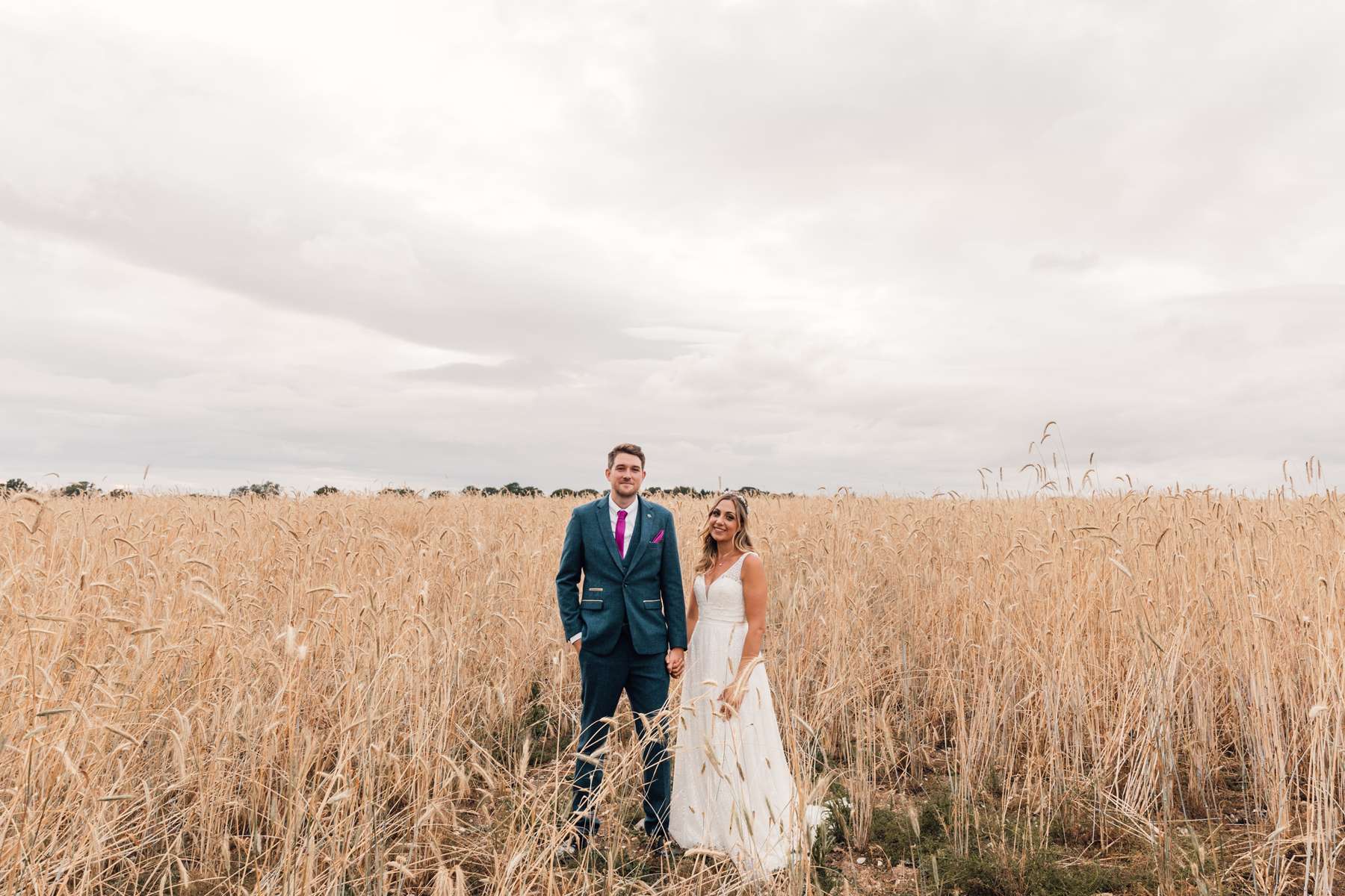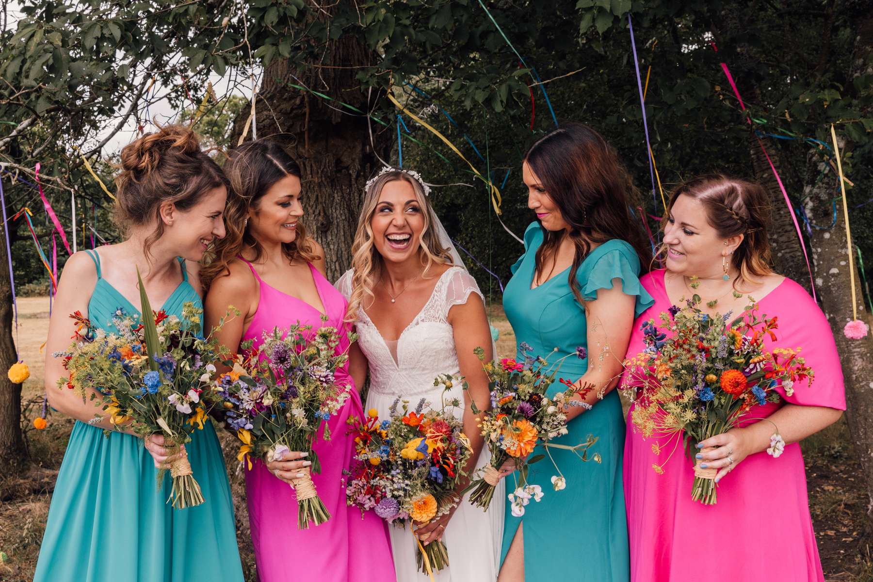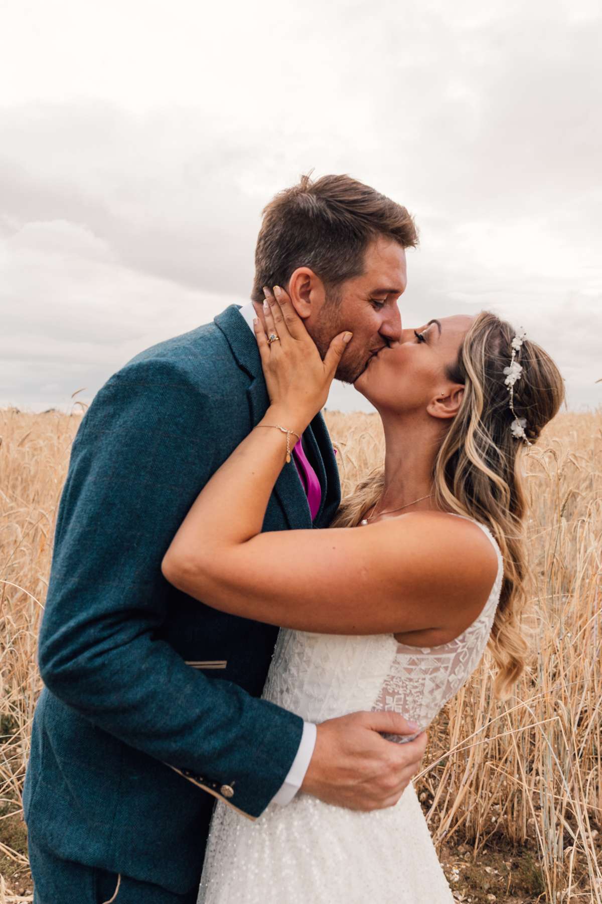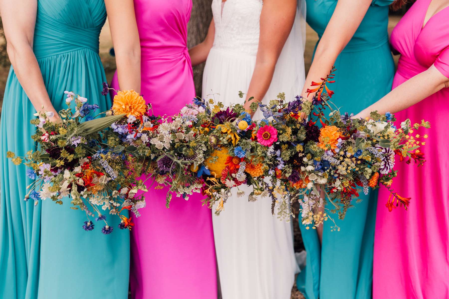 The couple faced some challenges in planning their wedding as they got married in the field down the road from Sam’s family home, so had to do everything themselves. “Having an empty field without so much as running water there was a lot of logistics, so it took a lot of planning,” said Nicola. “We also ordered dried flower bouquets for me and my bridesmaids. They were meant to be really bright and colourful. They took ages to come and when they came they were awful; broken, poorly put together and horrible faded pastel colours! Luckily we were able to order more stems from the farm growing some of the flowers for us and our amazing friend Lucy did an incredible job arranging them for us. It was actually serendipitous in the end as I think the fresh flowers were so much more fitting with being outside in the field and they were so so beautiful so I am really pleased we had to change the flowers for the bouquets in the end!”