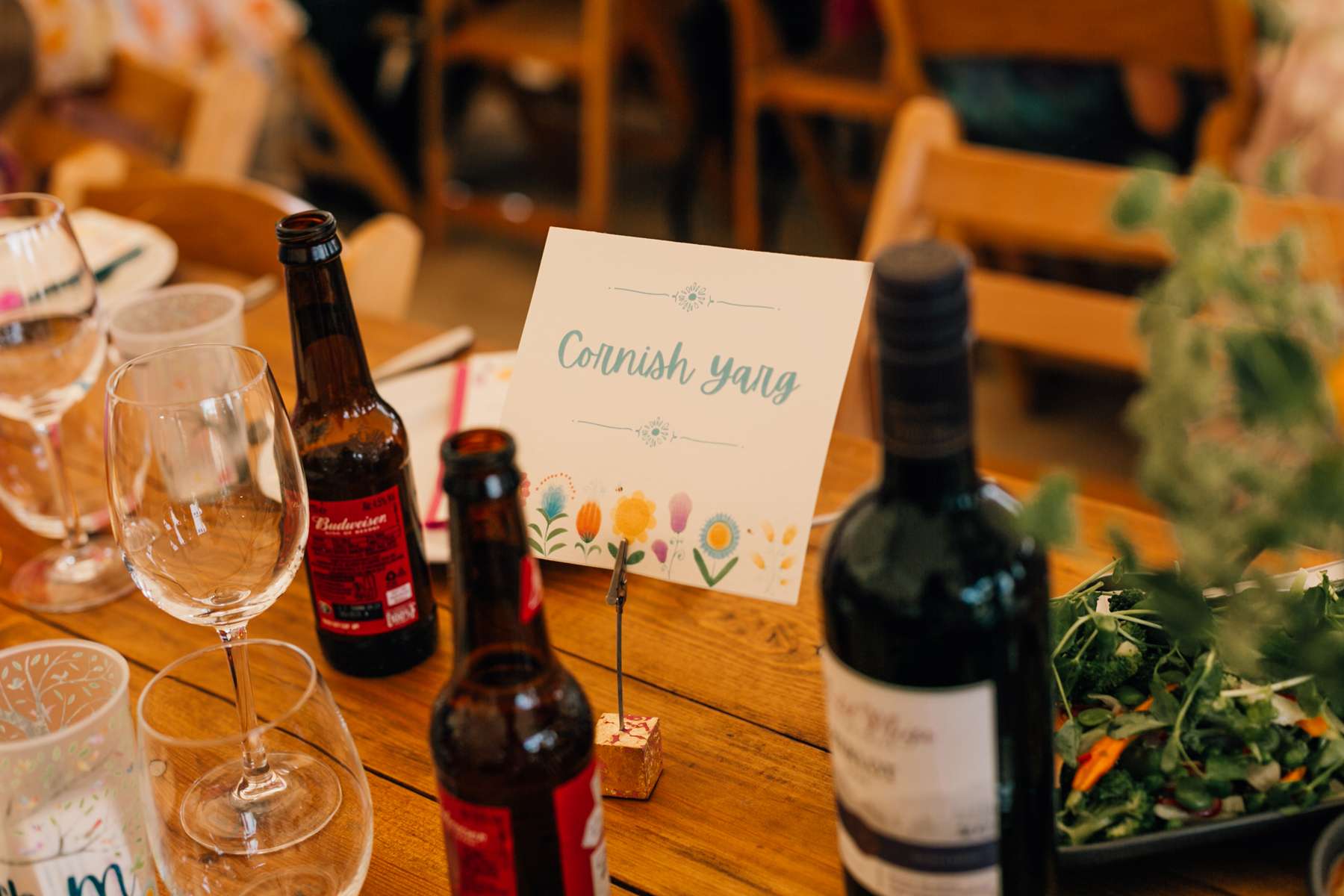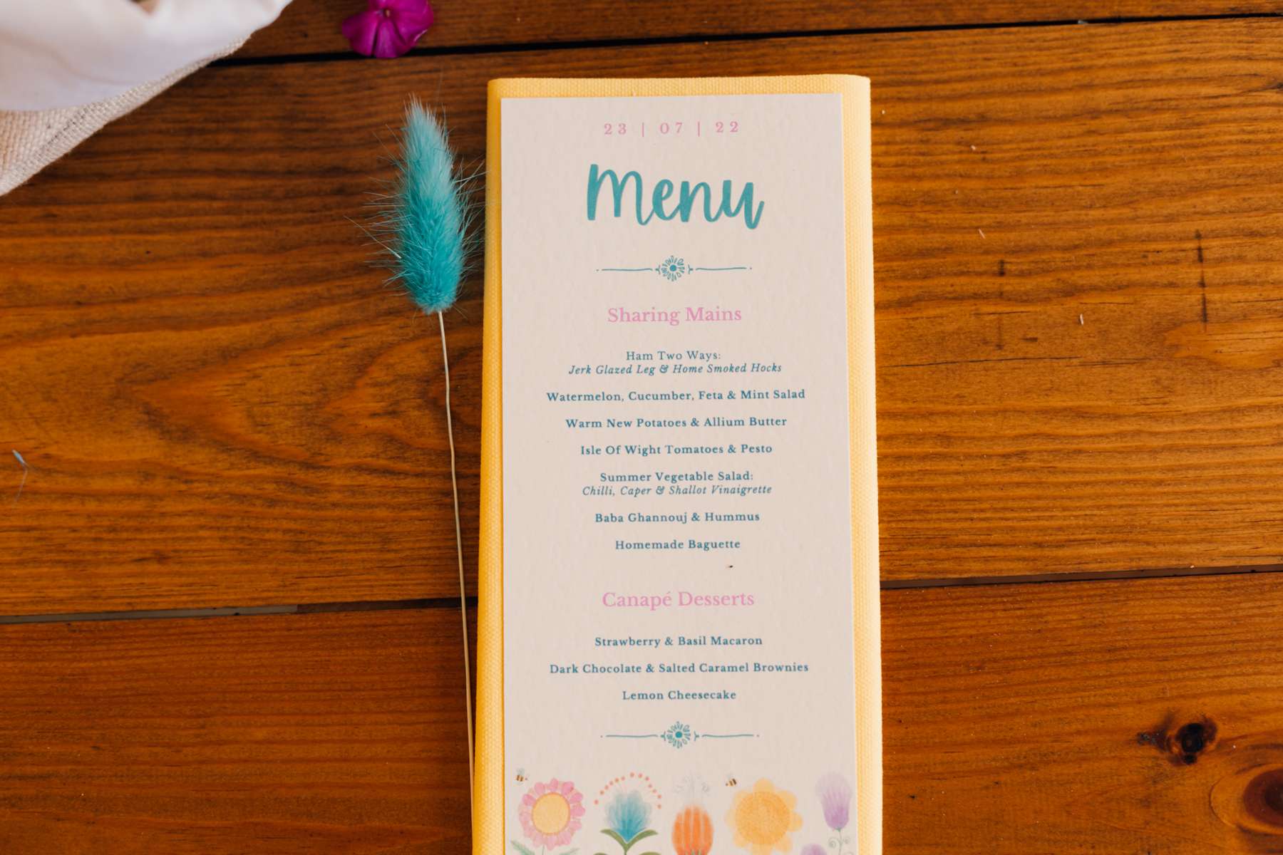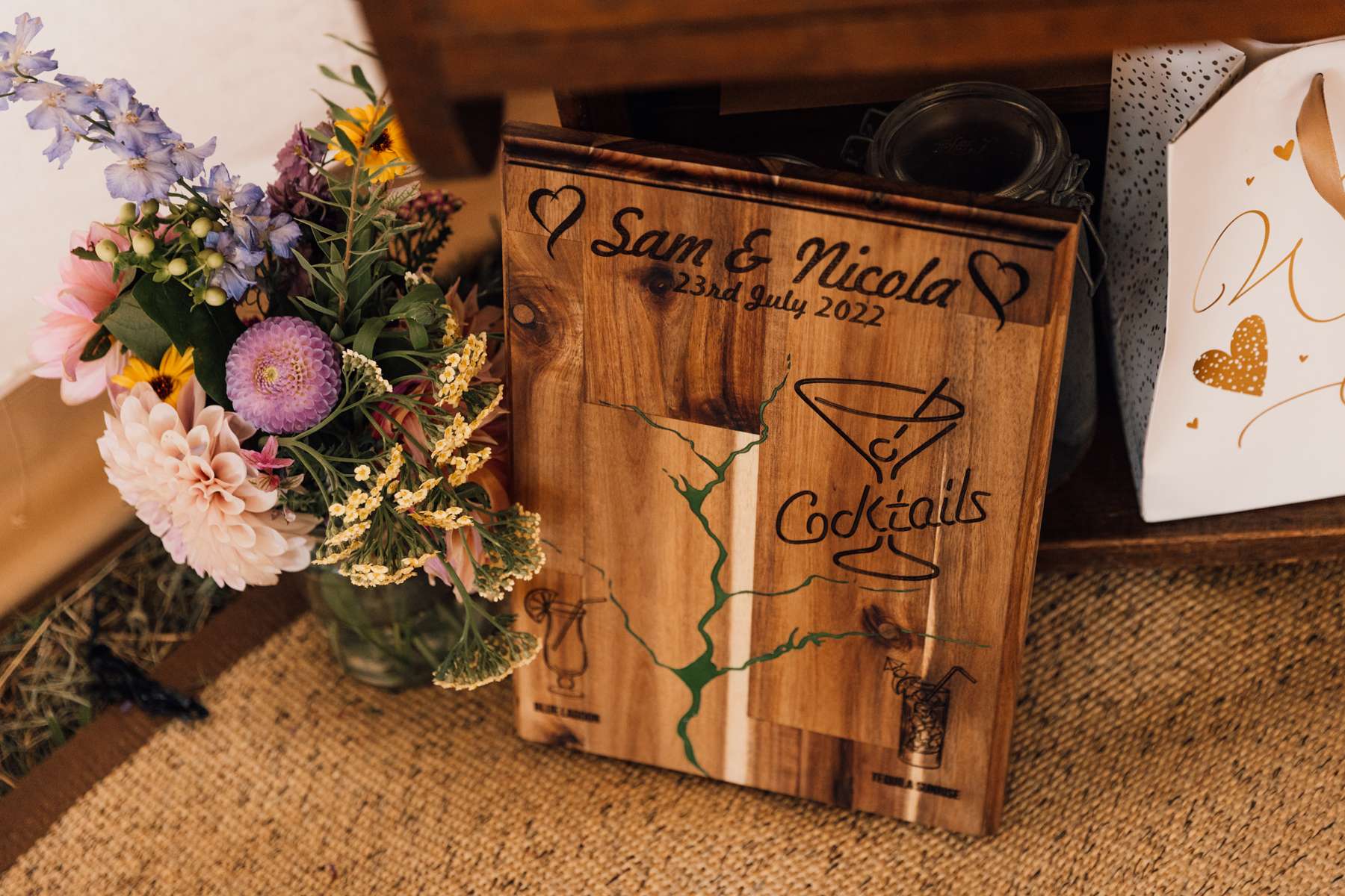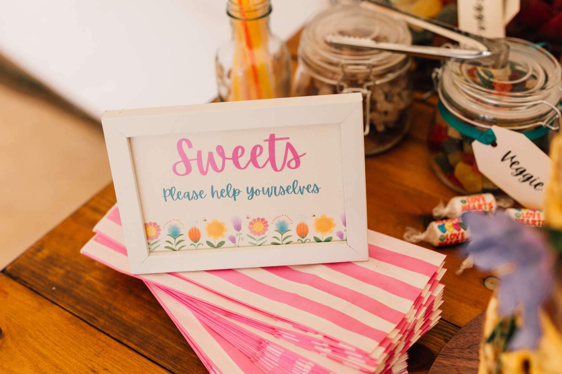 The reception was also full of incredible details, from a glitter station in the bell tent to a game of cornhole that Sam’s brother had made from scratch. The couple also had a 1970s VW campervan, converted into a cocktail van, serving drinks to add to that festival feel. “We had loads of games for people to play, amazing food served on sharing plates, and desserts served canape style so everyone could get up and chat and walk around,” said Nicola.