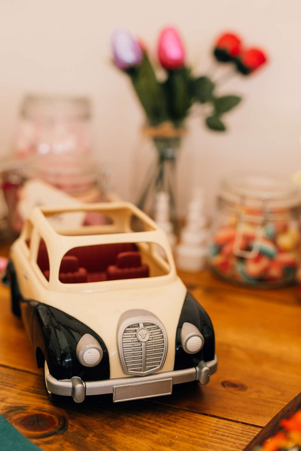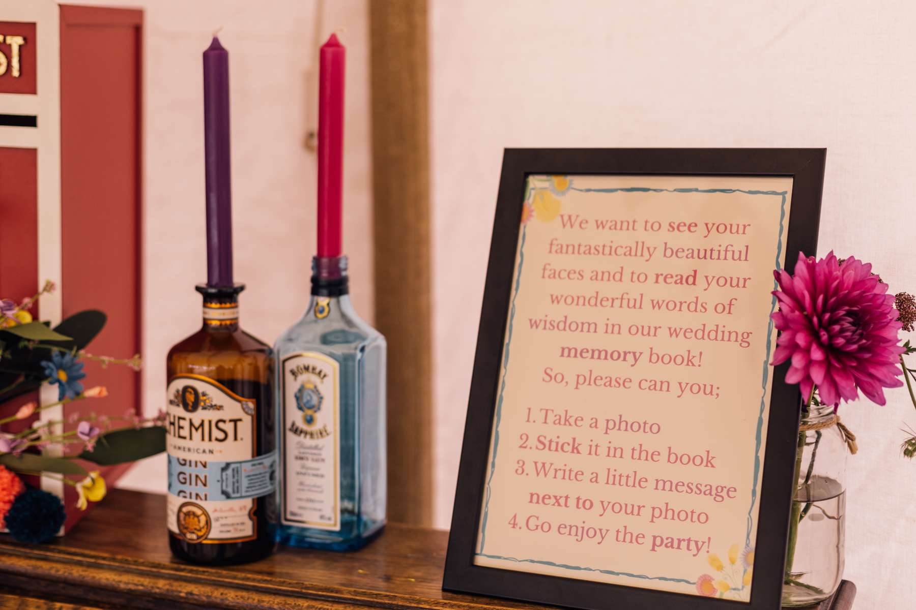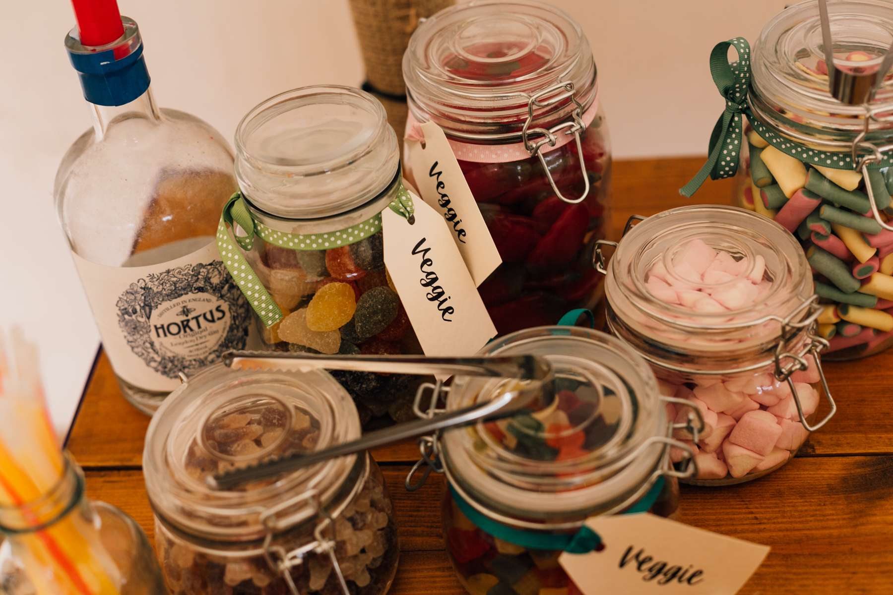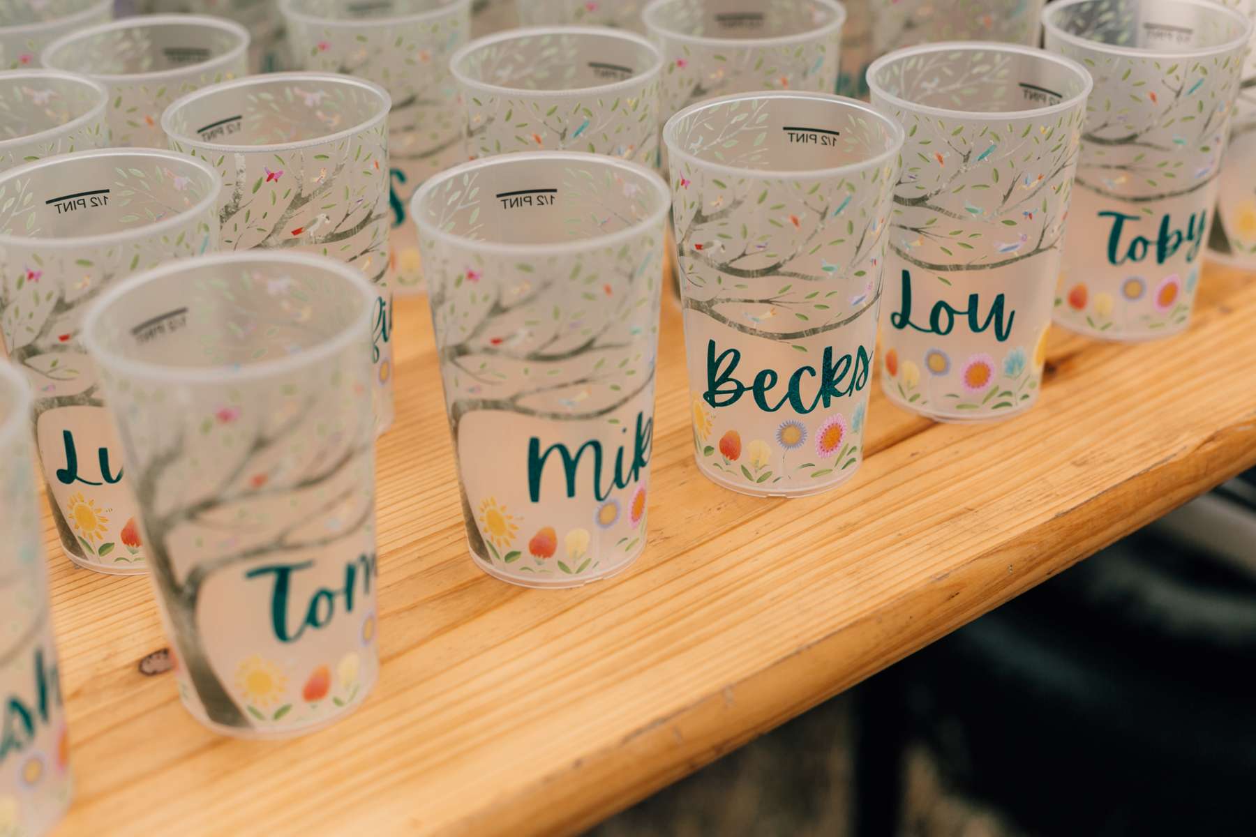 The reception was also full of incredible details, from a glitter station in the bell tent to a game of cornhole that Sam’s brother had made from scratch. The couple also had a 1970s VW campervan, converted into a cocktail van, serving drinks to add to that festival feel. “We had loads of games for people to play, amazing food served on sharing plates, and desserts served canape style so everyone could get up and chat and walk around,” said Nicola.