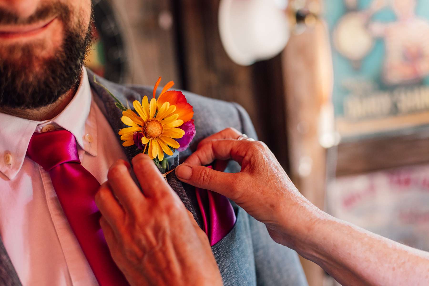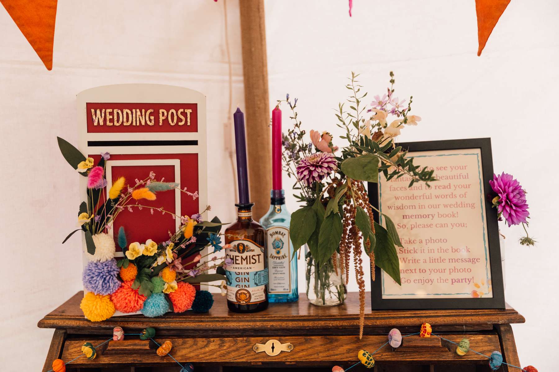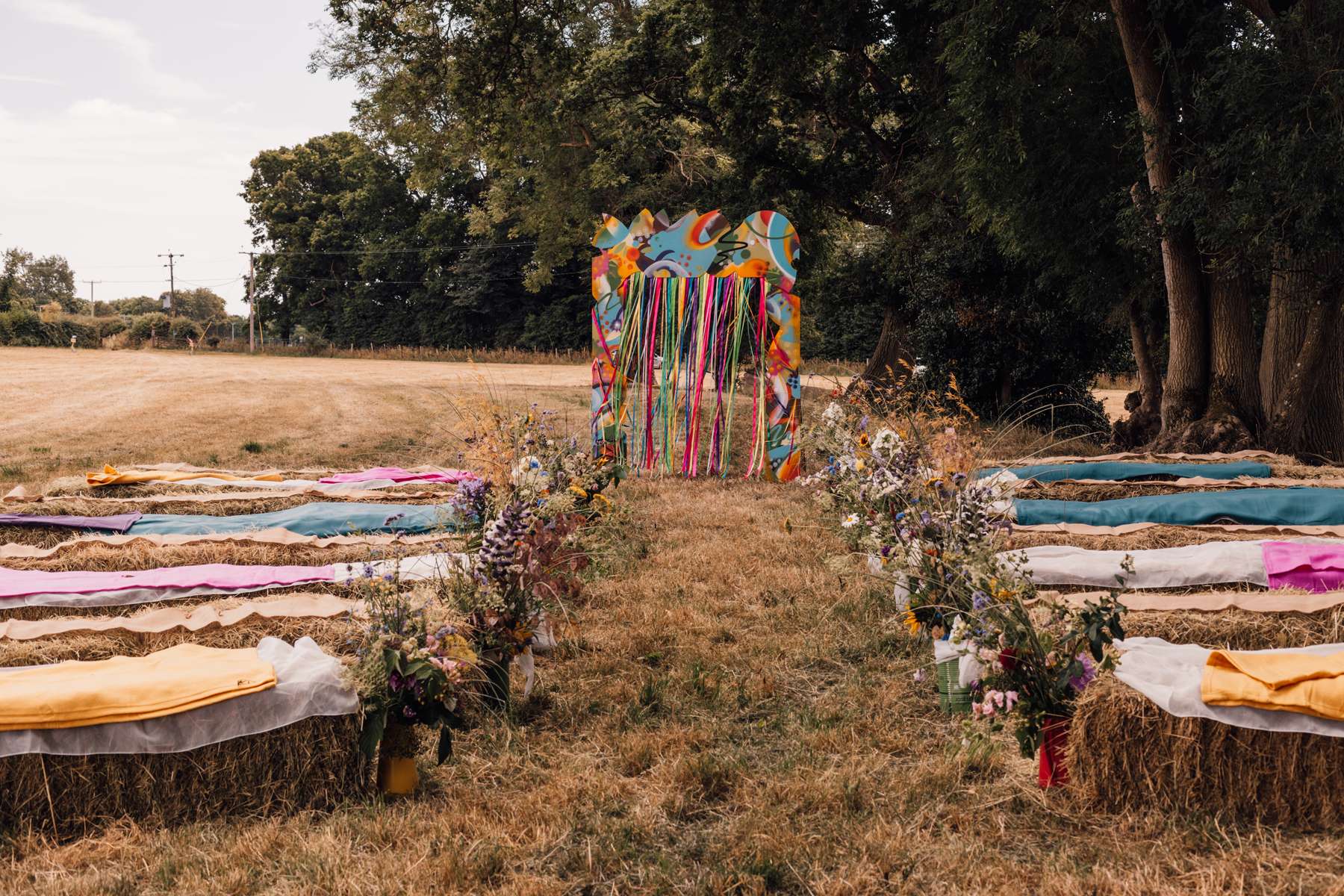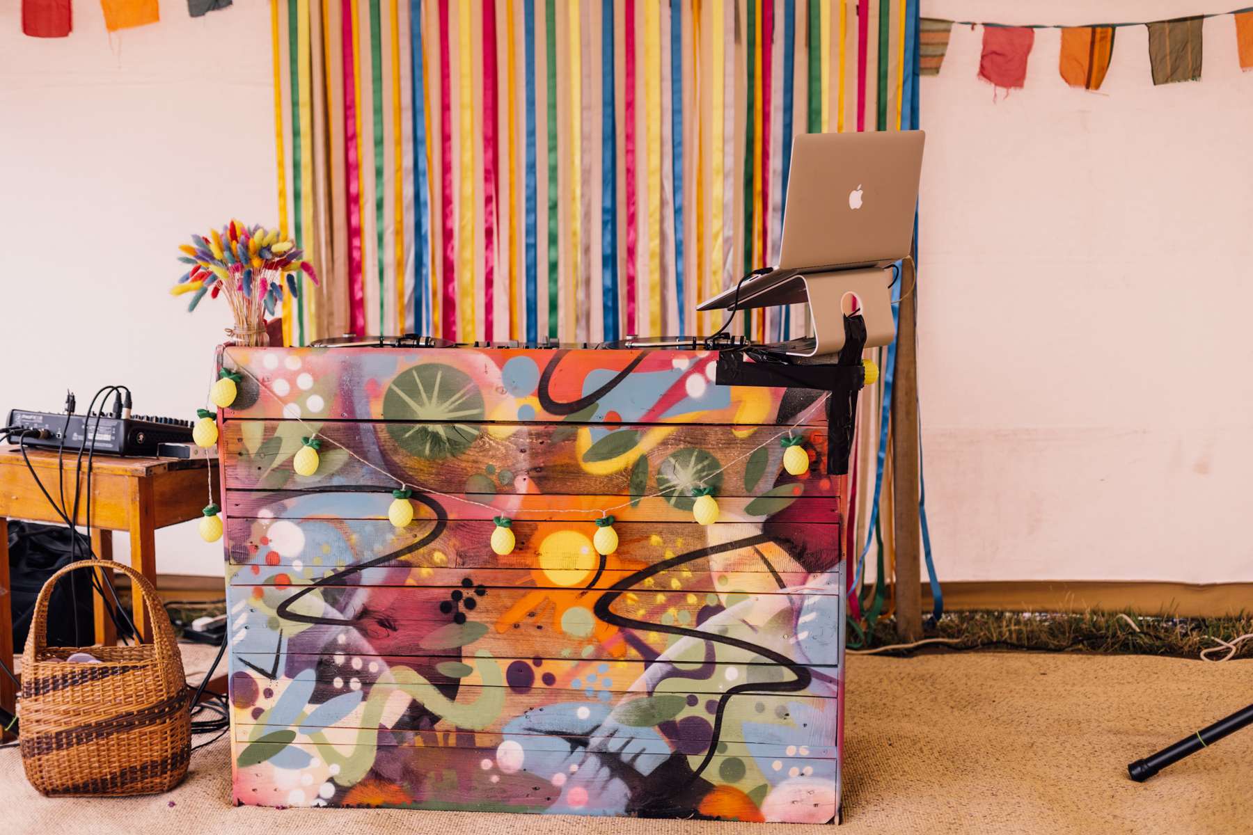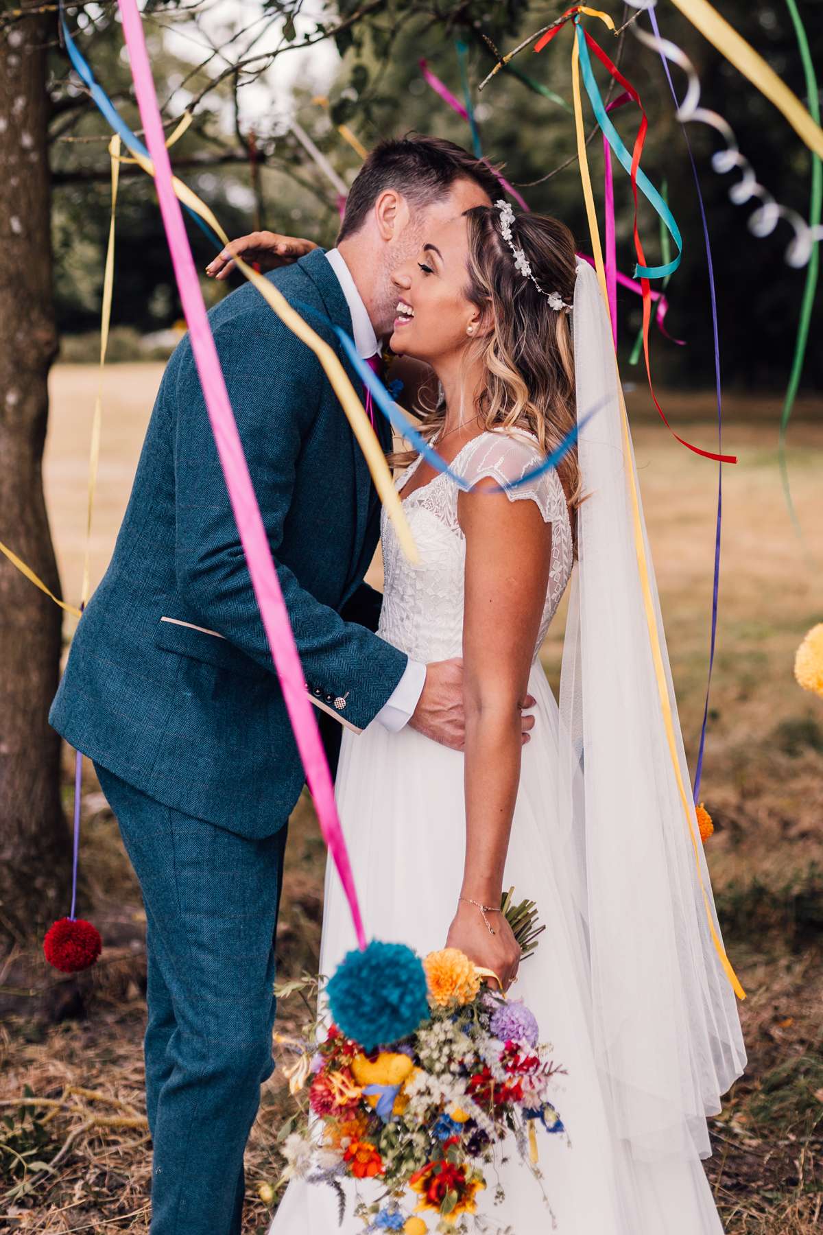 With the groom being a music producer and DJ, Sam and Nicola didn’t want a formal wedding or anything to stuffy. Instead they planned a colourful festival inspired day with a focus on fun. All the music was performed by their friends and Sam himself DJ’d, too.