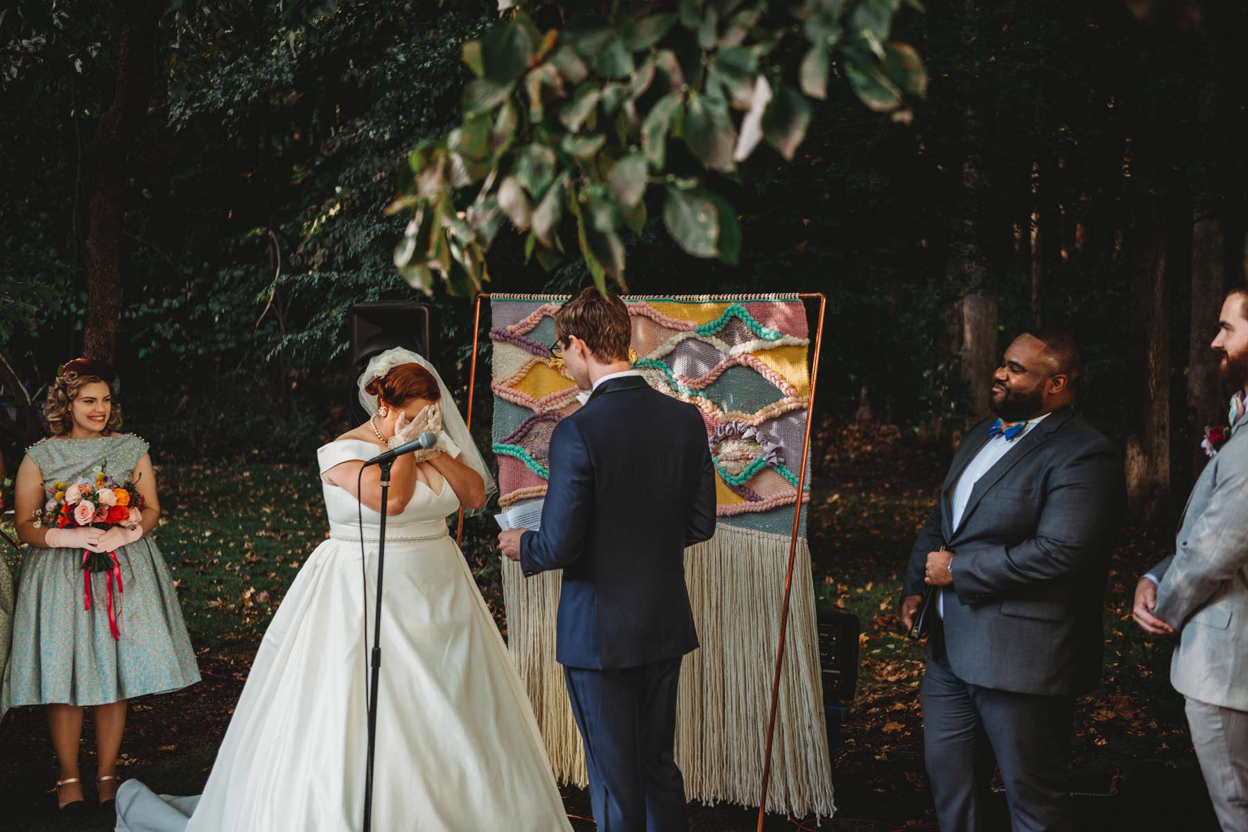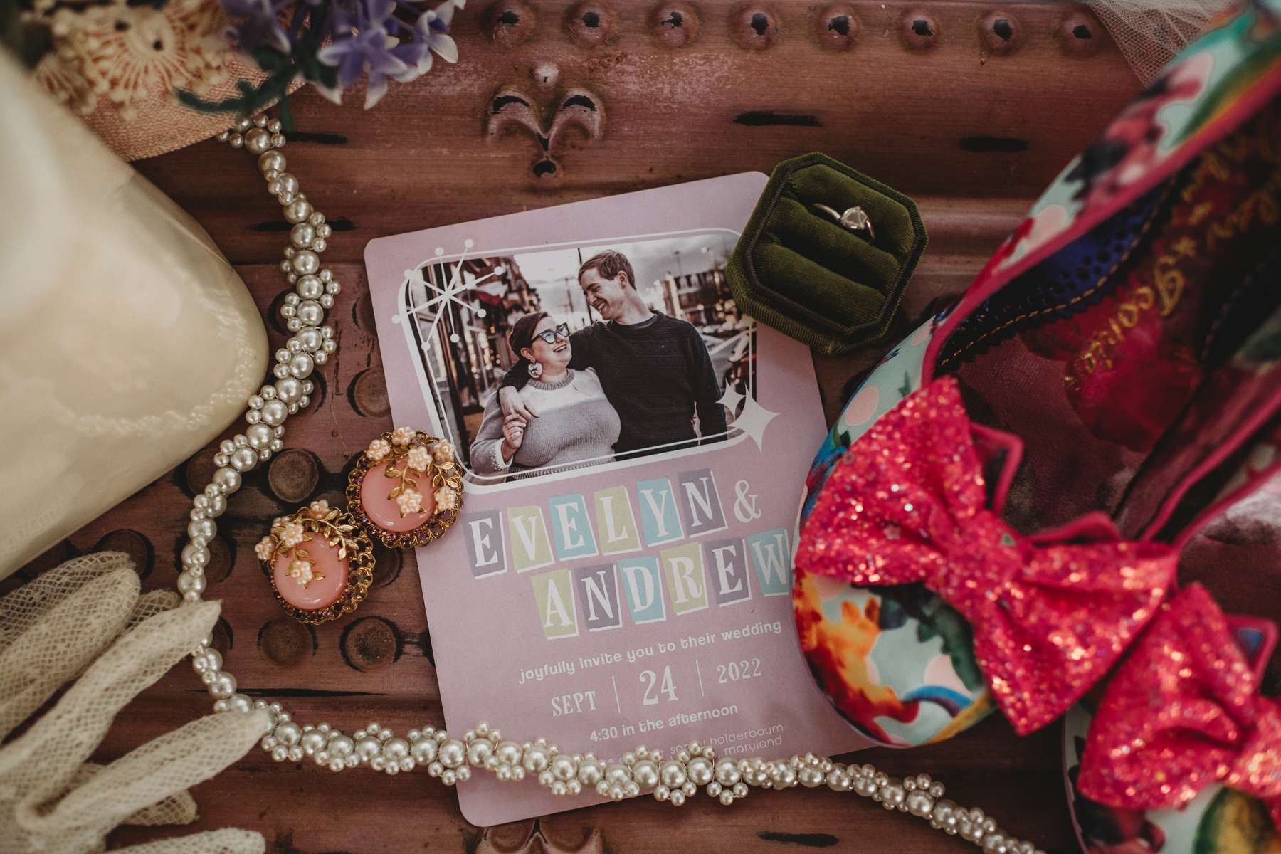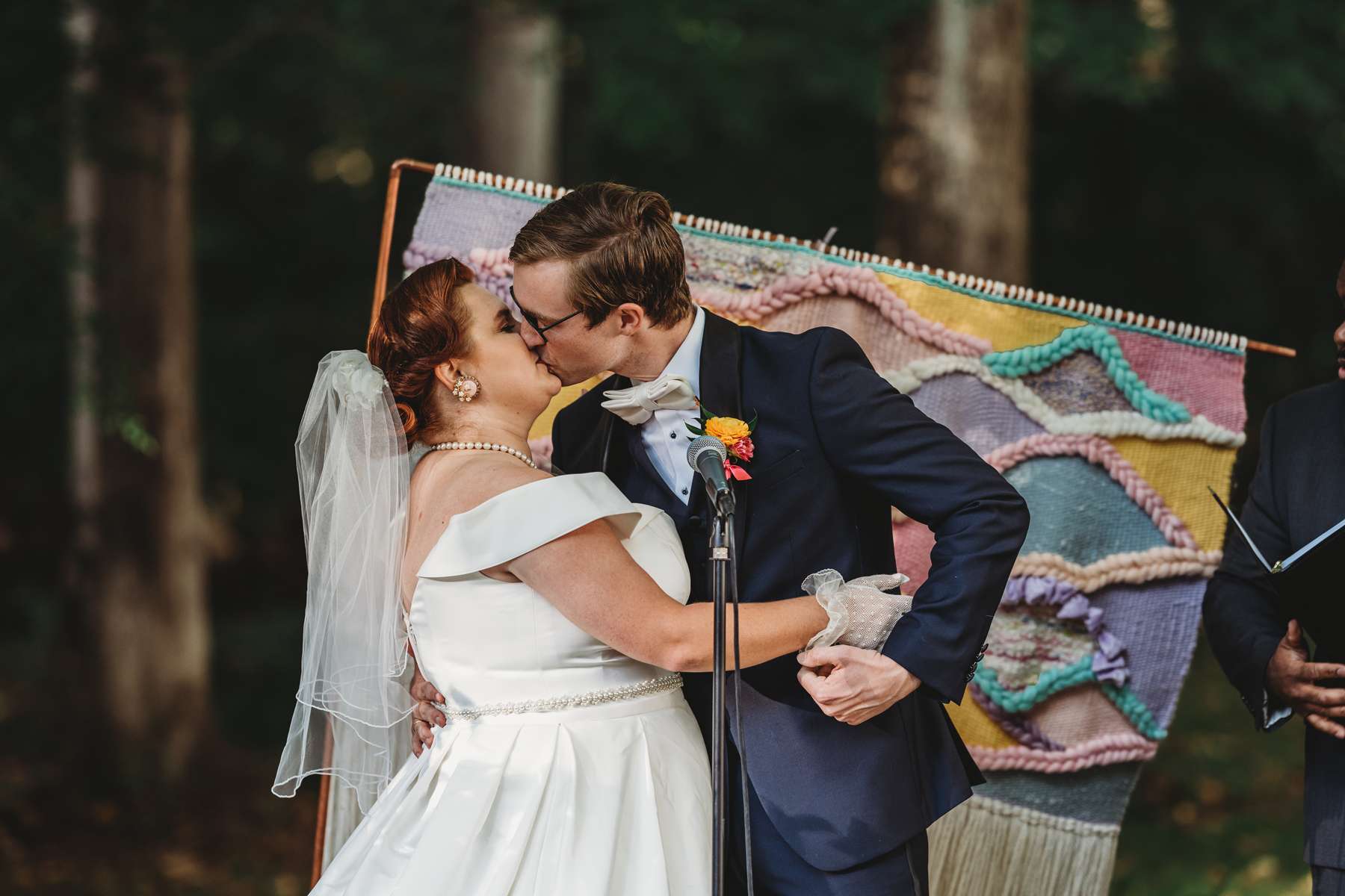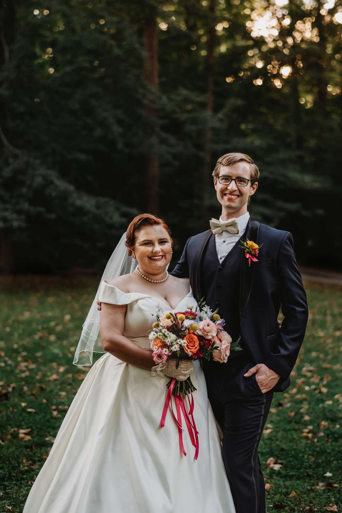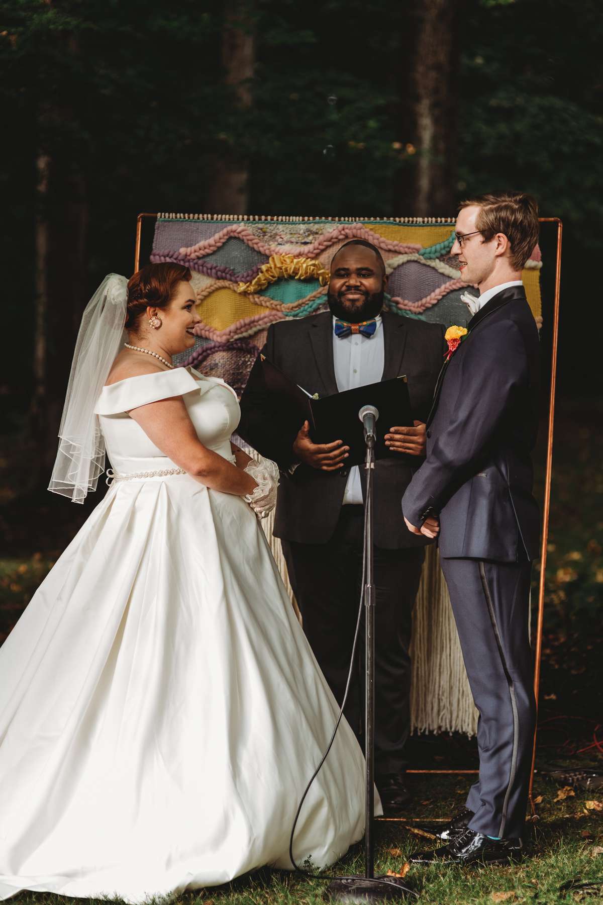 Andrew and Evelyn’s wedding in Bowie, Maryland, was a whimsical and enchanting affair that perfectly encapsulated their eclectic tastes and love for vibrant colours. Hosted in a friend’s back garden, with another friend officiating the ceremony and others helping with all the DIY, their day was a wonderful, creative collaboration which celebrated their love in a really special way.