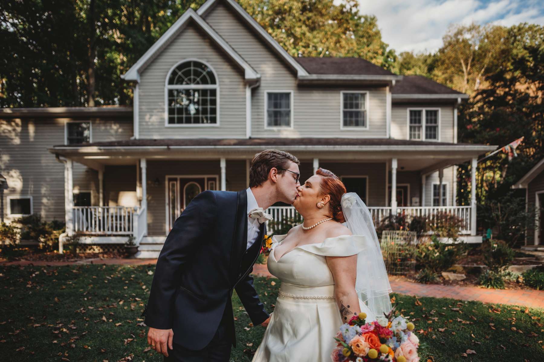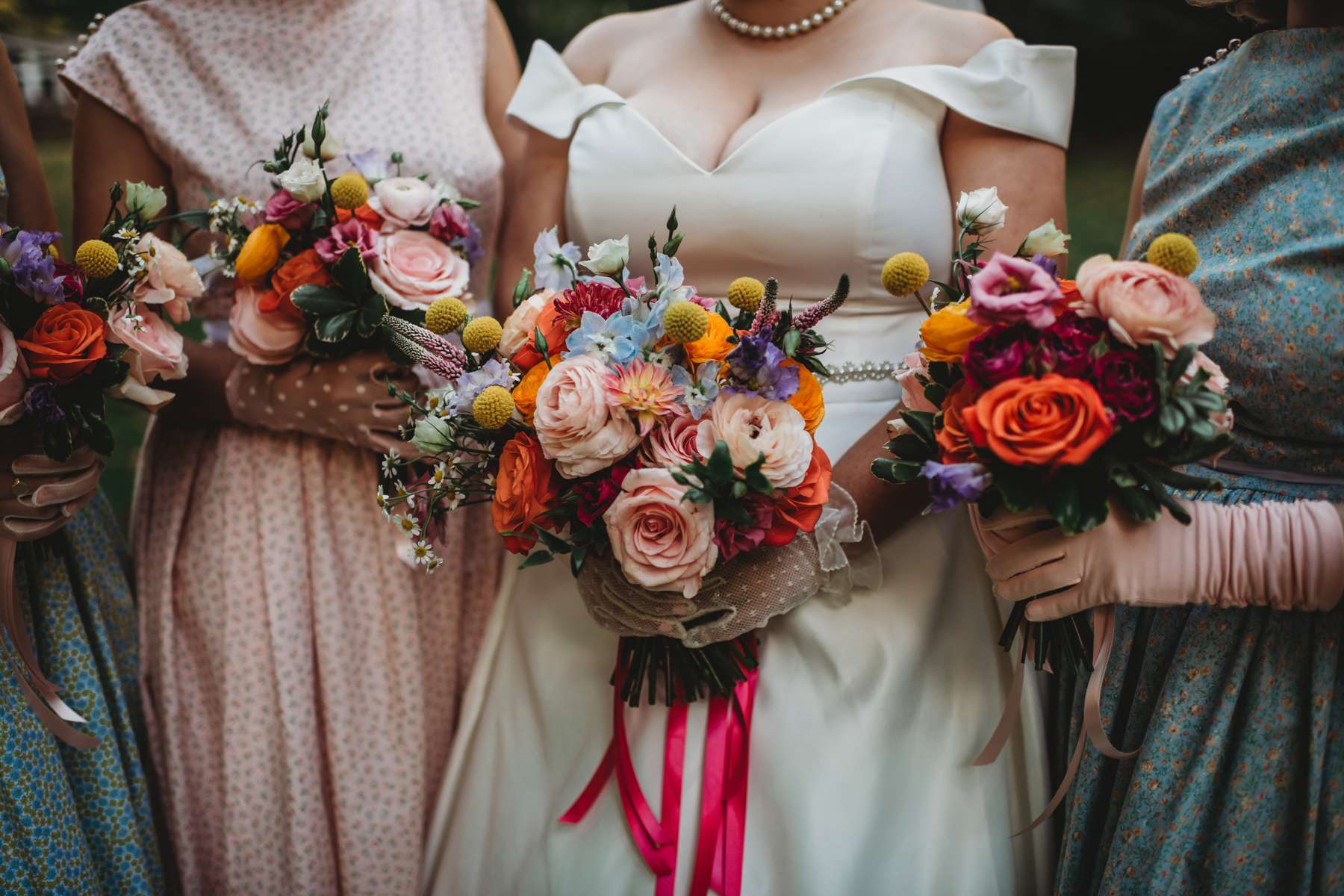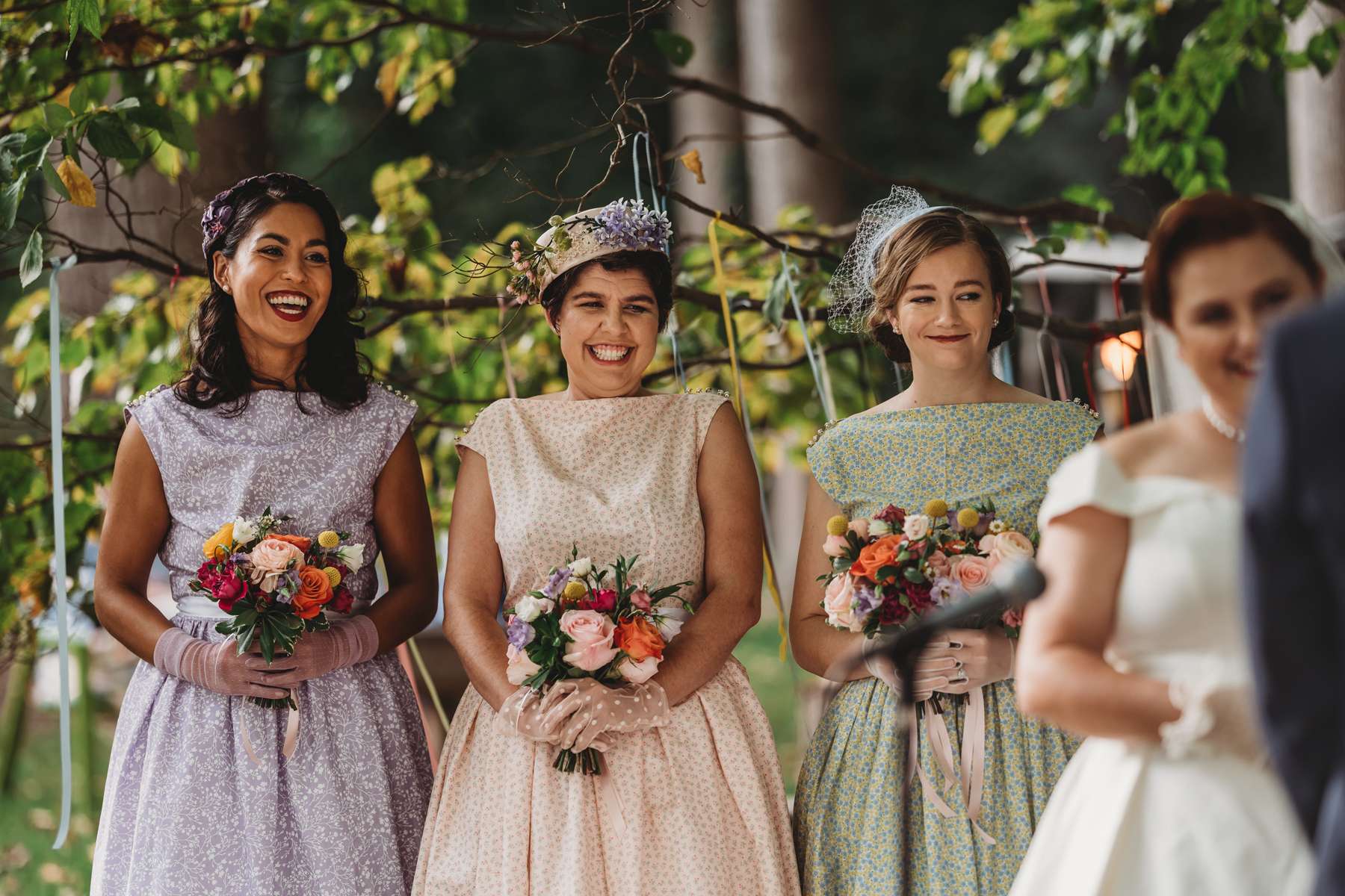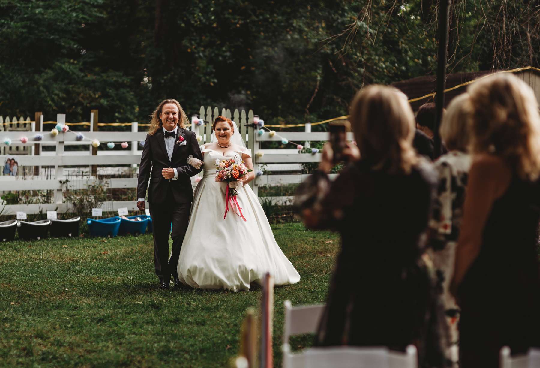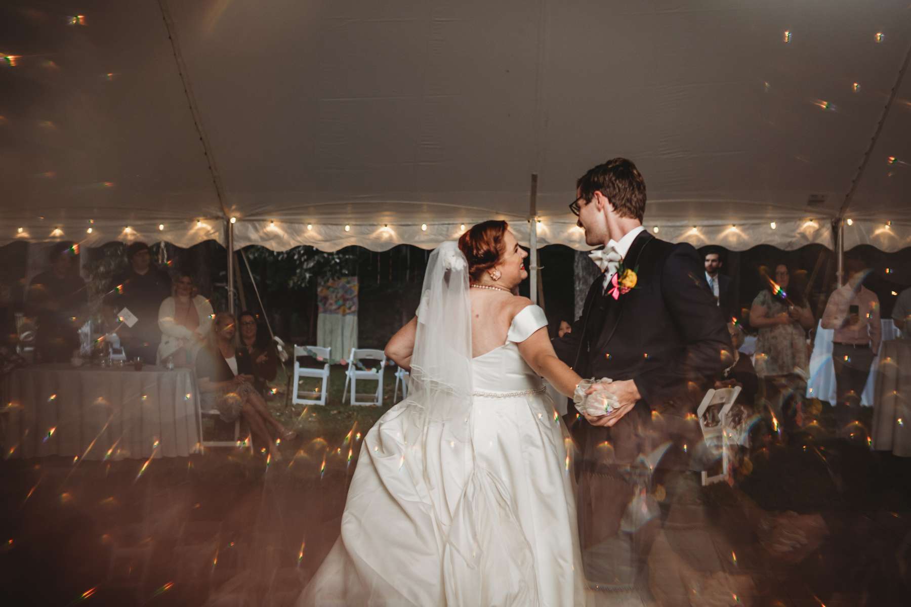 Andrew and Evelyn’s wedding in Bowie, Maryland, was a whimsical and enchanting affair that perfectly encapsulated their eclectic tastes and love for vibrant colours. Hosted in a friend’s back garden, with another friend officiating the ceremony and others helping with all the DIY, their day was a wonderful, creative collaboration which celebrated their love in a really special way.