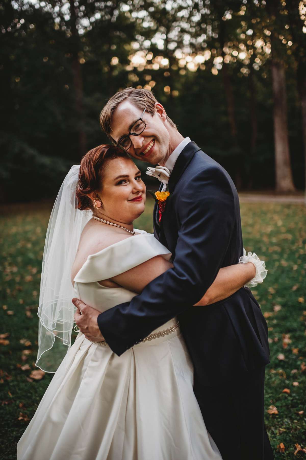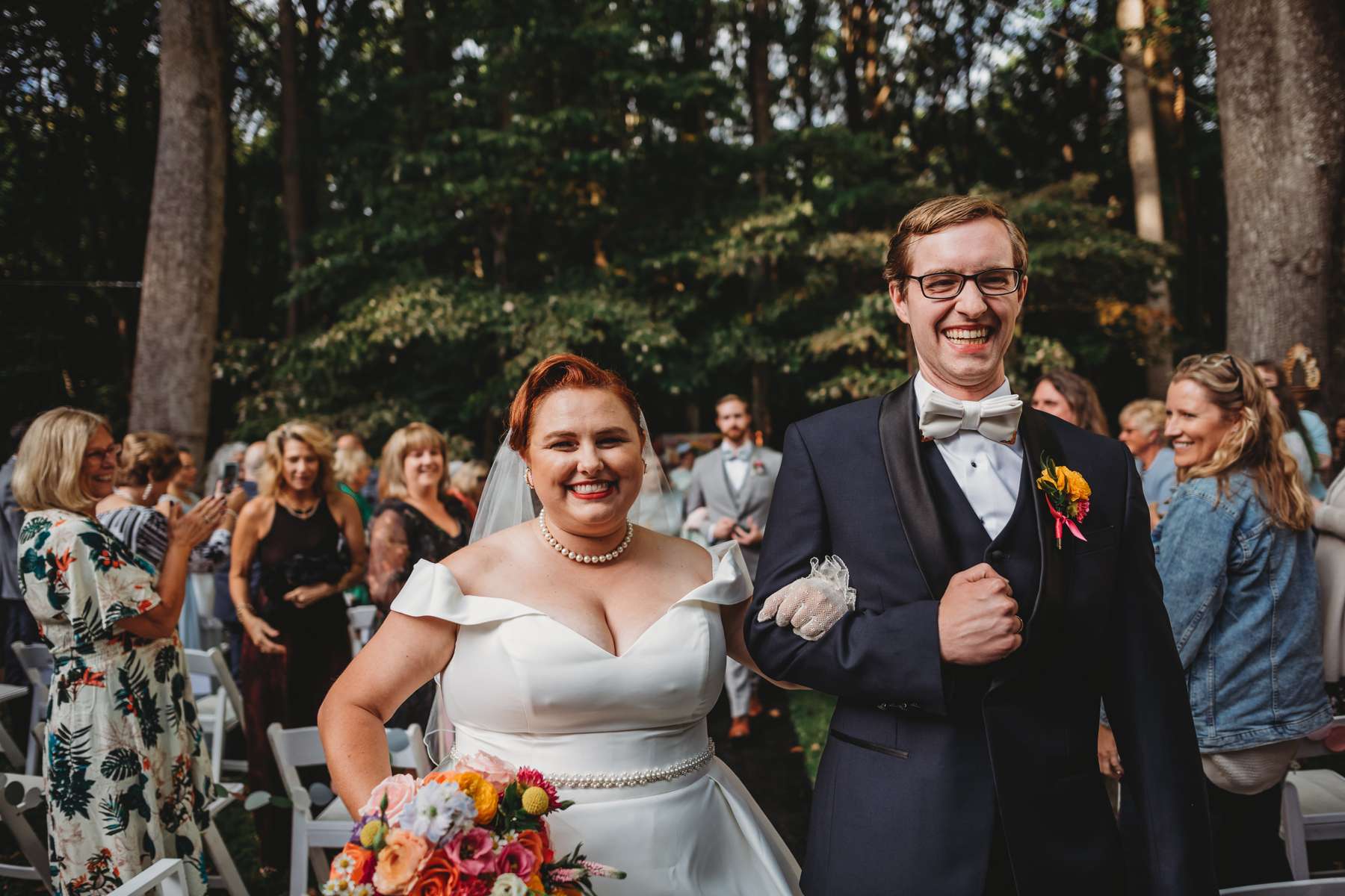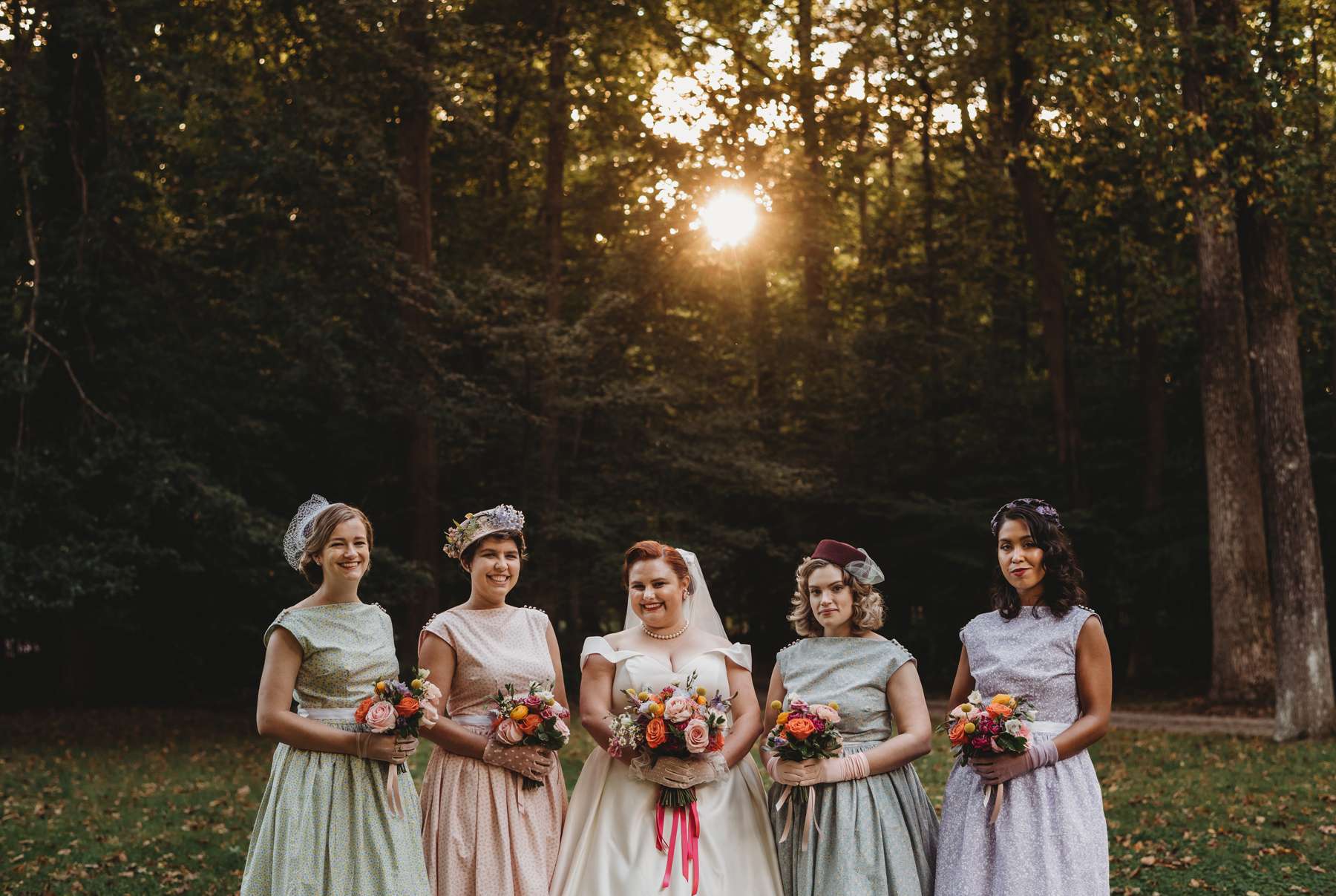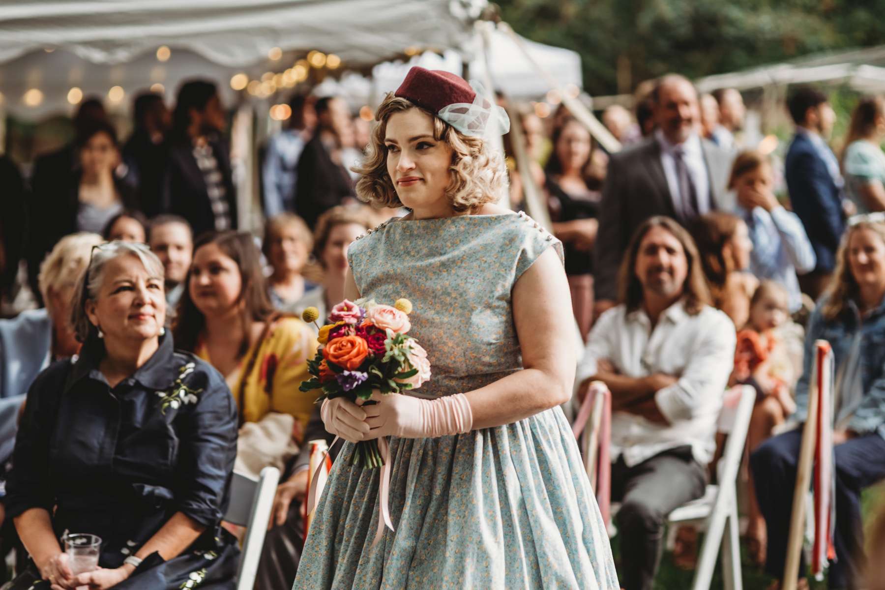 Andrew and Evelyn’s wedding in Bowie, Maryland, was a whimsical and enchanting affair that perfectly encapsulated their eclectic tastes and love for vibrant colours. Hosted in a friend’s back garden, with another friend officiating the ceremony and others helping with all the DIY, their day was a wonderful, creative collaboration which celebrated their love in a really special way.