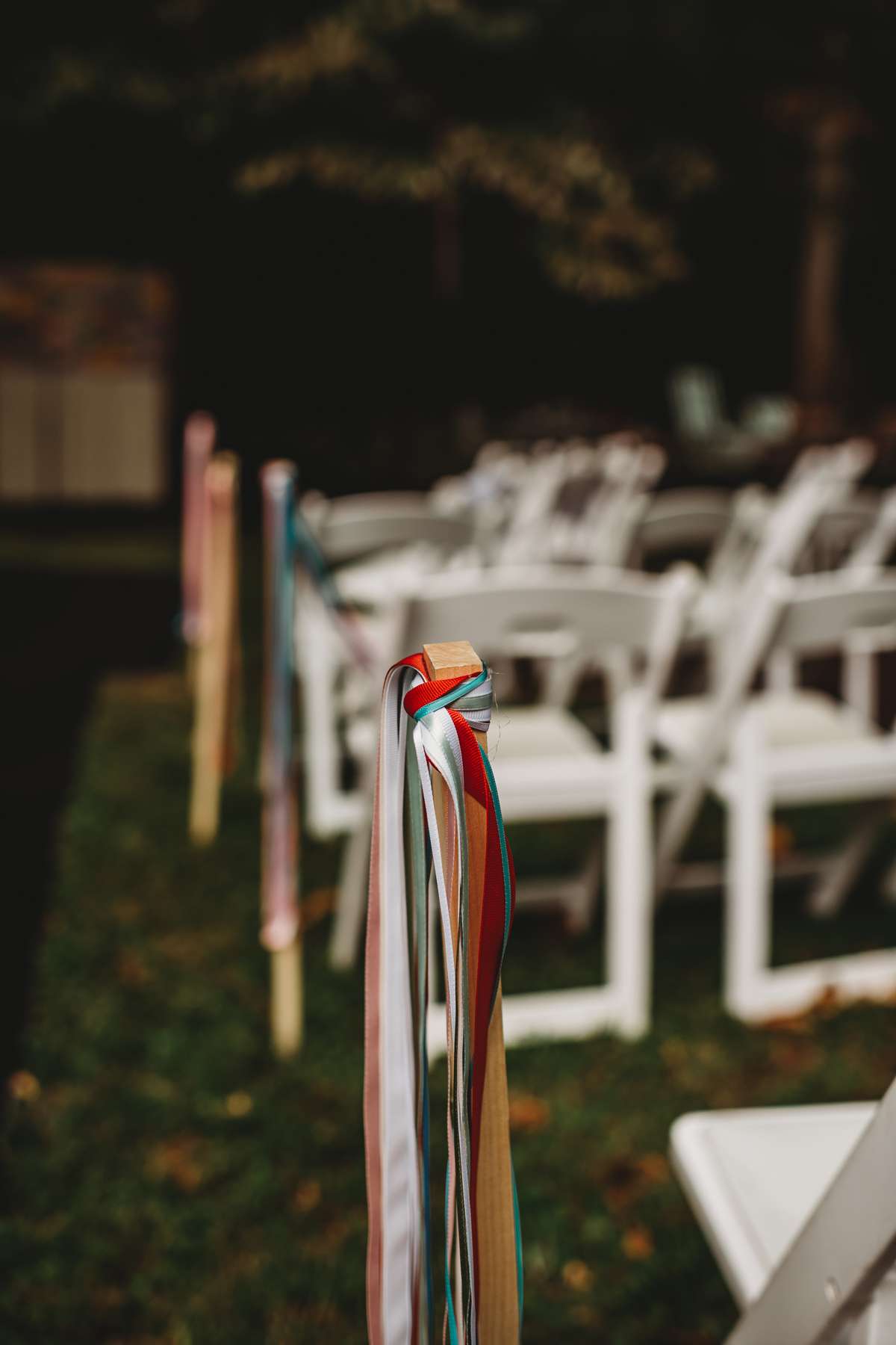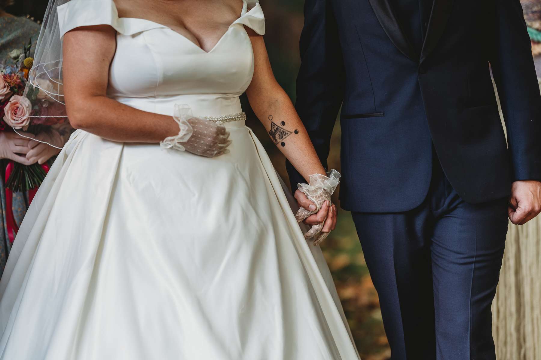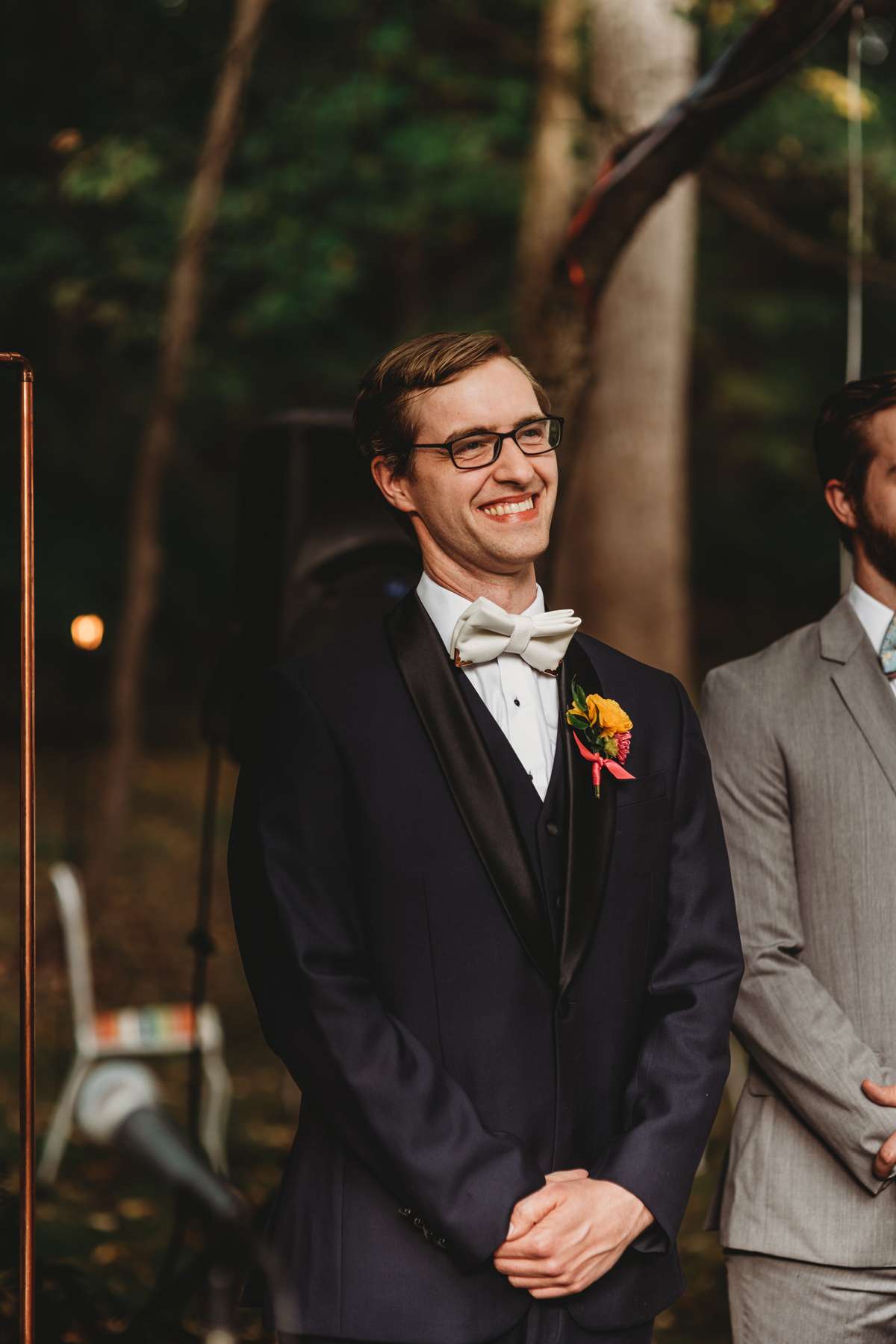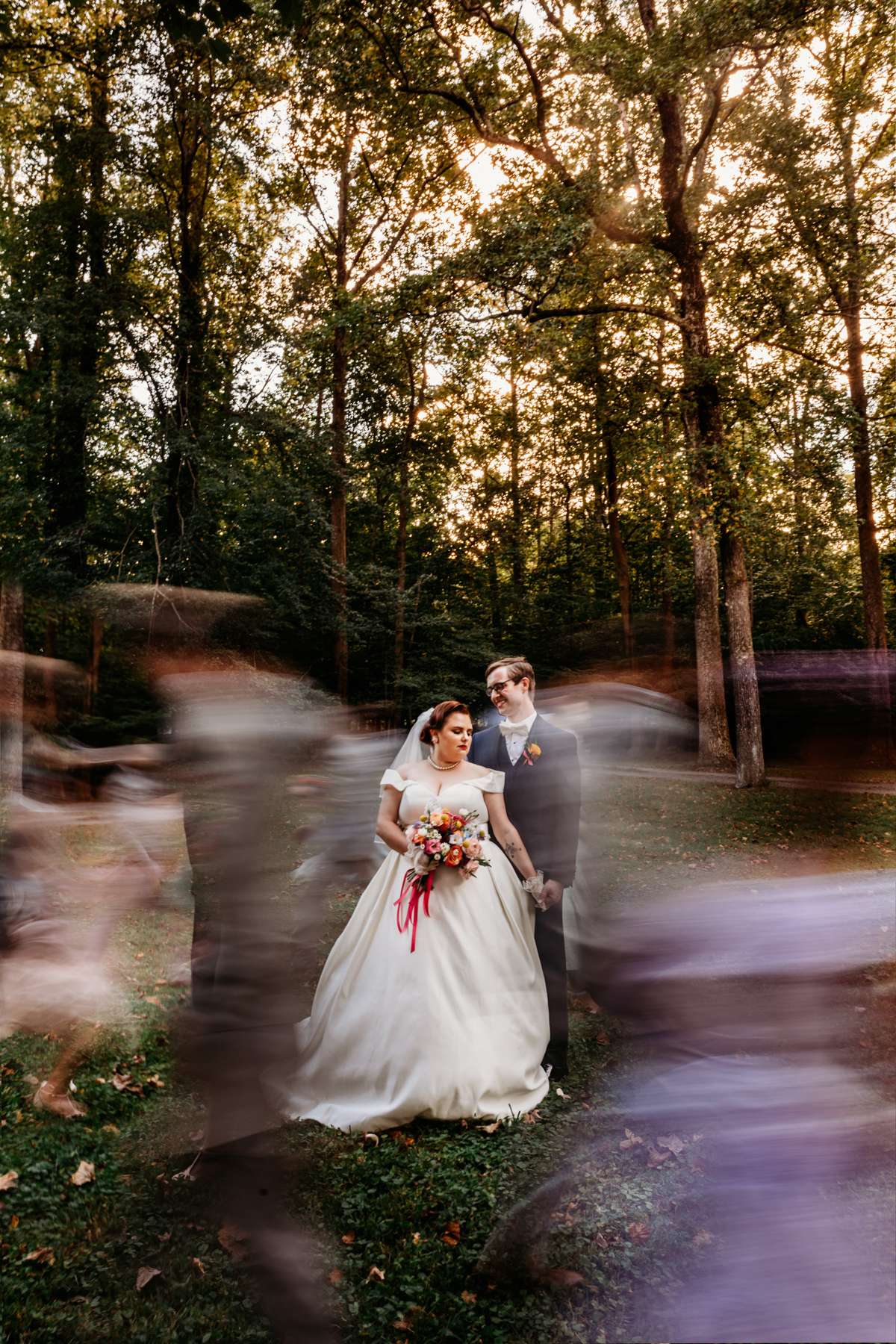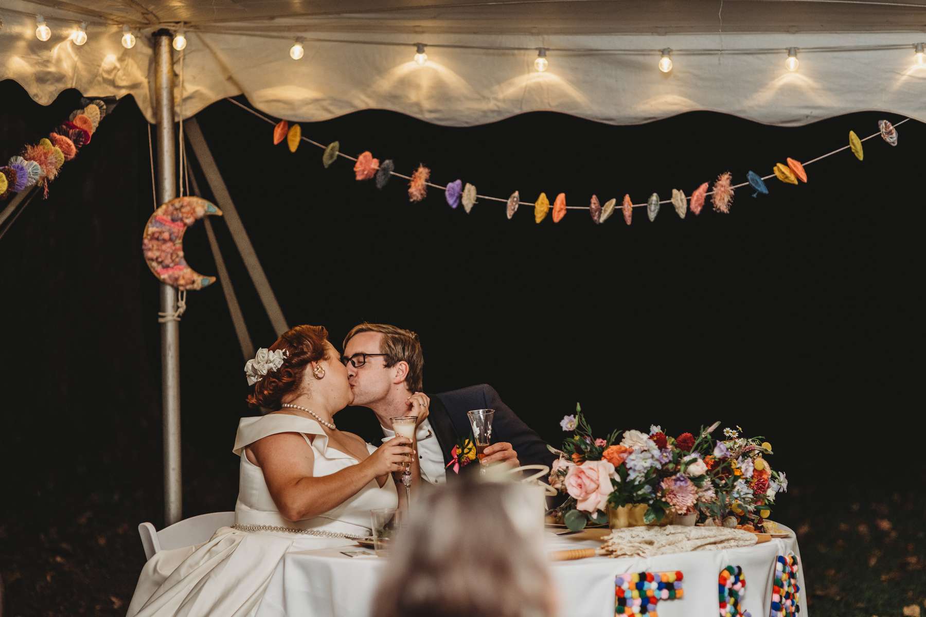 Andrew and Evelyn’s wedding in Bowie, Maryland, was a whimsical and enchanting affair that perfectly encapsulated their eclectic tastes and love for vibrant colours. Hosted in a friend’s back garden, with another friend officiating the ceremony and others helping with all the DIY, their day was a wonderful, creative collaboration which celebrated their love in a really special way.