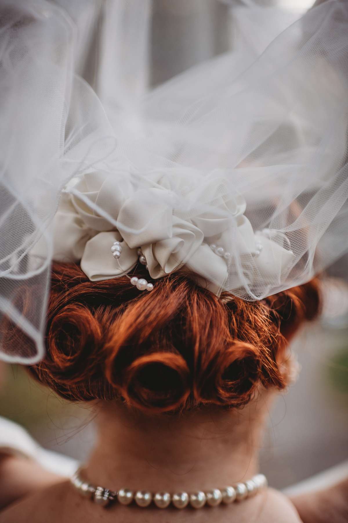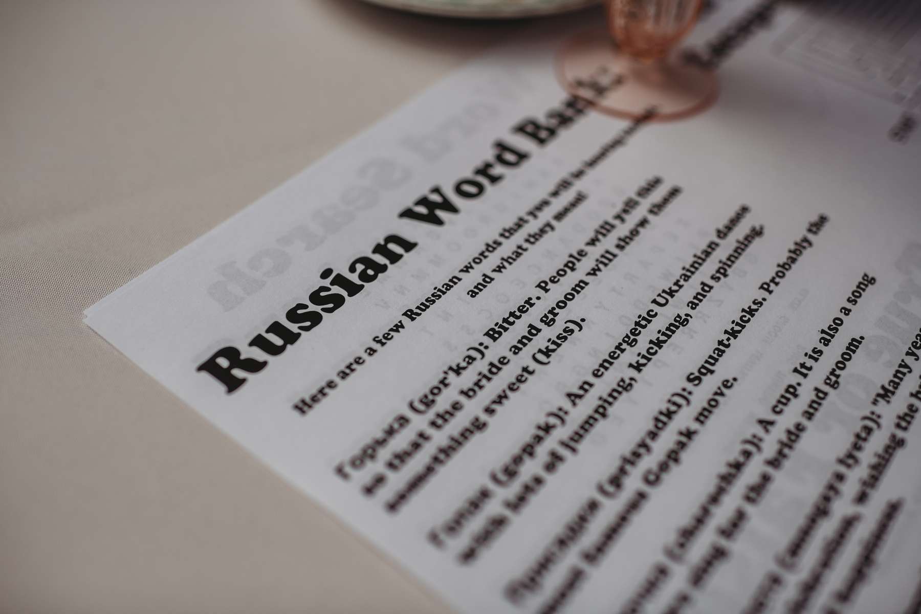 “We wanted to celebrate everything that we loved, even though on the surface not a lot of it seemed to go together,” Evelyn explained. “It was a mess of genres and colours, and somehow it all worked perfectly for who we were as a couple. I am a fibre artist and love vintage fashion, so we knew we wanted to have a lot of 50s fashion and yarn-related decor. Andrew comes from a big Russian family, so we wanted to include traditions like dancing and singing.”