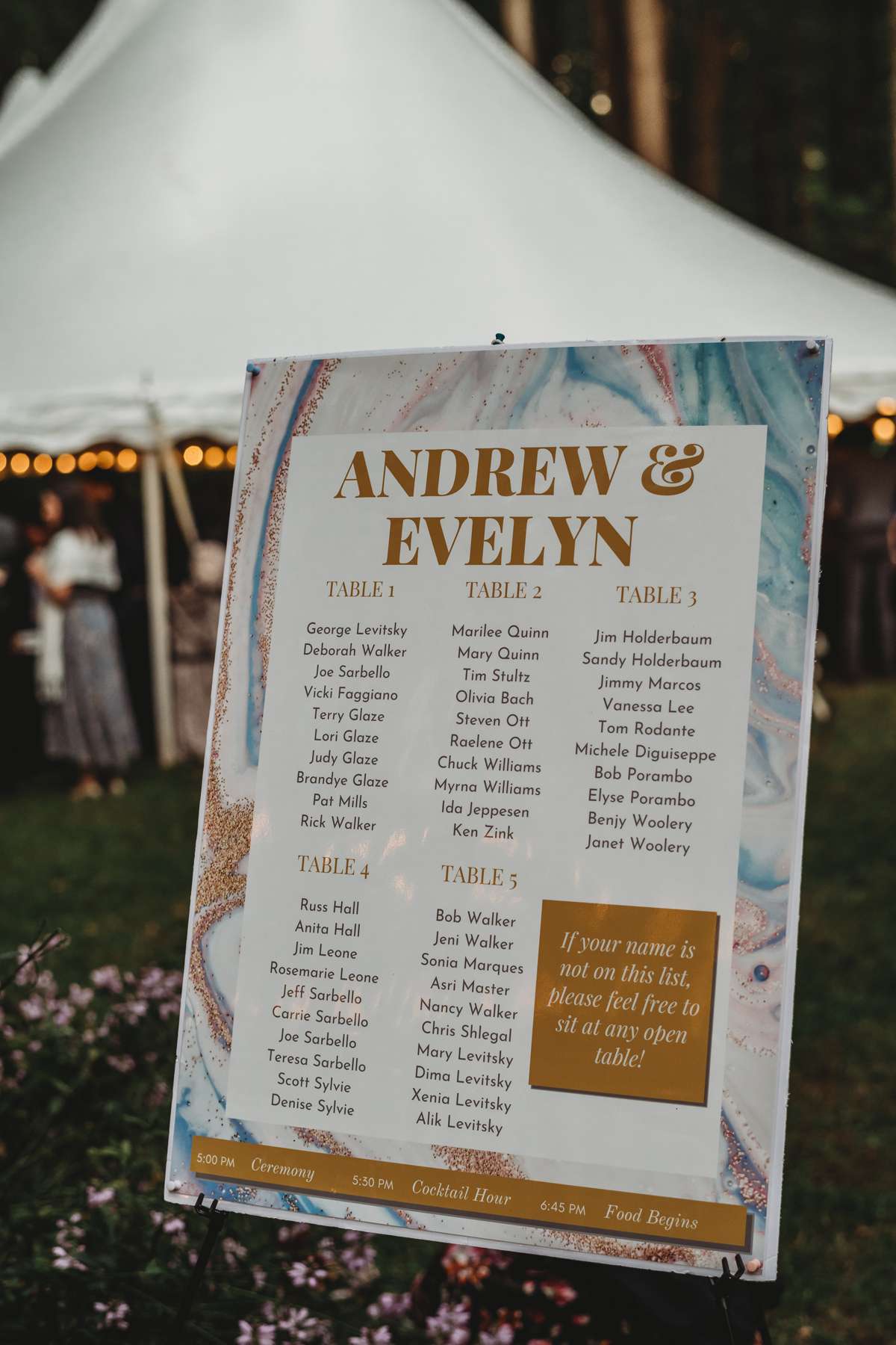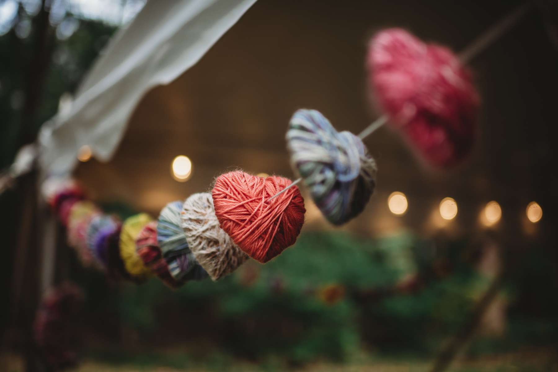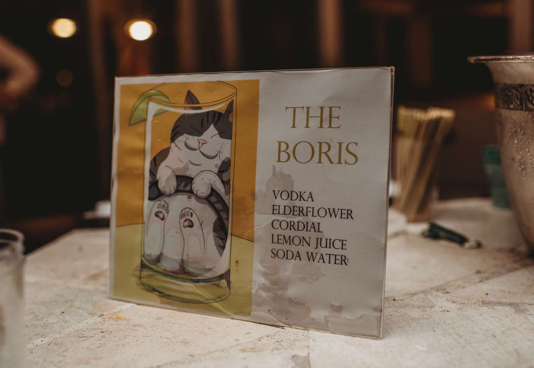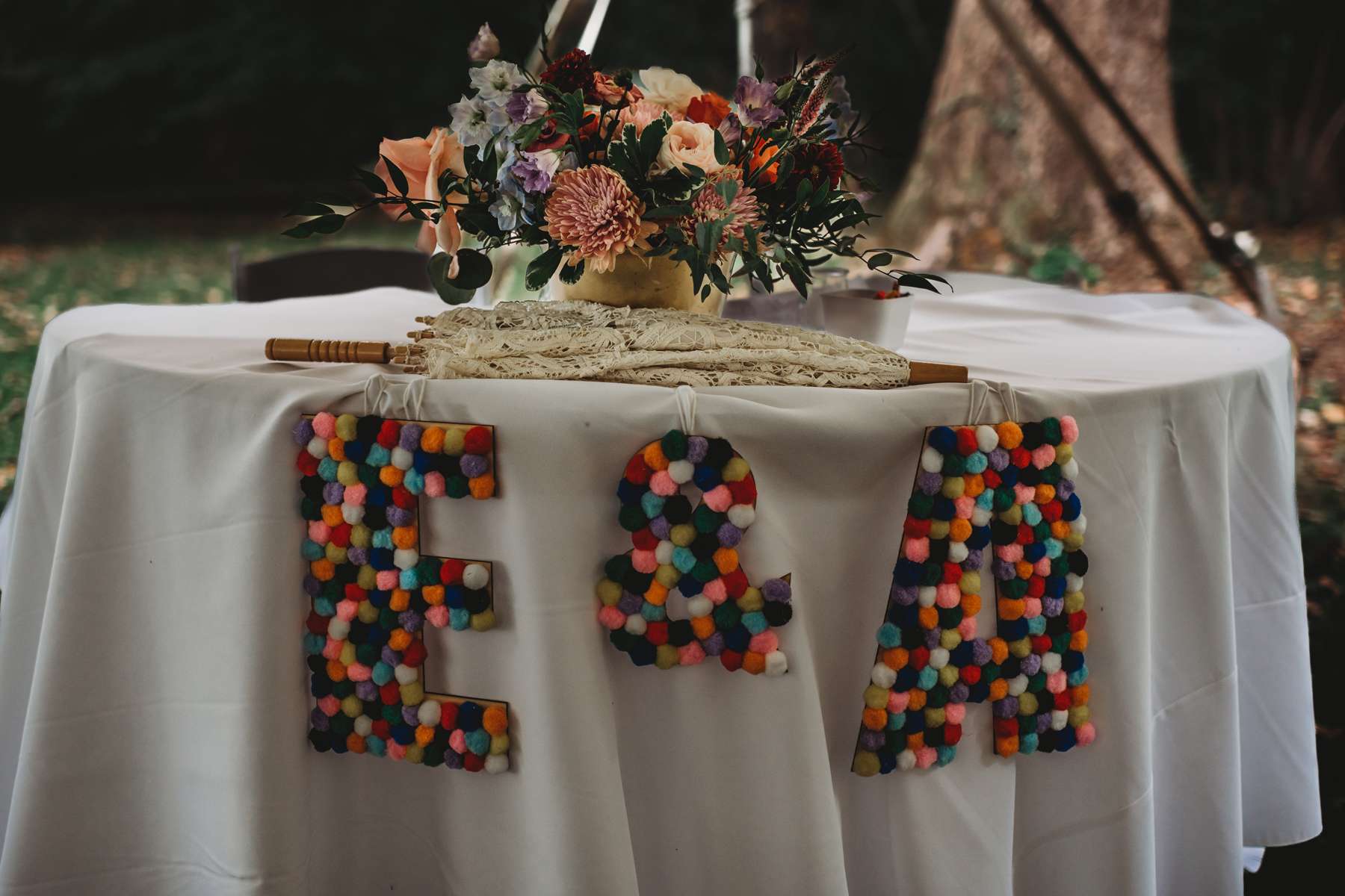 One of the standout features of their wedding was the array of personalised details that made the event truly unique. Evelyn, her mum, and her sister hand-sewed all the bridesmaid dresses and Evelyn handmade the yarn wrapped heart garlands and the pom pom covered letters which went on their sweetheart table. Andrew wore handknit socks made by Evelyn! Andrew drew the art for their signature cocktails (based on their two cats) and designed a ‘kids menu’ with a colouring page, a word search and some trivia that the guests could work on during cocktail hour.