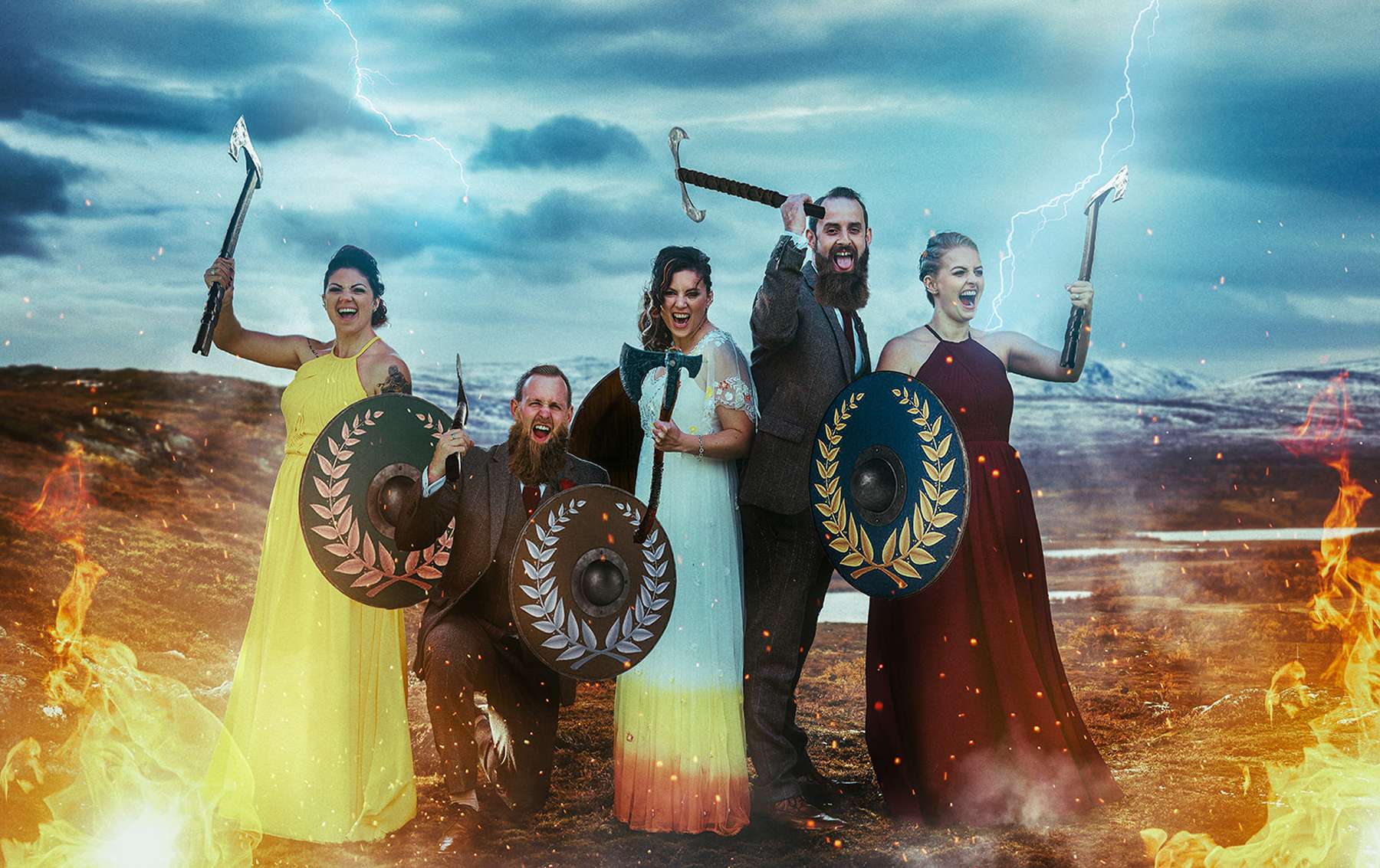 Jamie-Leigh, told us all about the inspiration behind their one-of-a-kind wedding, “We were influenced by the amazing colours you get in Autumn for our wedding palette. We both have a love for heavy rock music and different mythologies. After an exhilarating session of axe throwing with friends, we had the idea to include it in our wedding. The Viking theme encapsulated all our loves and interests into one.”