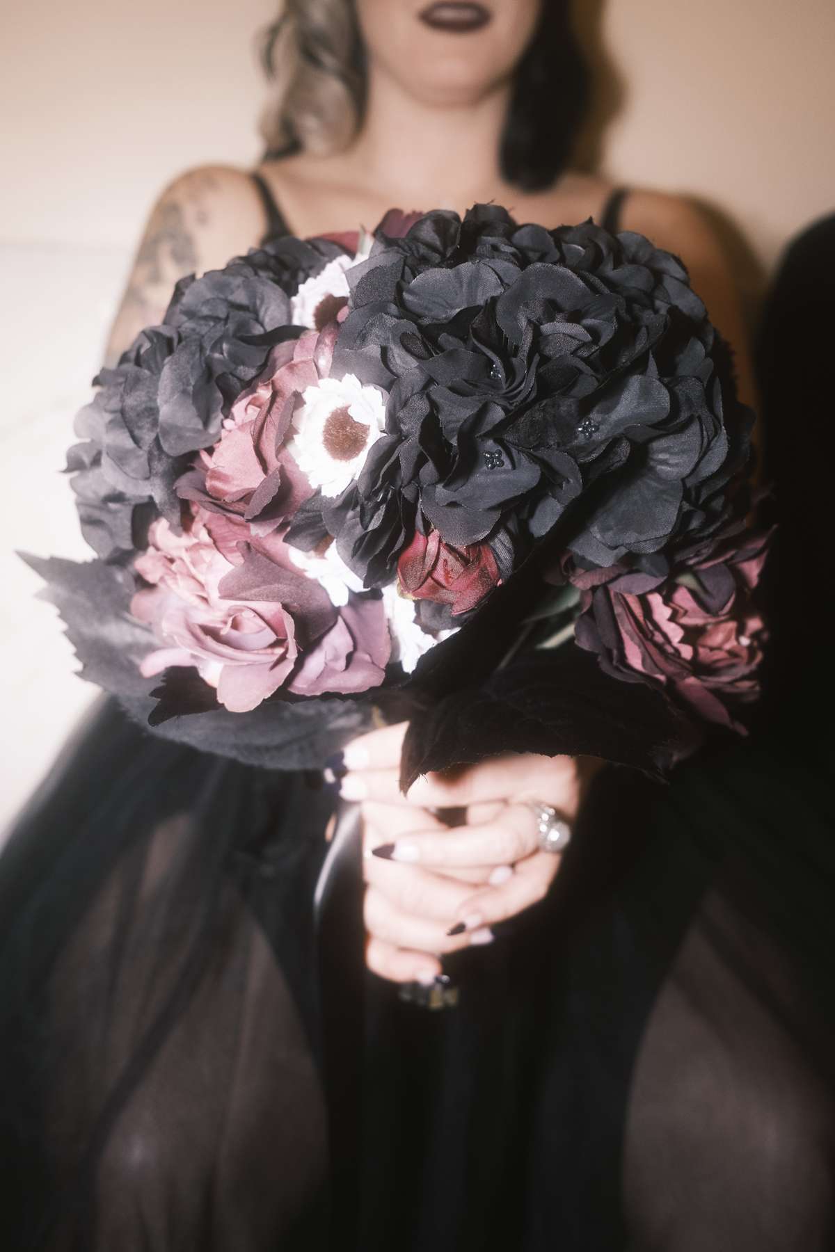 Meghan and Tommy’s wedding was a mesmerising fusion of Halloween and Dia de Los Muertos, combining their love for these holidays with their heritages. Breaking away from traditional wedding themes, they invited their 30 guests to don all-black attire, creating a striking and dramatic procession and set of photos!