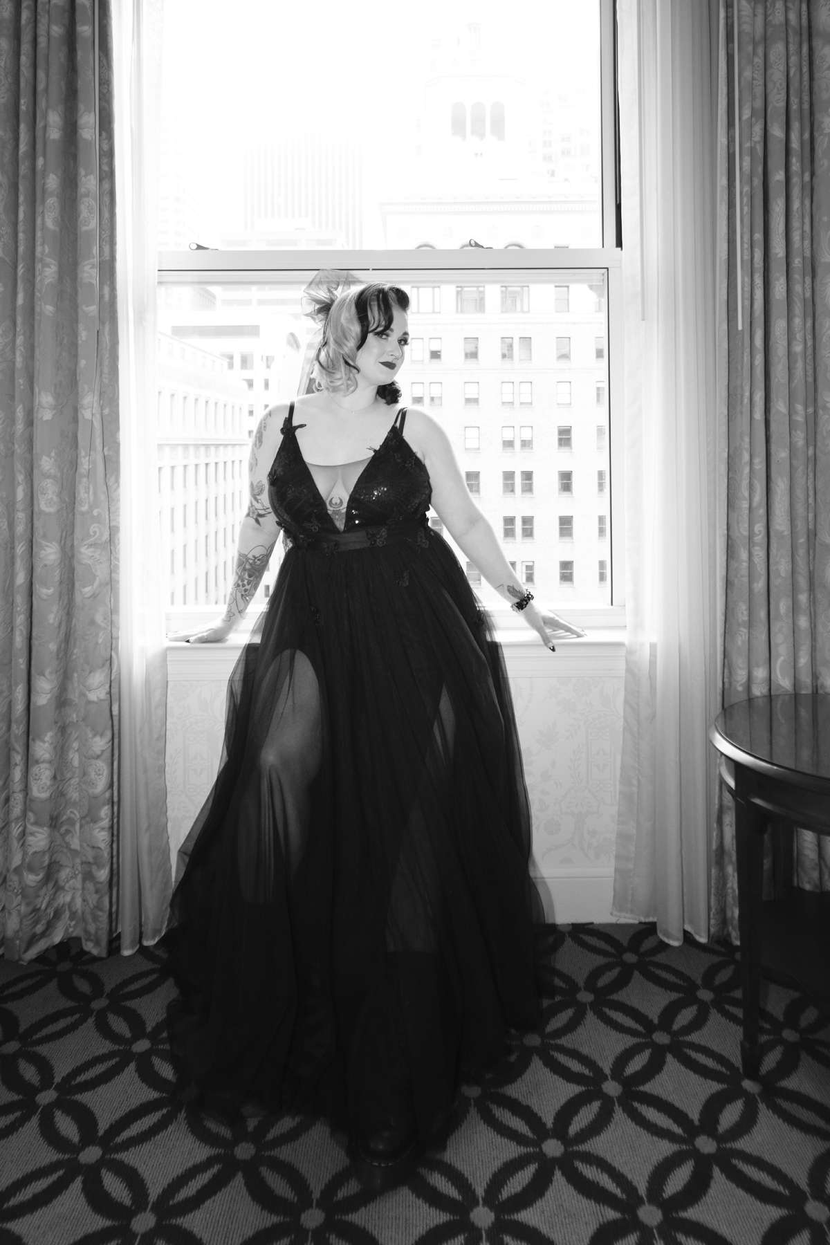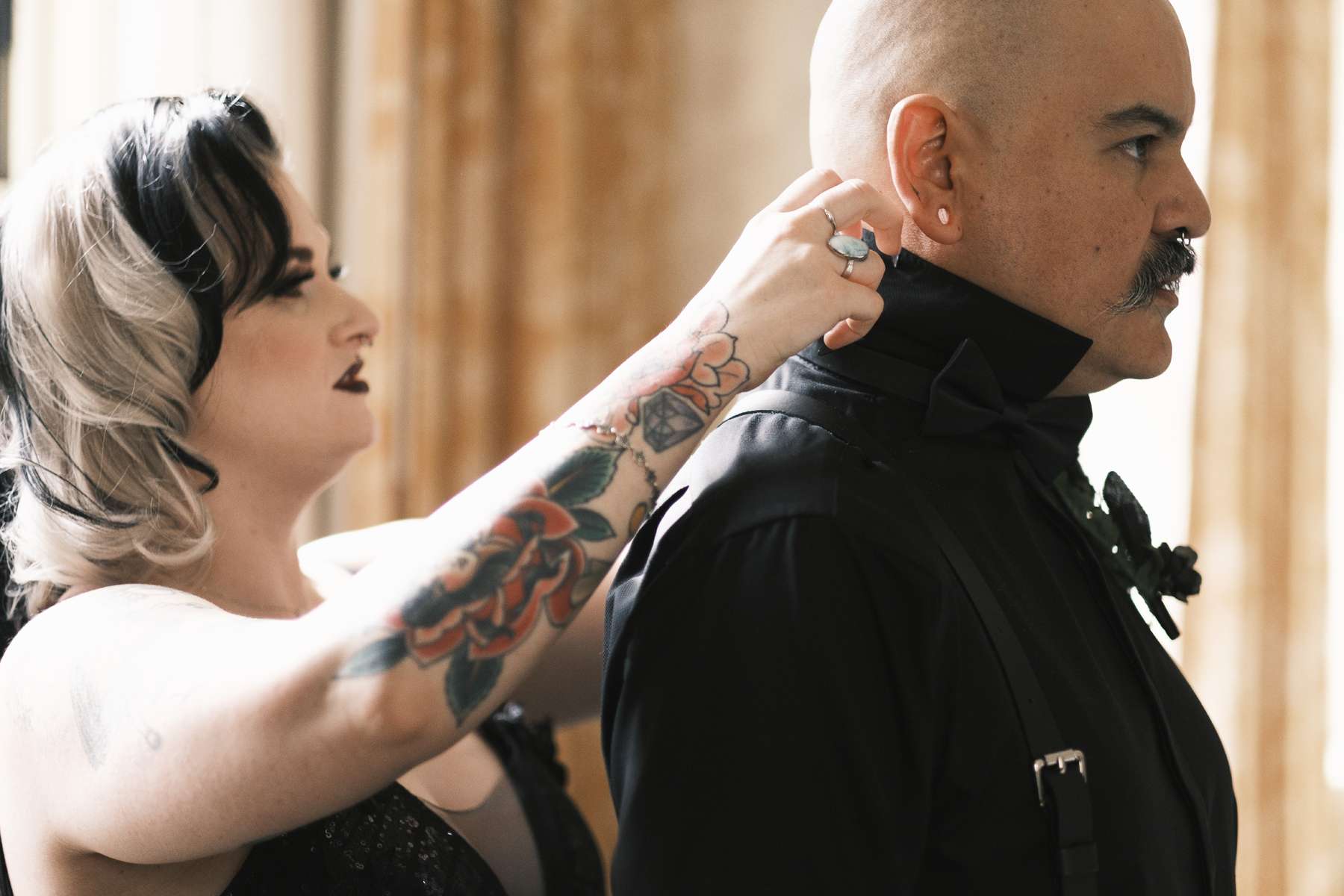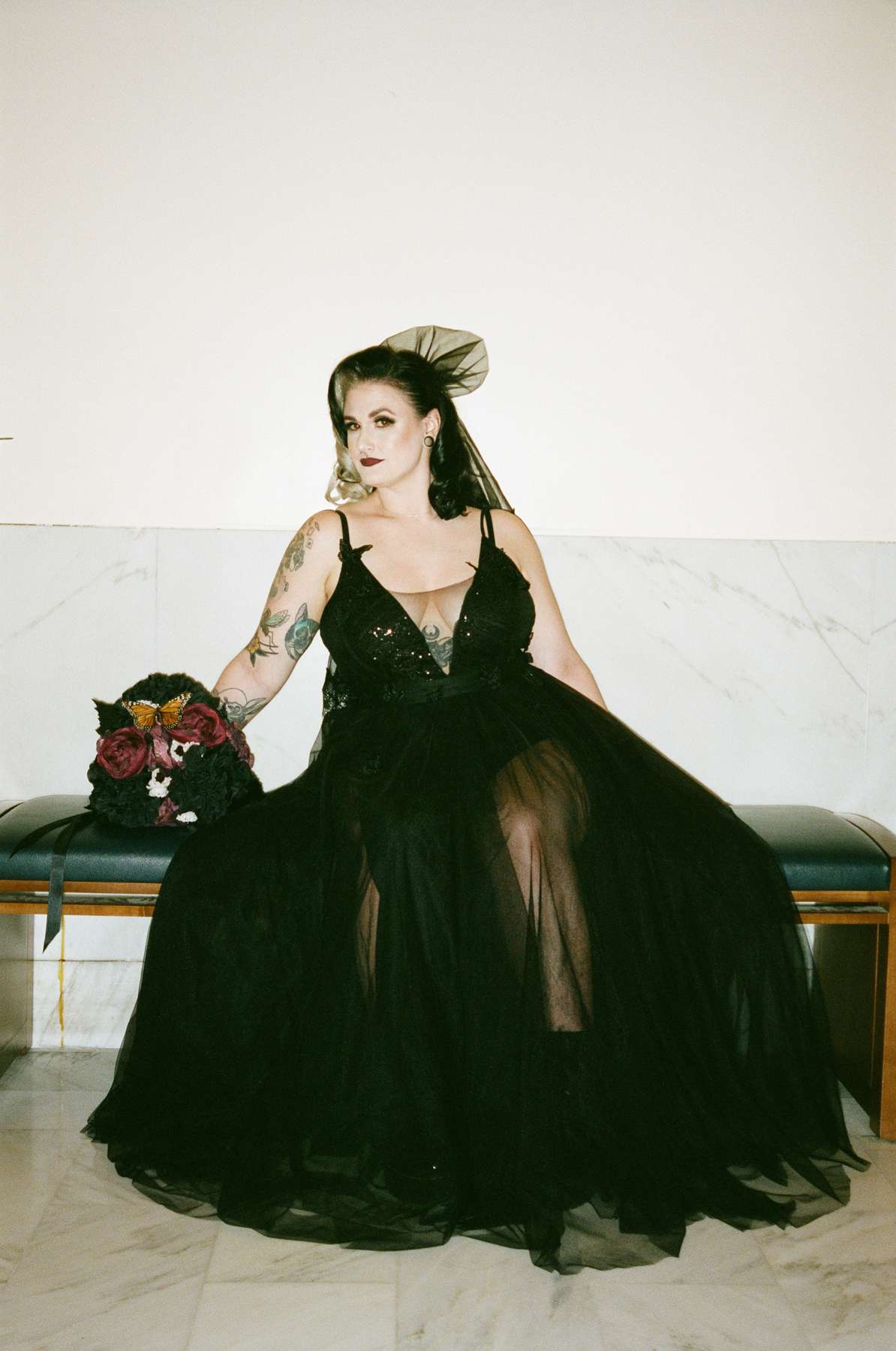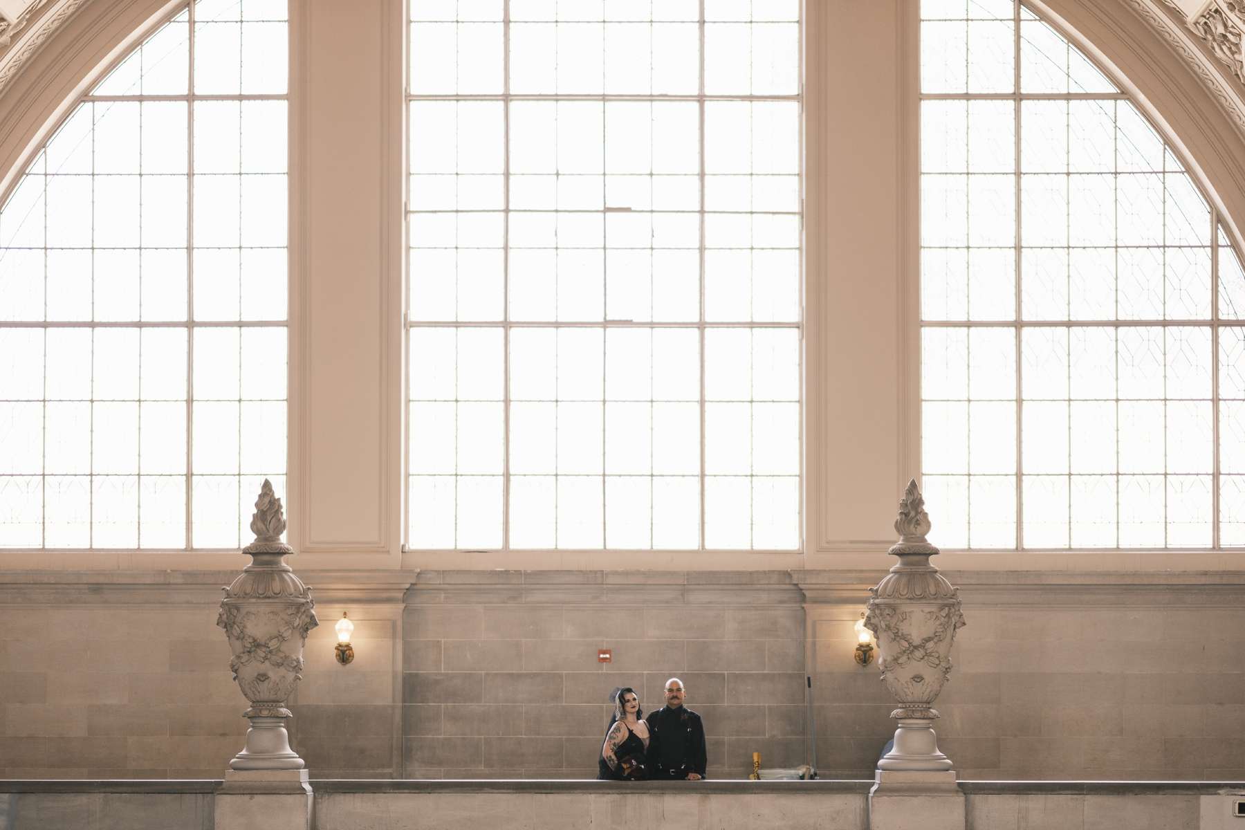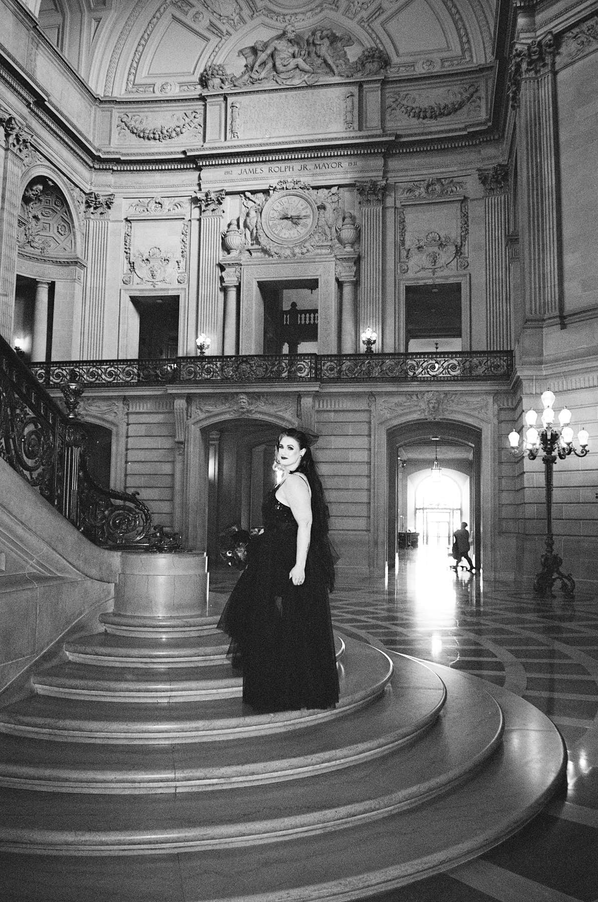 The couple chose San Francisco City Hall as their venue, a refreshing departure from the conventional church setting. It wasn’t without it’s challenges though as Meghan explains, “The biggest challenge of our wedding was the venue as we could only book it 90 days in advanced. This made it very difficult to lock down the date. We had been trying to get a Halloween wedding there since 2018 and we finally got lucky for Halloween 2022! The only problem was we then only had three months to plan everything!” Luckily, they had a general idea of the theme and who they wanted there.