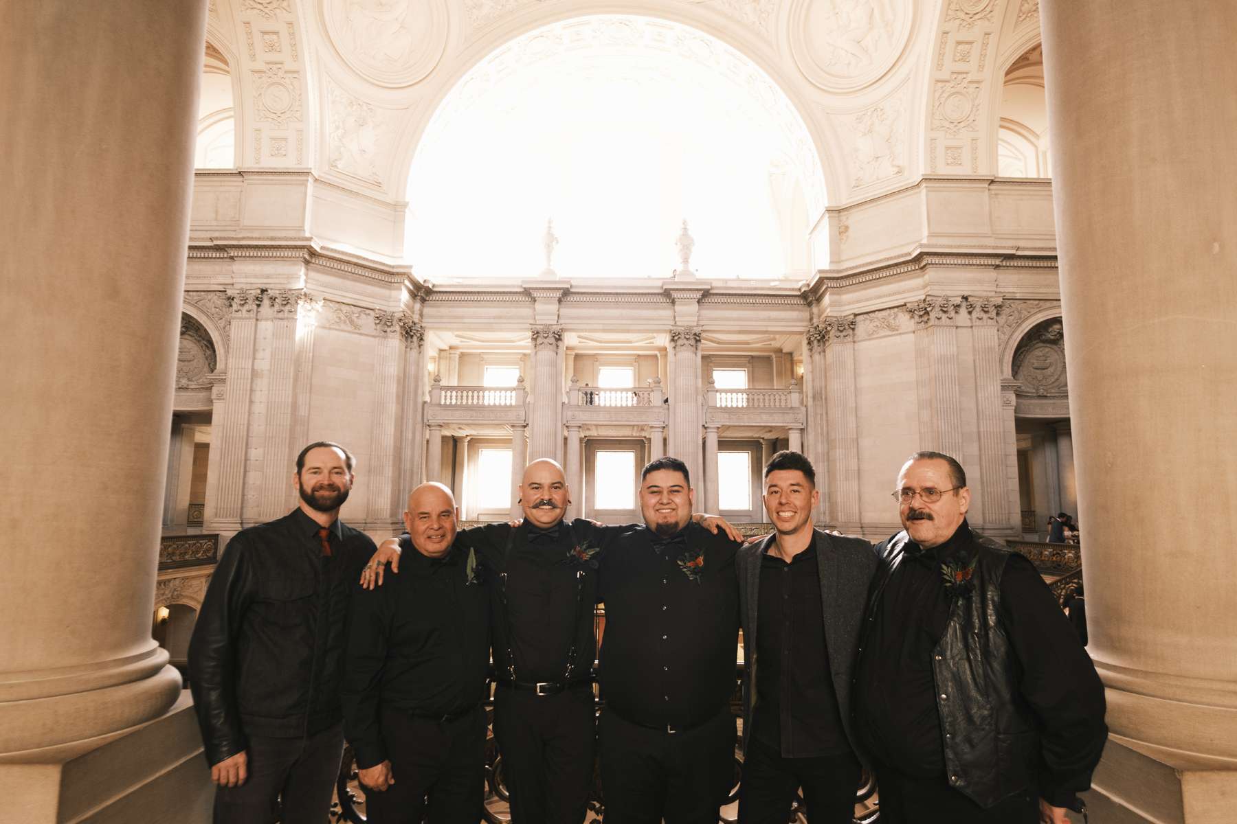 The day ended with a photo session with their photographer followed by a meal with everyone at Original Joe’s, an Italian restaurant in North Beach, where they showed up wearing custom embroidered jackets that had their surname, “Martinez”, on the back. Disposable cameras were scattered on the tables, encouraging guests to snap candid moments, while Tommy captured Polaroids, creating a beautiful collection of memories.