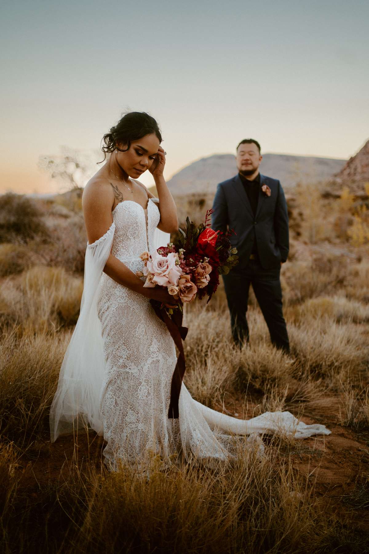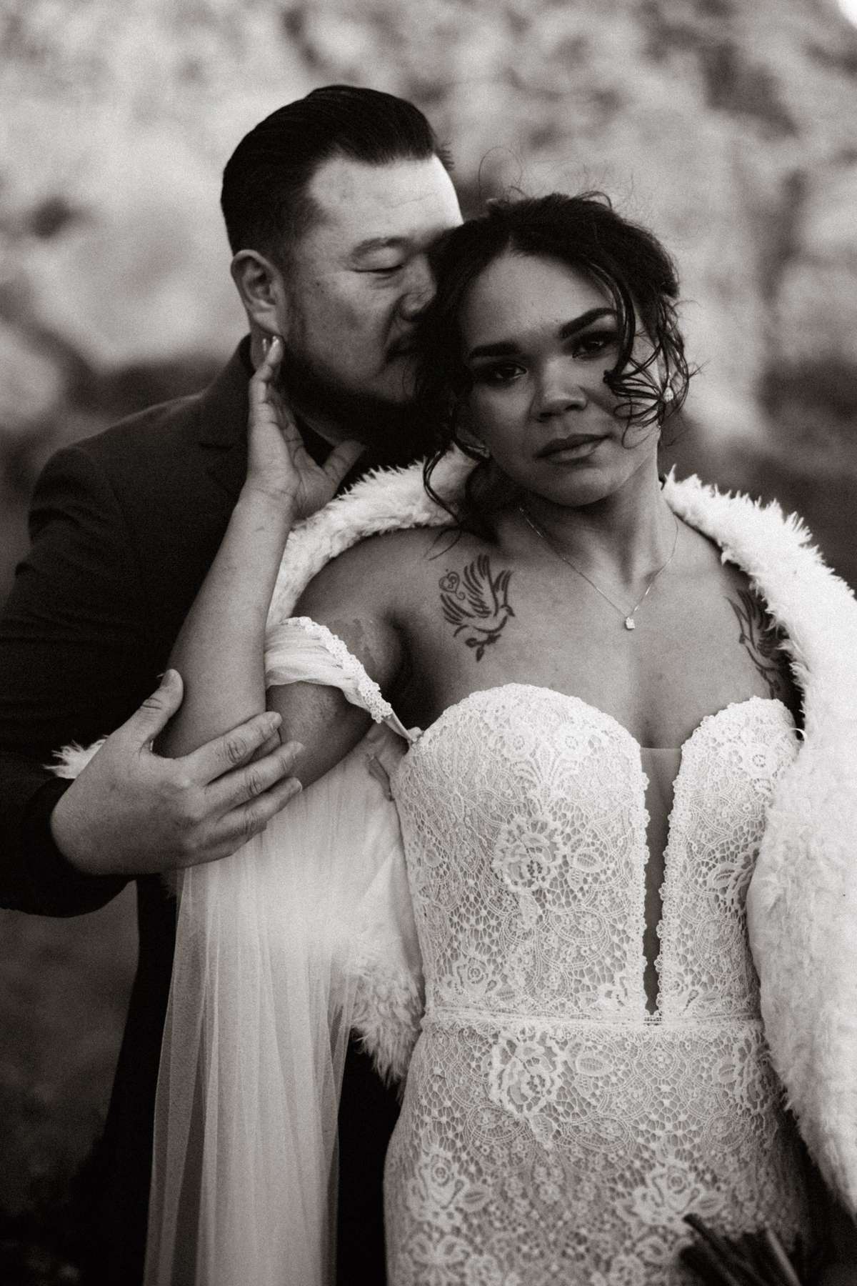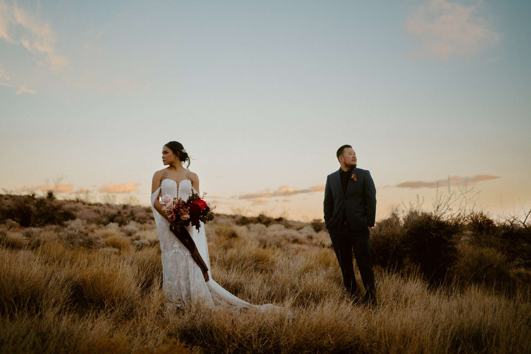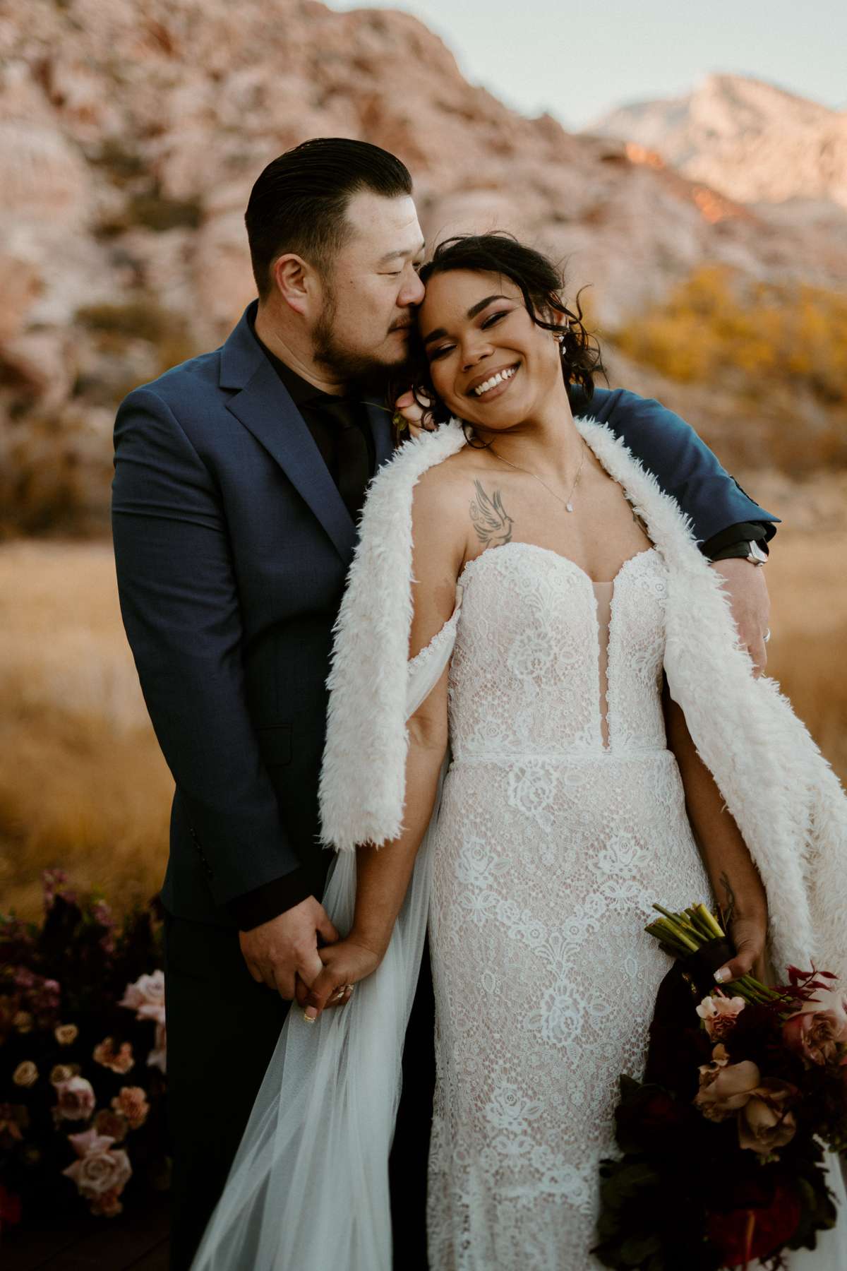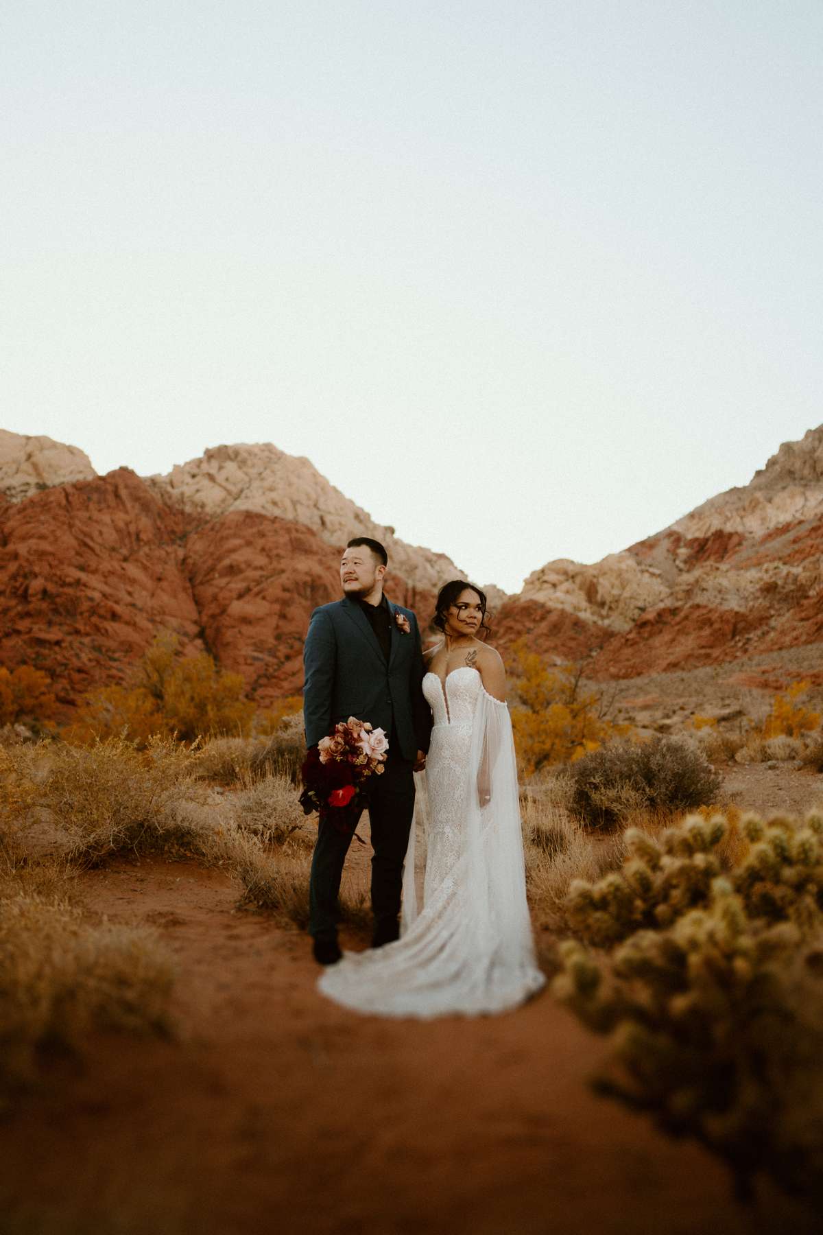 LaDawn and Jin exchanged vows in a micro wedding at Red Rock Canyon, Nevada, in November. Describing their wedding theme as a blend of romance, dreaminess and edginess, their day was simple but they really let their personalities shine. With intentional choices and meaningful elements, their wedding was a true reflection of who they are.