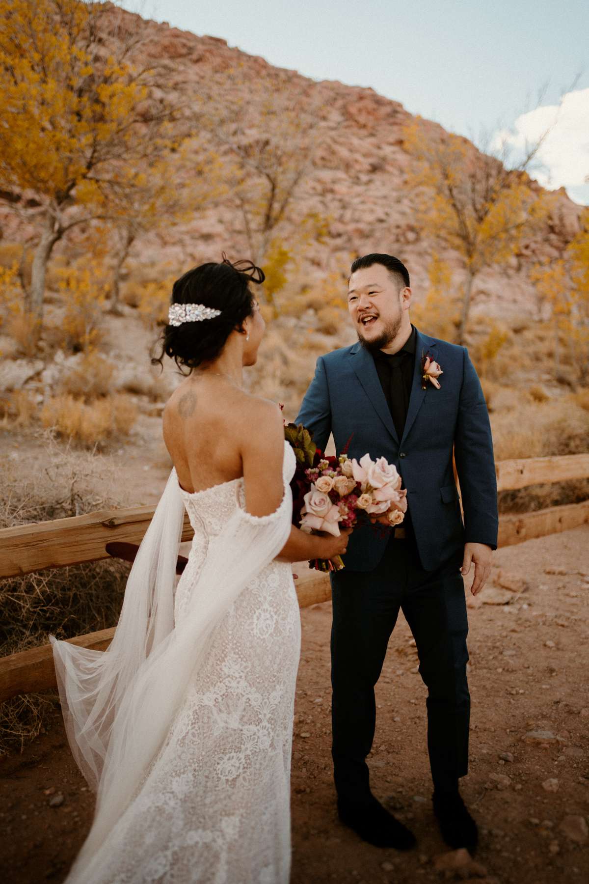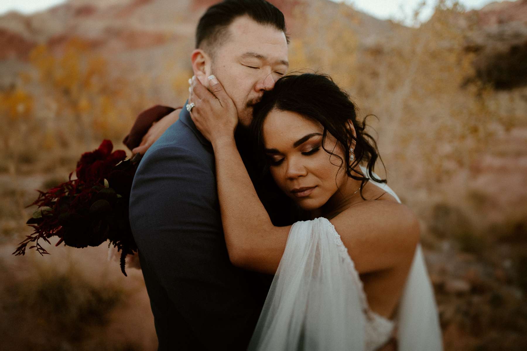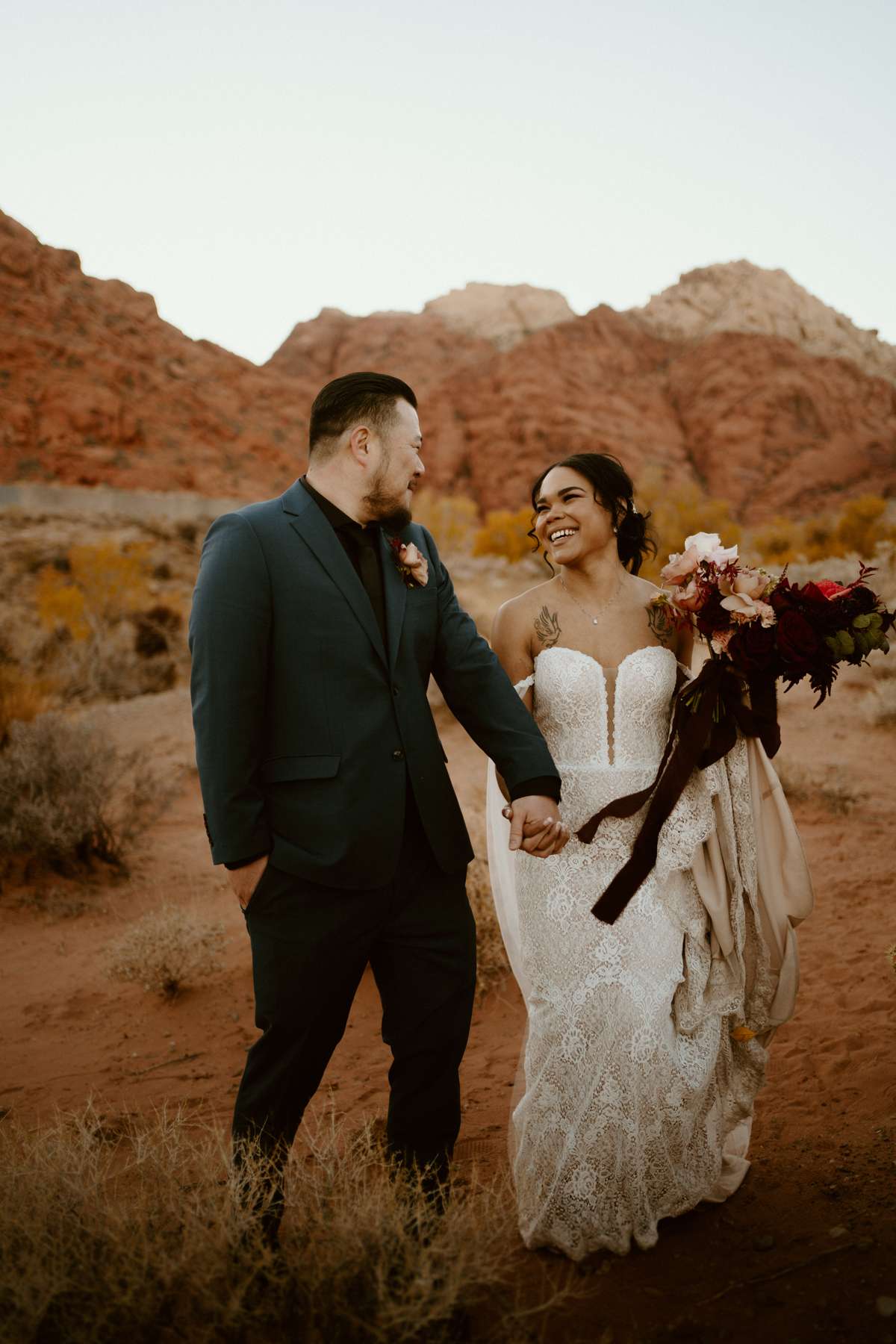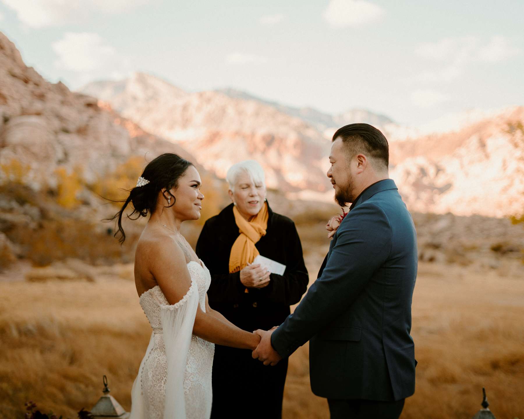 LaDawn and Jin exchanged vows in a micro wedding at Red Rock Canyon, Nevada, in November. Describing their wedding theme as a blend of romance, dreaminess and edginess, their day was simple but they really let their personalities shine. With intentional choices and meaningful elements, their wedding was a true reflection of who they are.