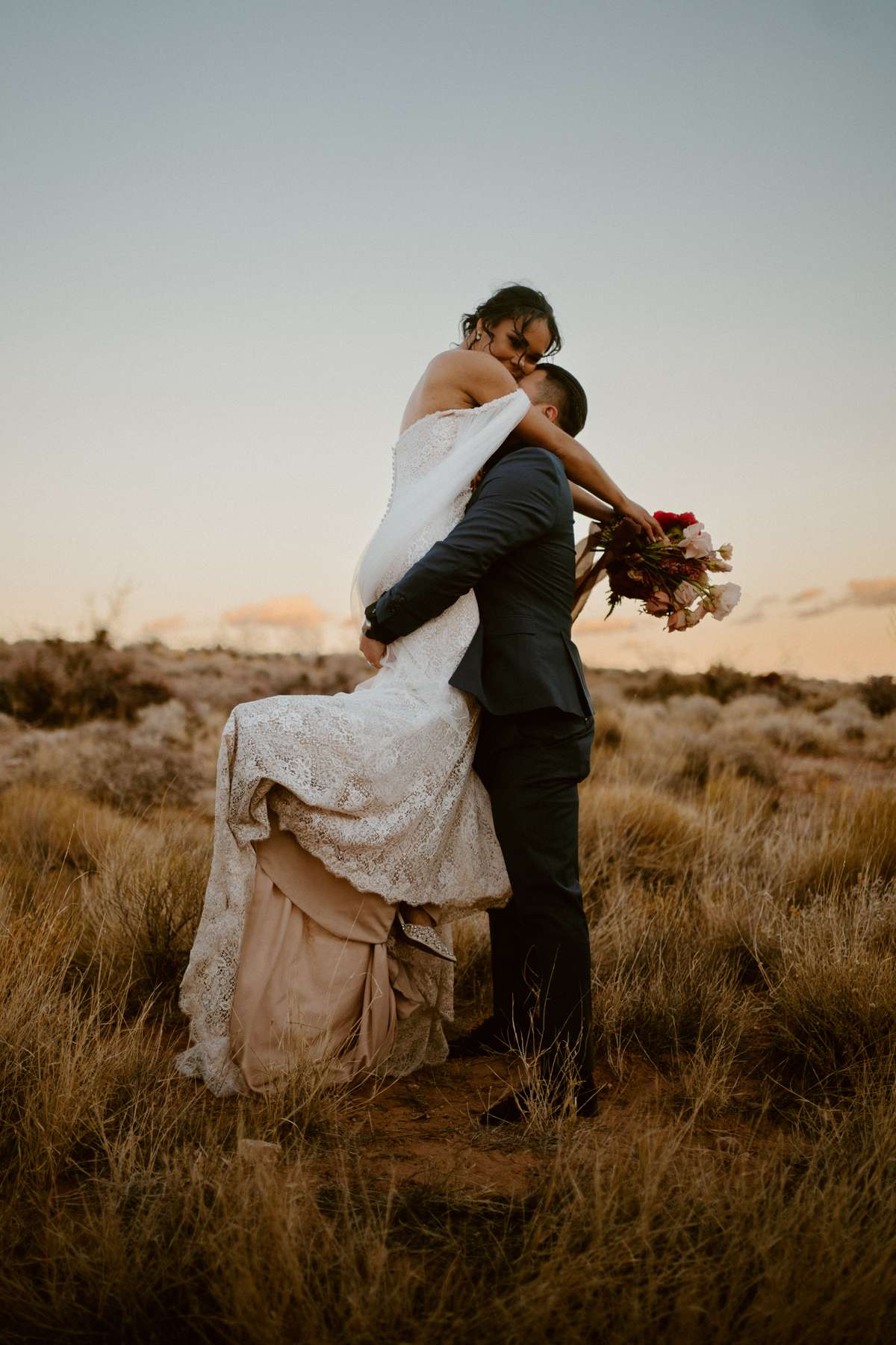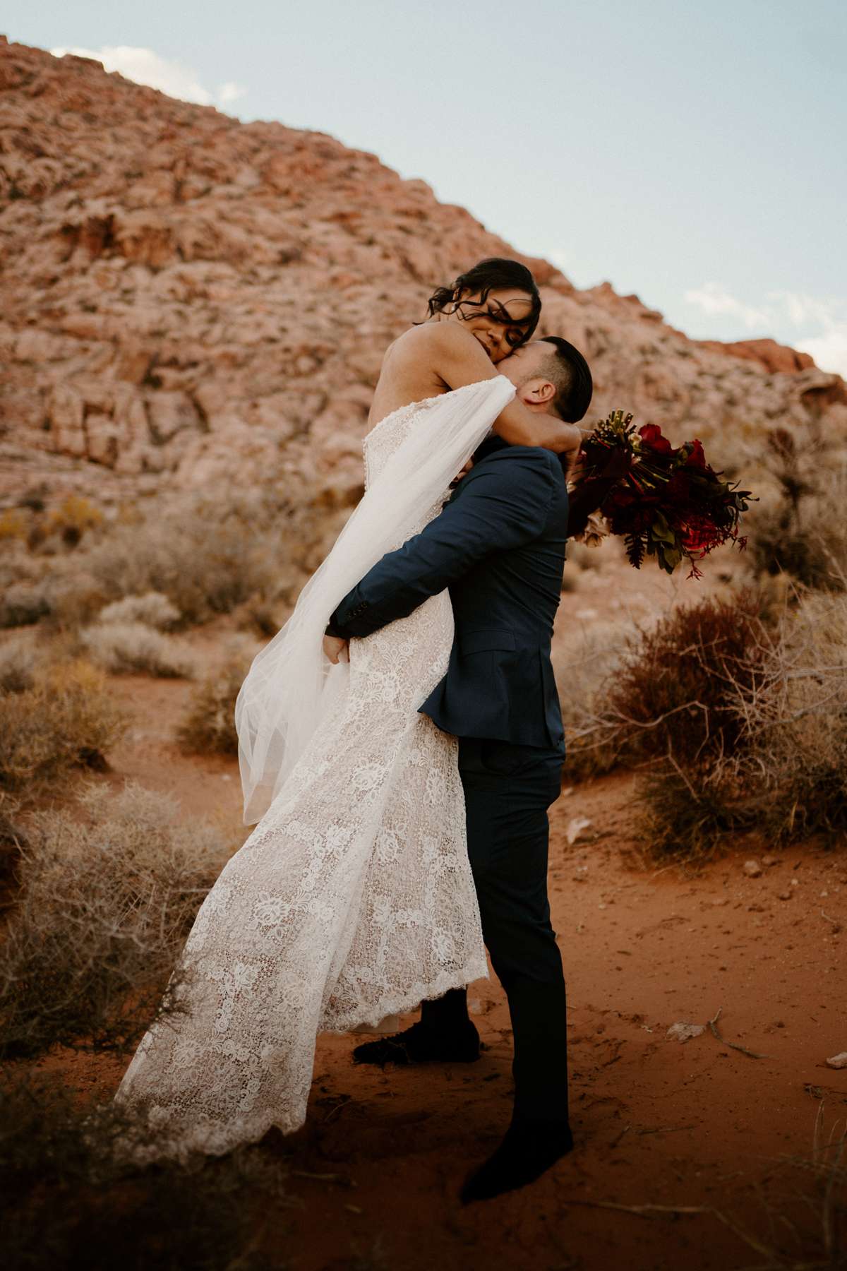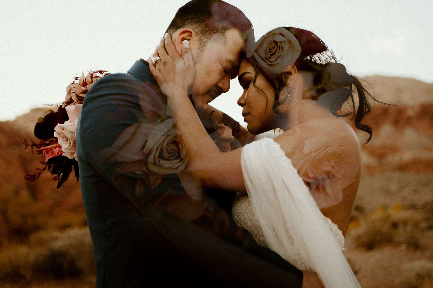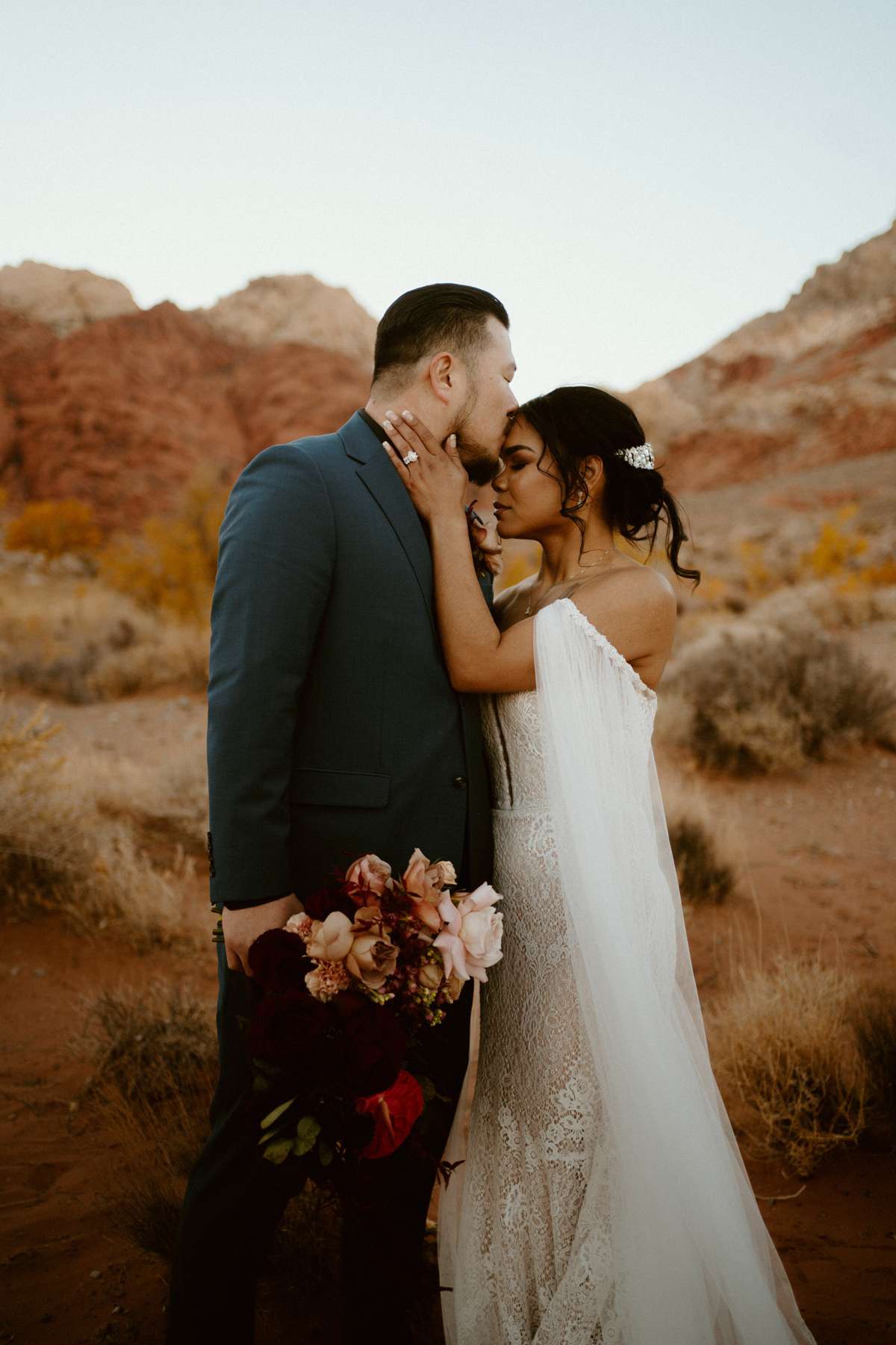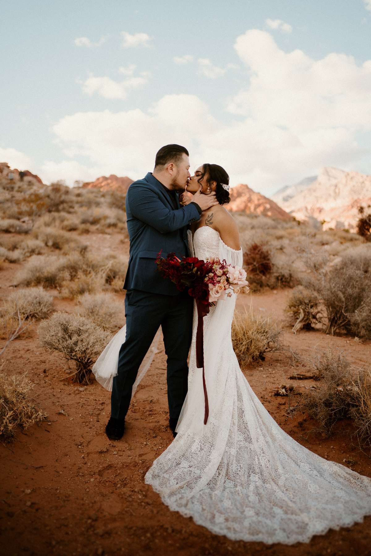 LaDawn and Jin exchanged vows in a micro wedding at Red Rock Canyon, Nevada, in November. Describing their wedding theme as a blend of romance, dreaminess and edginess, their day was simple but they really let their personalities shine. With intentional choices and meaningful elements, their wedding was a true reflection of who they are.