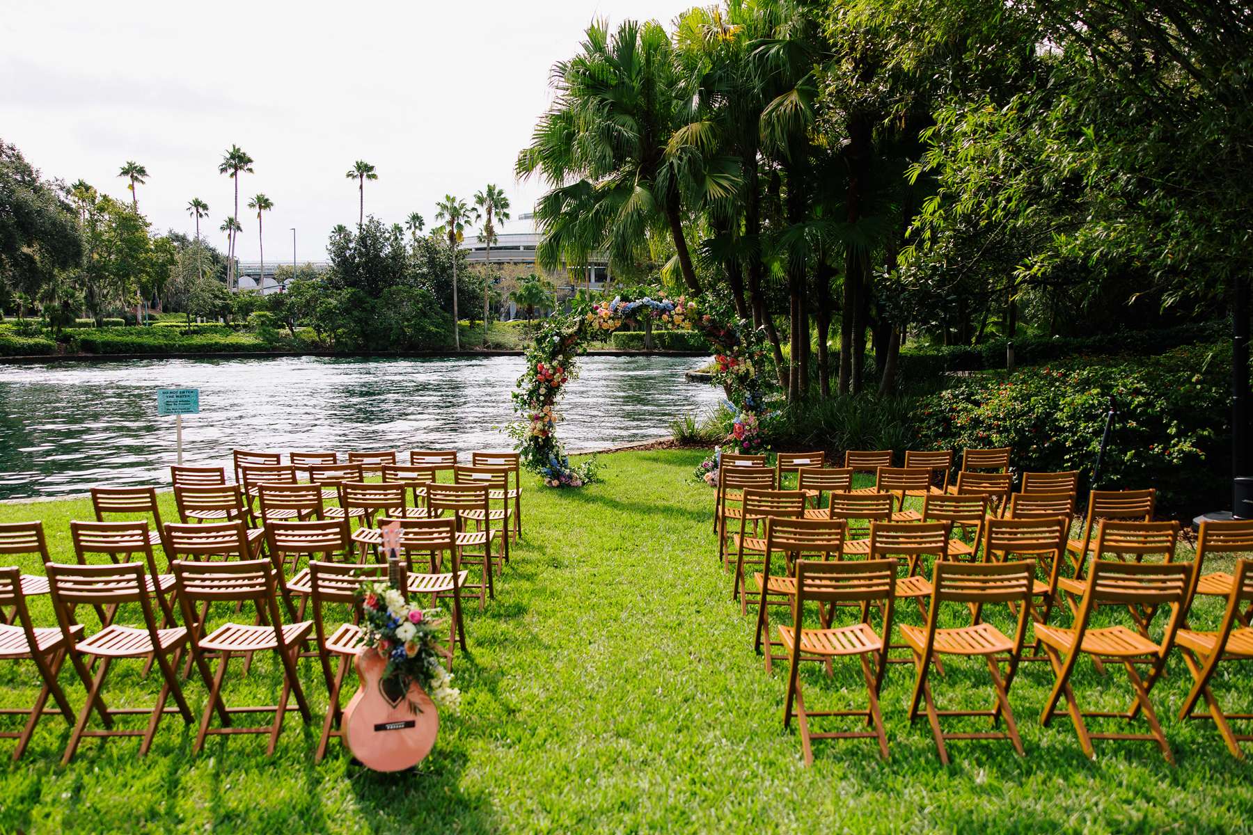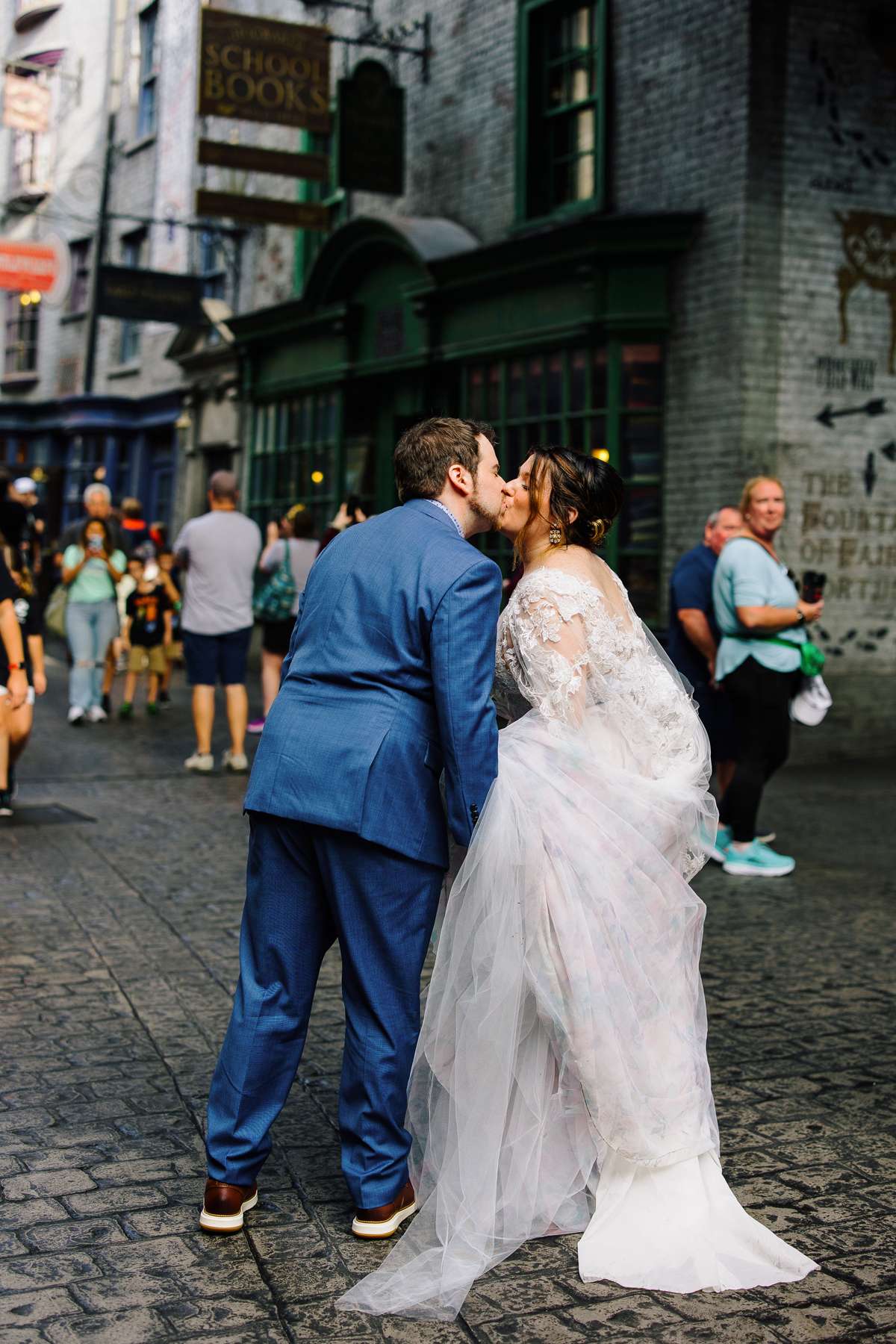 Jess and Chris wanted to play homage to the iconic Woodstock era, in their Orlando wedding. Their venue, the Hard Rock Hotel, set the perfect back drop and they also added some very ‘them’ geekery to the proceedings by doing photos at The Wizarding World of Harry Potter at Universal Studios.