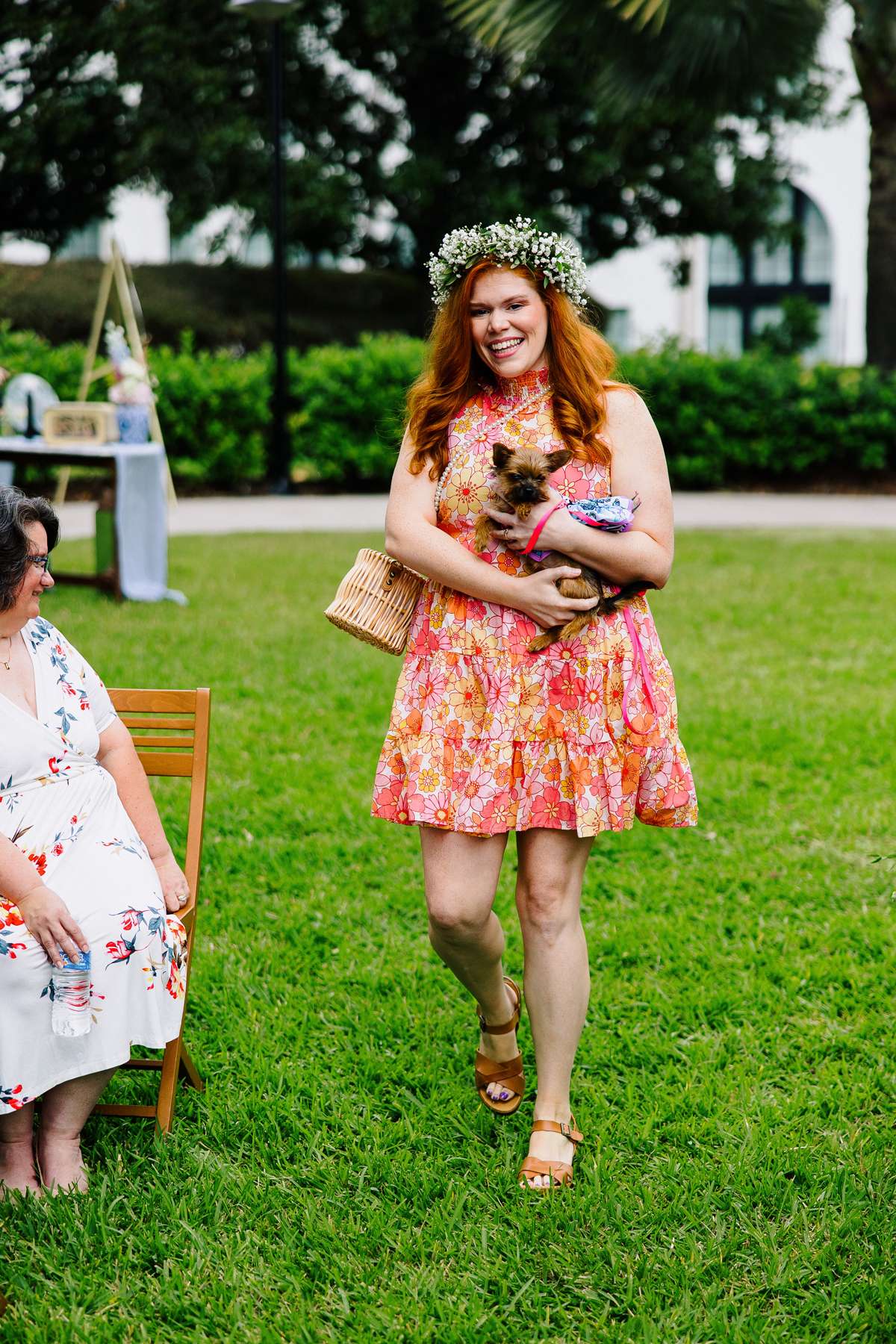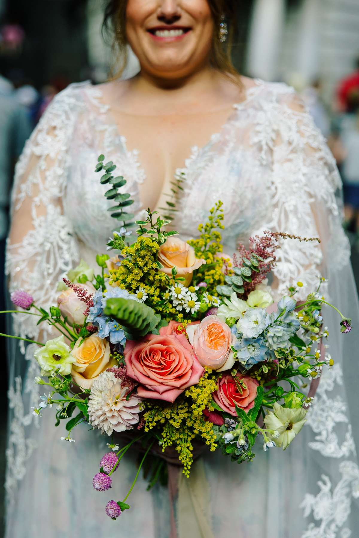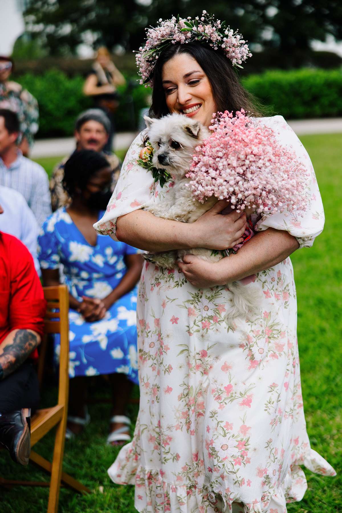 “Our ceremony went viral,” Jess continued. “Our officiant gave everyone one minute to have their phones out and take photos of us before the ceremony got started, we posed in different ways, and she ended by telling them to ‘Put their shit away!’ it was perfect, and no one had their cameras or phones out for the rest of the ceremony.”