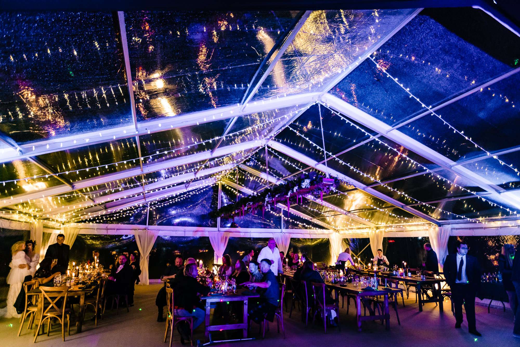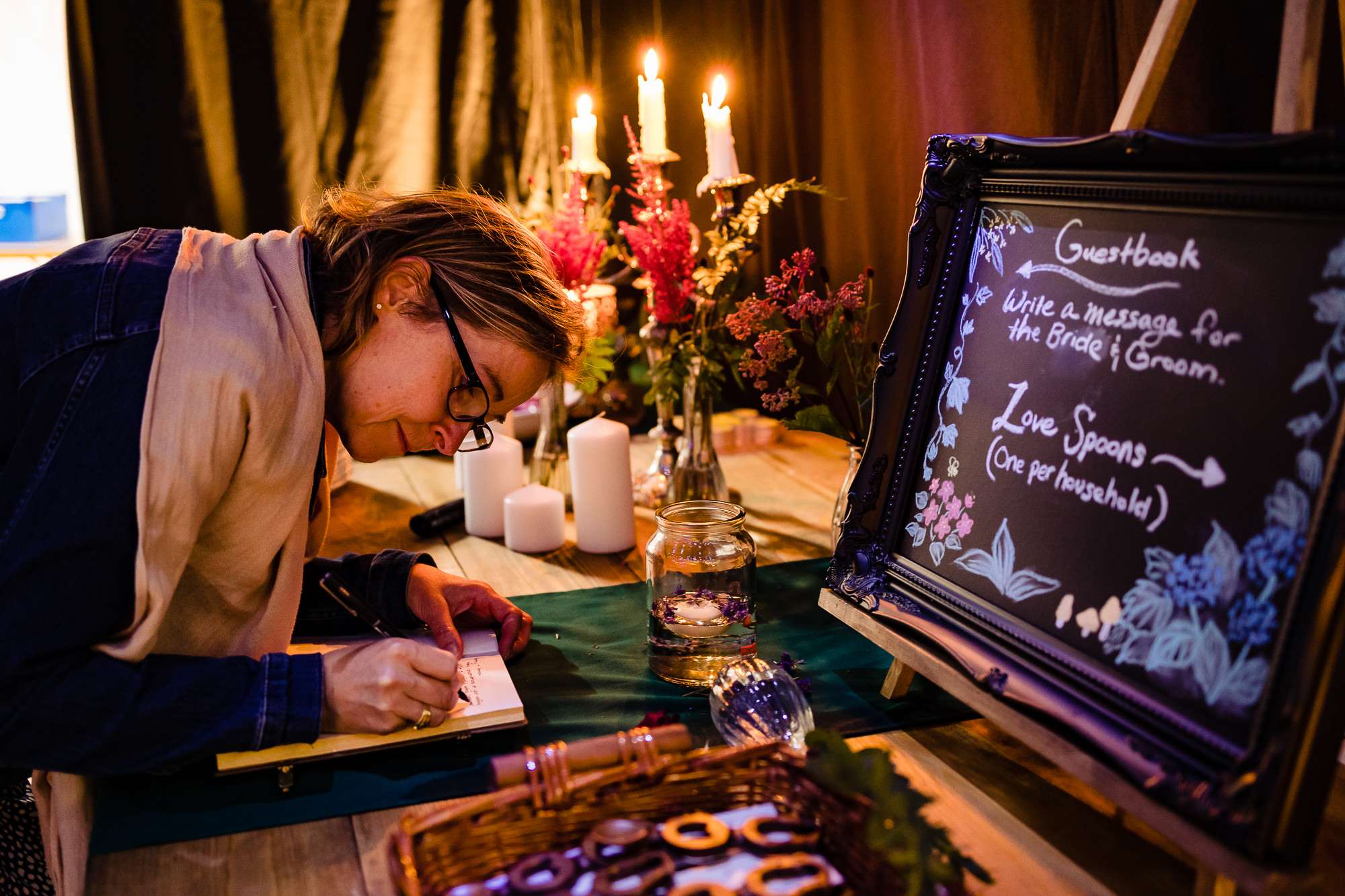 The reception took place in a candlelit marquee. They chose a clear topped one so they could see the night sky above them. Welsh folk band, Bragod, played and they served traditional dishes like lob scouse, roasted meats and poached pears. As the night progressed, the dance floor came alive with a mix of goth music curated by the bride and maid of honour. Henry and Hannah’s first dance to the acoustic rendition of Surrender by Eivør.