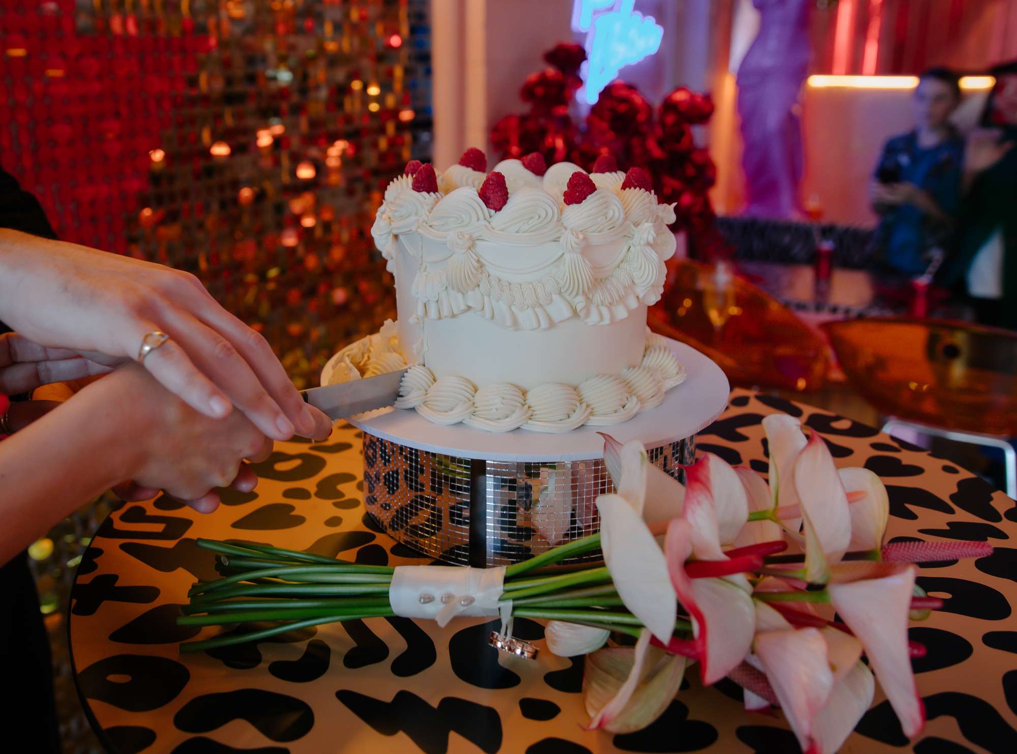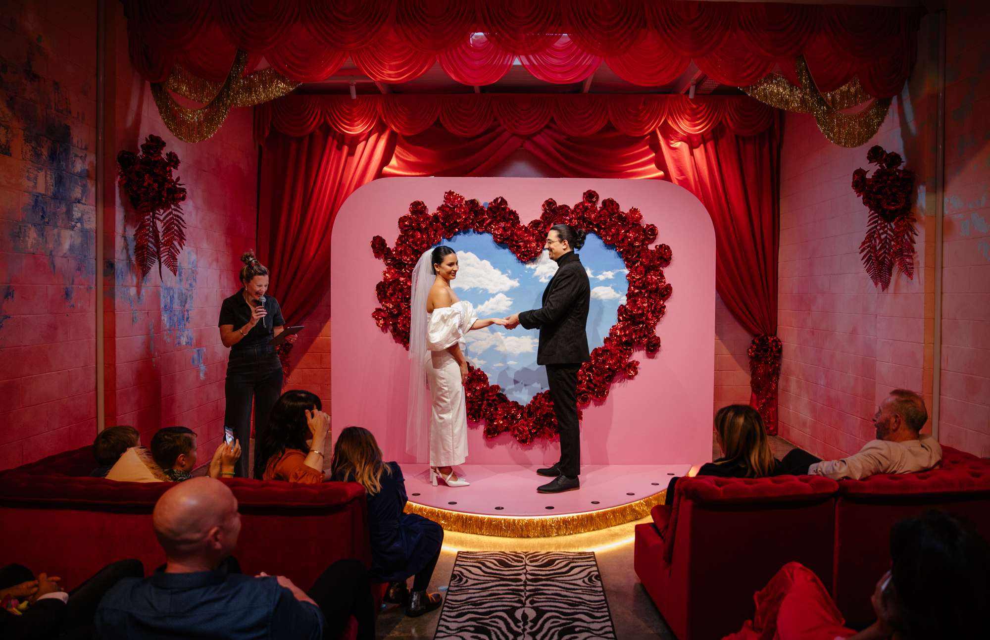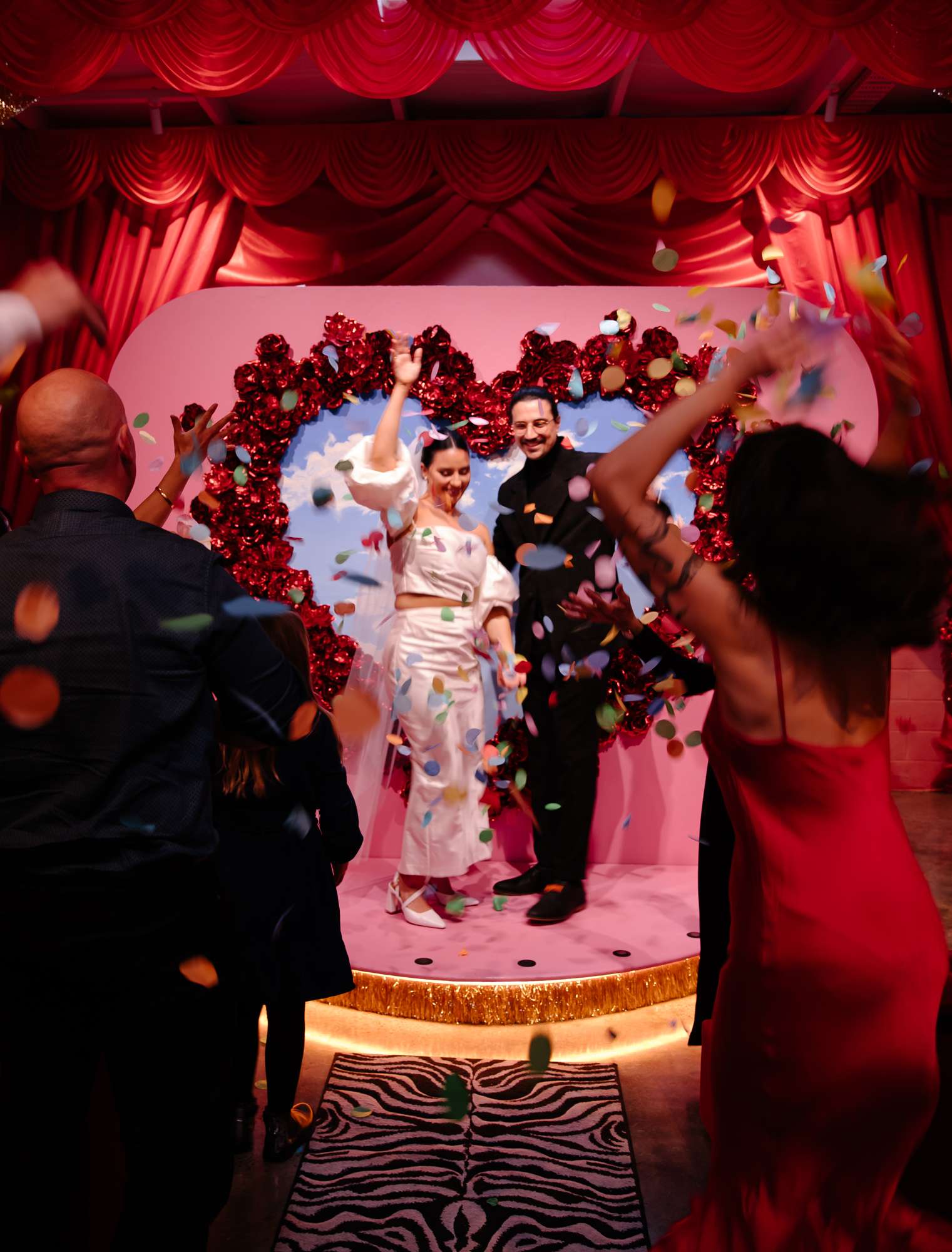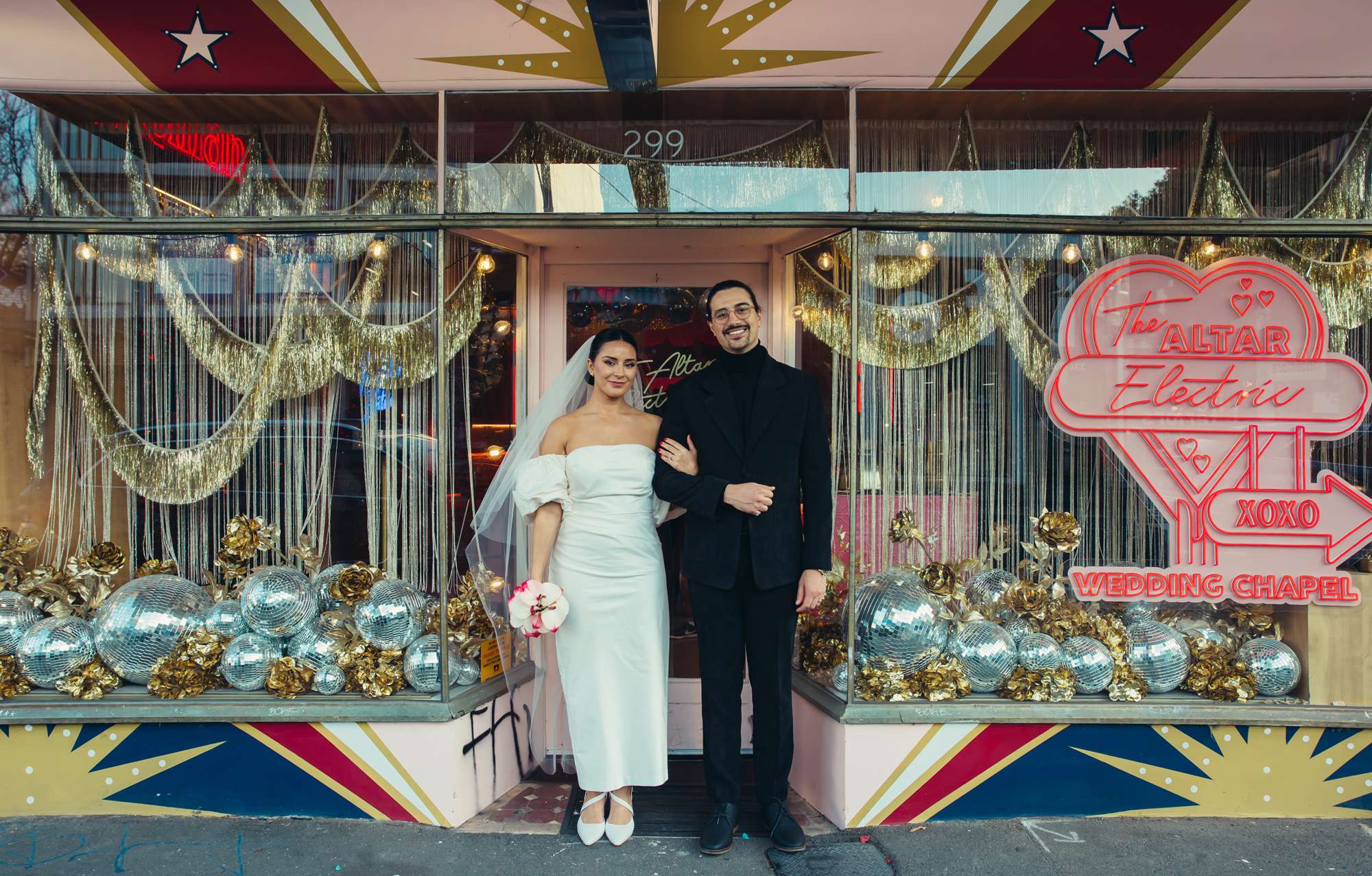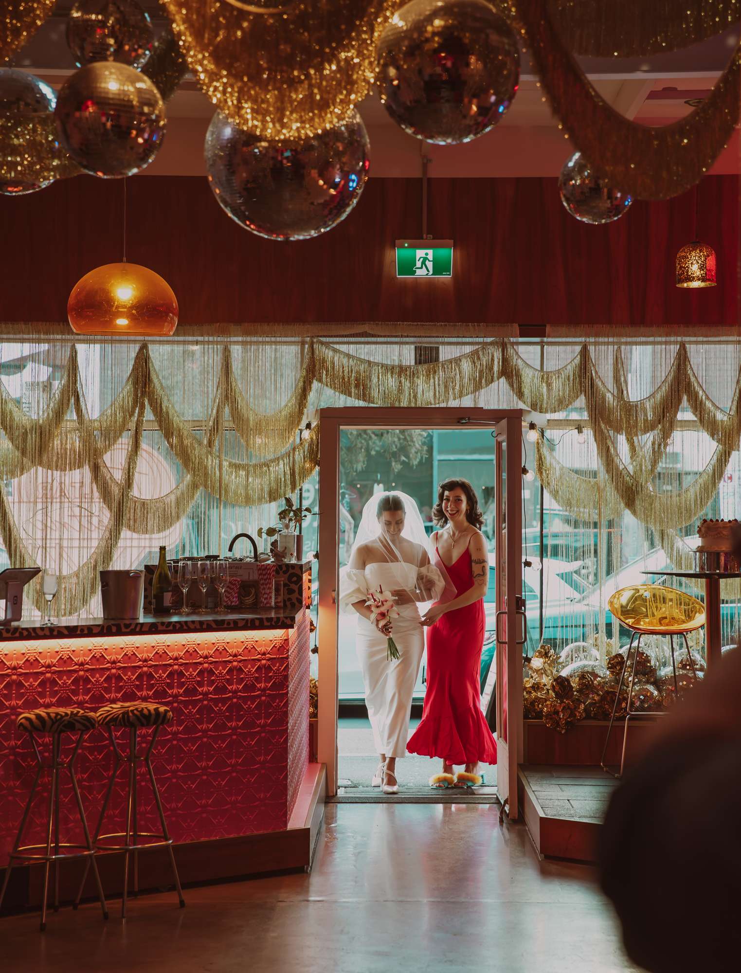 “I have always been obsessed with Moulin Rouge since I was a kid, I would make up dances (not really knowing what any of the lyrics meant)”, Elisha told us. “I always knew there was something magical about Baz Luhrmann’s vision, from the costumes to the colour schemes in the last closing scene to Come What May. Baz has always had a flair for making you fall in love with love! When I saw The Alter Electric I instantly knew that was our venue. I would say it was if Baz decided he wanted to design a wedding chapel as a side hustle, The Altar Electric would be it!”