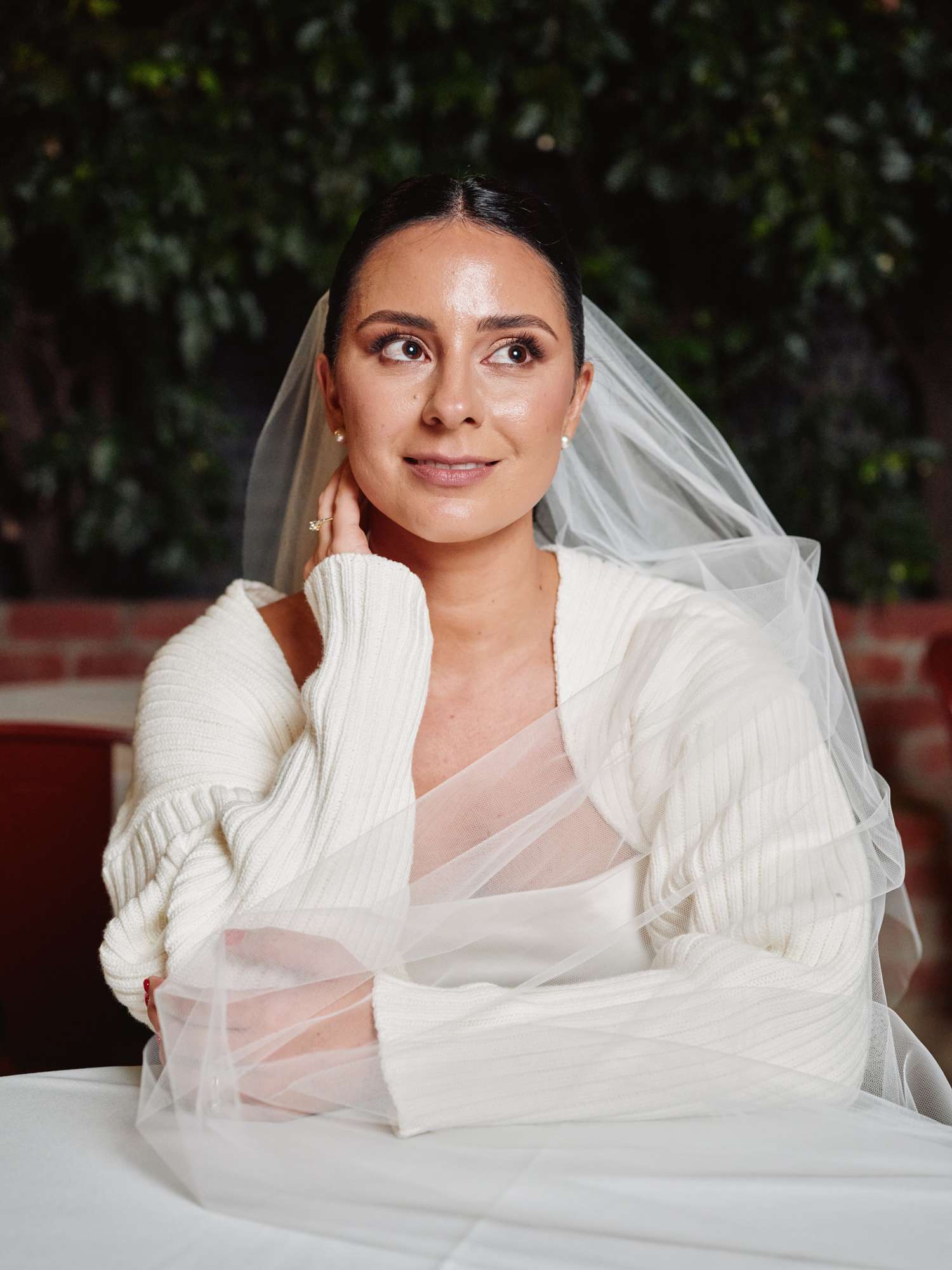 “My second appointment was Honeymoon Studio. Andrea greeted me with a warm smile and offered us a champers. Her question to me was not what my budget was but what my vision was. I loved every option that I tried on that it was really hard to decide what look I wanted because they were all stunning. I decided to go with the two piece setting with the detachable sleeves. Which was perfect because it essentially gave me two looks for both the ceremony and the reception, so in a way I saved money on a whole outfit!”