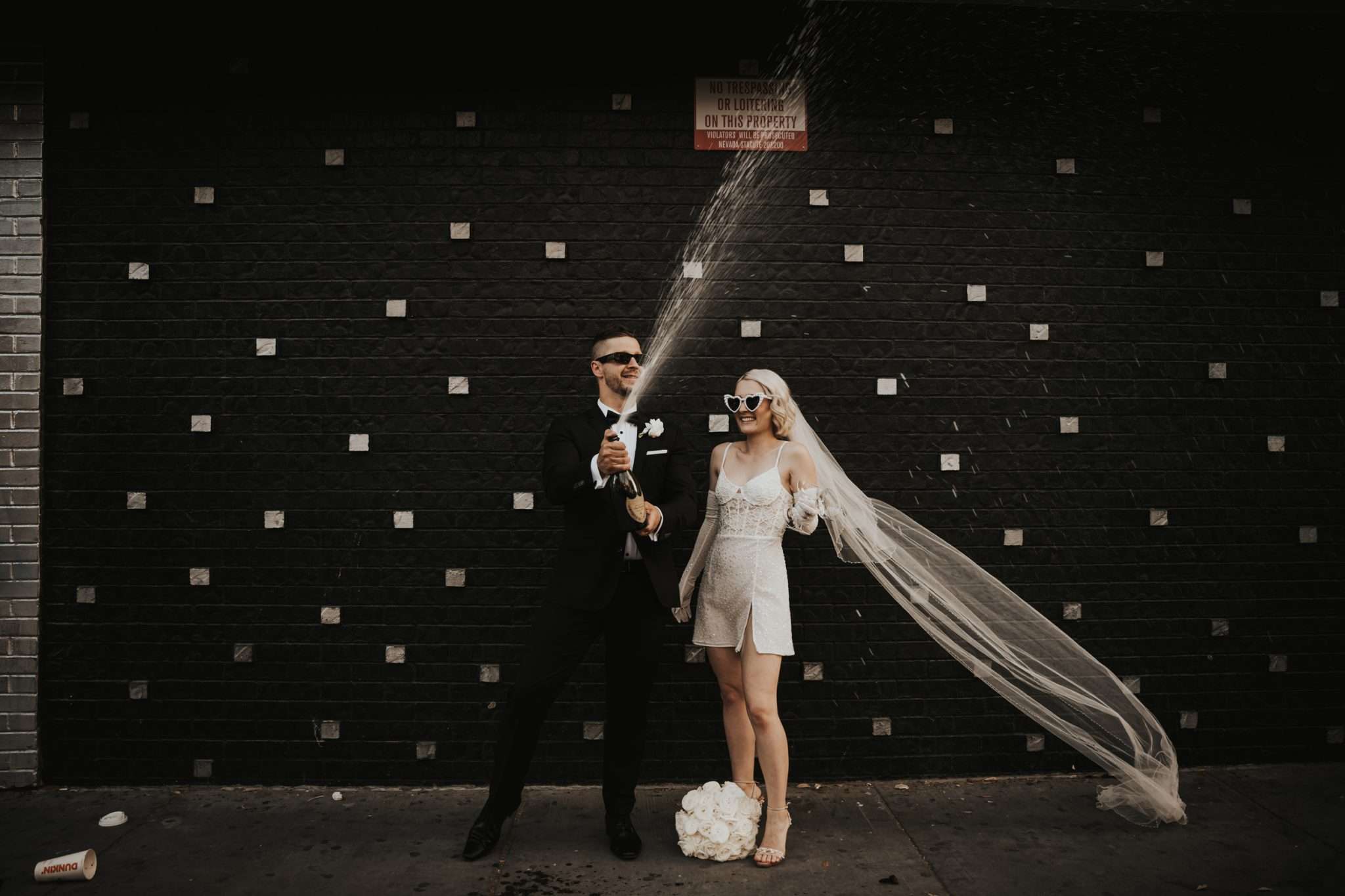 Jake and Miki, from Geelong, Australia, decided to ditch the traditional Australian wedding scene and head to the bright lights of Vegas instead. They wanted an intimate day with a black-tie feel and, of course, a Vegas twist.