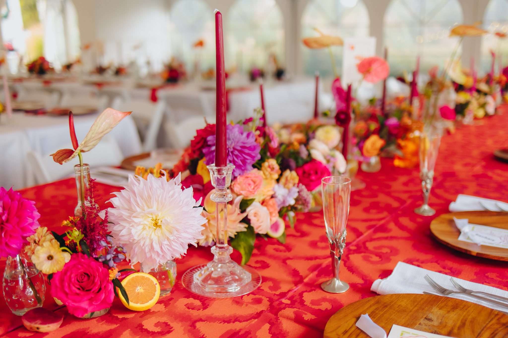From the beginning, Sara and Zac prioritised what made them happy. Bold hues of pink and orange dominated the decor, accented with green, gold, and silver. They skipped many traditional elements in favour of playful details such as having a McDonalds delivery of a late night Happy Meal for everyone! Heavily inspired by the 70s aesthetic, they also incorporated decor such as the welcome marquee with a fun play on words, library book check-out bar menus, vintage-style matchbook favours and disposable cameras for their guests to capture the fun.
