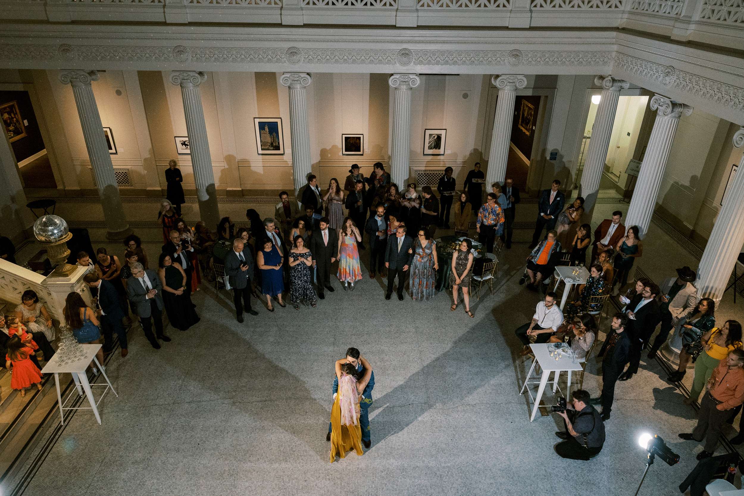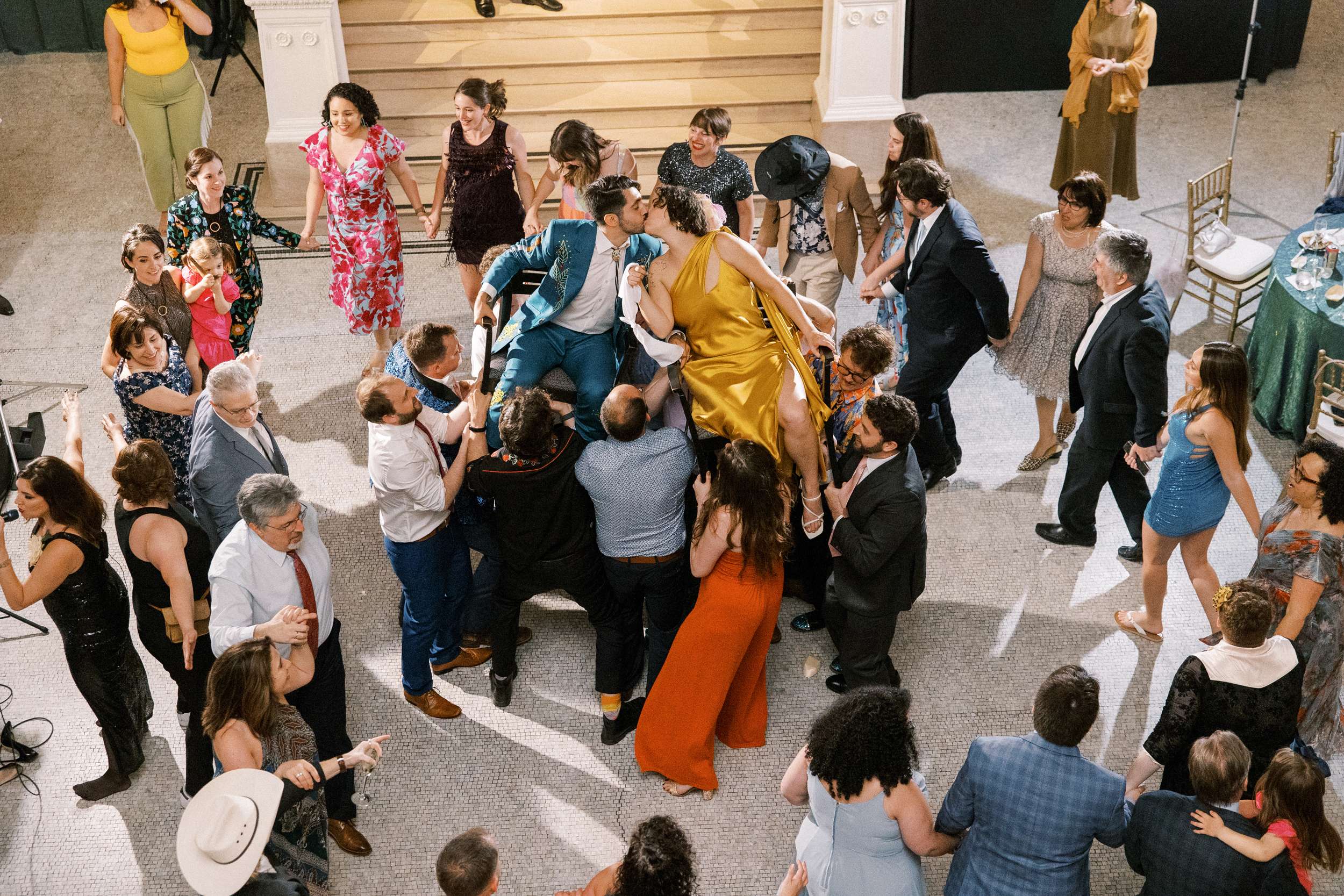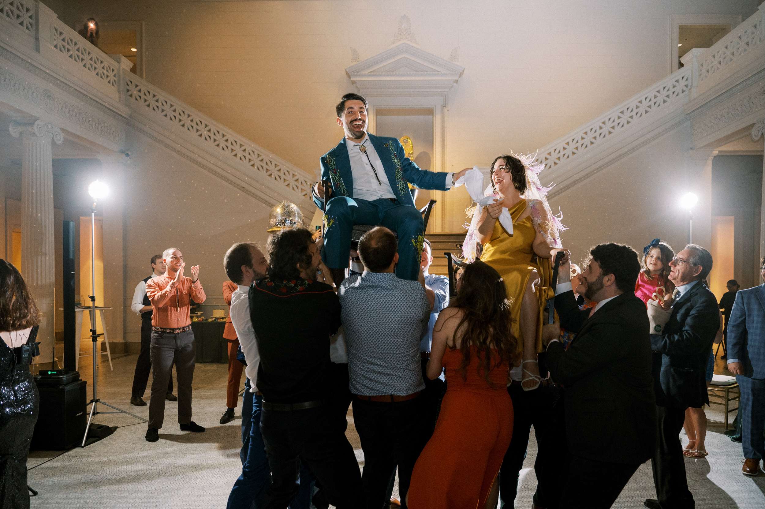 The reception inside the museum was set among works by Nick Cave and El Greco. Guests dined on a mix of traditional New Orleans dishes and the couple’s personal favourites, while a jazz band filled the space with the city’s signature sounds. The hora, a real highlight of the night, brought their community together both literally and figuratively as friends and family hoisted them into the air.