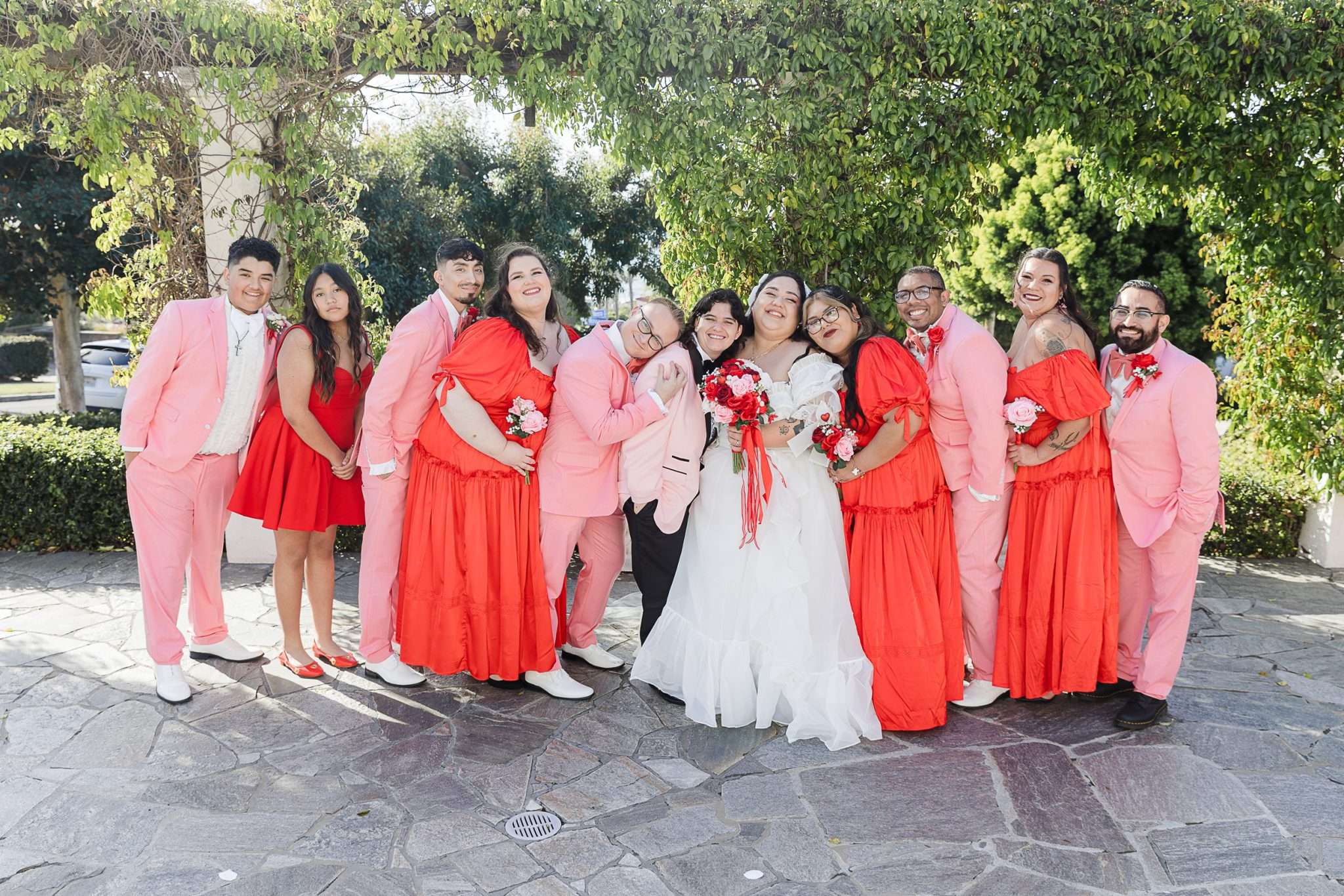 The couple took a relaxed approach to wedding planning and focused on joy, playfulness and visibility. “We didn’t get caught up with too many specifics and rules and traditions,” they explained. “We kept it fun and campy and intimate.” That freedom helped them push back against the negativity they’ve experienced around their relationship. “In these dark times, we loved to show the light of a queer relationship, many people including our own family not seeing our love as real or seeing it as something evil. We just wanted to get the point across that love is love no matter how unconventional others may find it.”