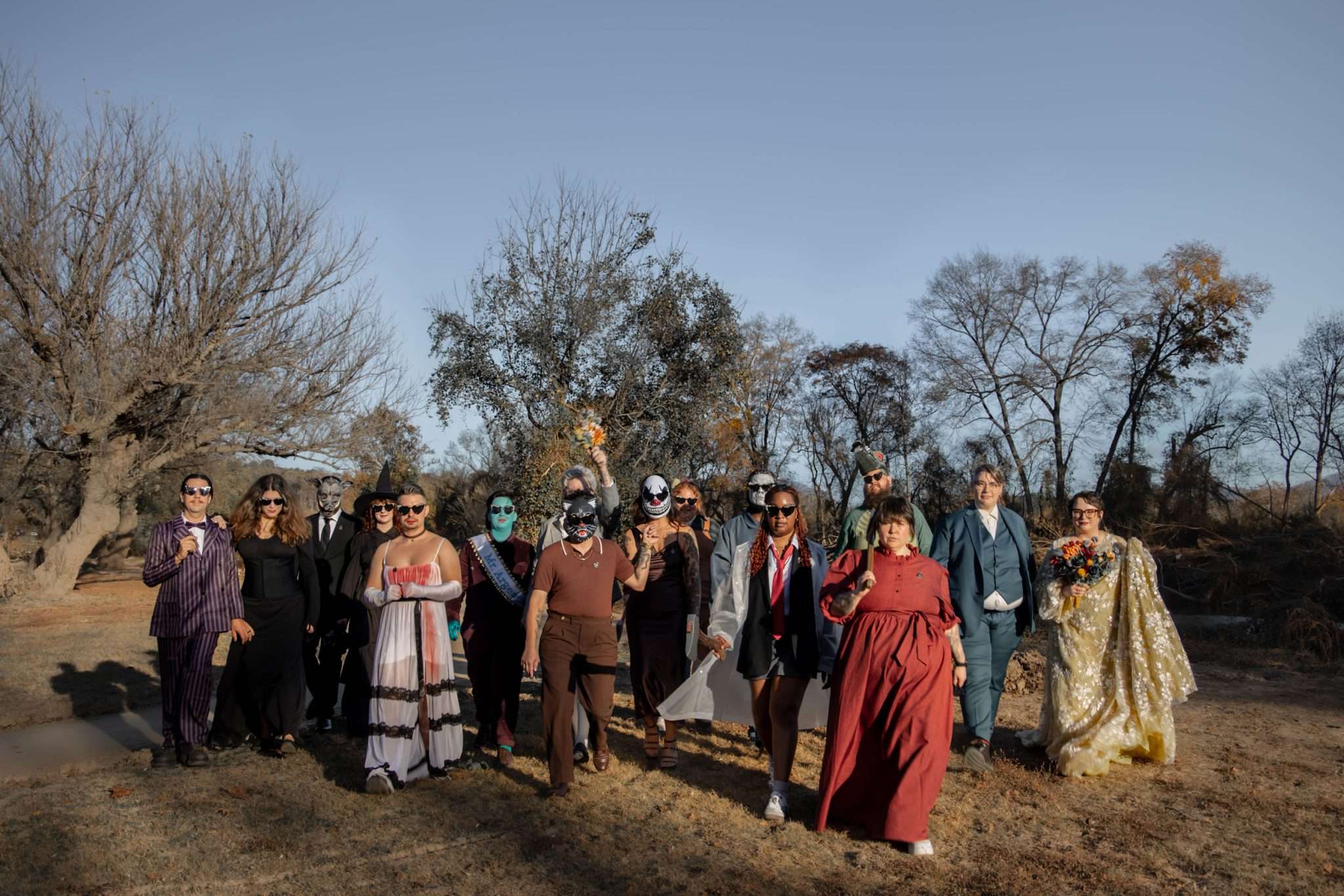 They describe the theme as retro, moody, and a little kitschy, the neurodivergent couple mixed Art Deco influences with classic horror references. Guests were encouraged to dress as their favourite horror characters, replacing formalwear with costumes.