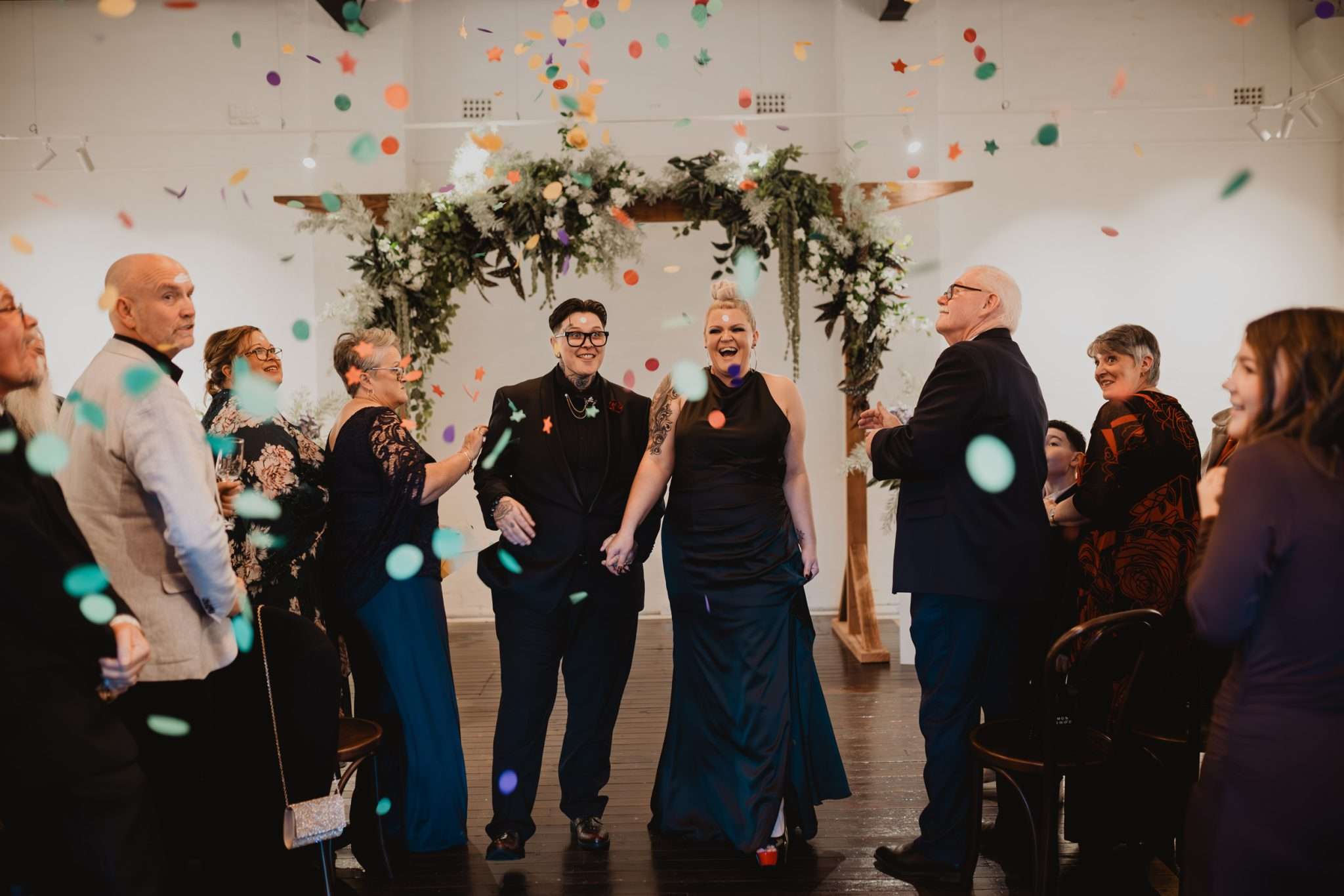 Jodie and Billy’s wedding wasn’t their first. Back in 2011, before same-sex marriage was legal in Australia, they held a commitment ceremony. They tried to make it traditional, but later realised most of it hadn’t felt right. After eight years apart to figure out who they both were, they reconnected and wanted to marry again – this time with the same rights as straight couples. They were also really clear on what they did and did not want from a wedding.