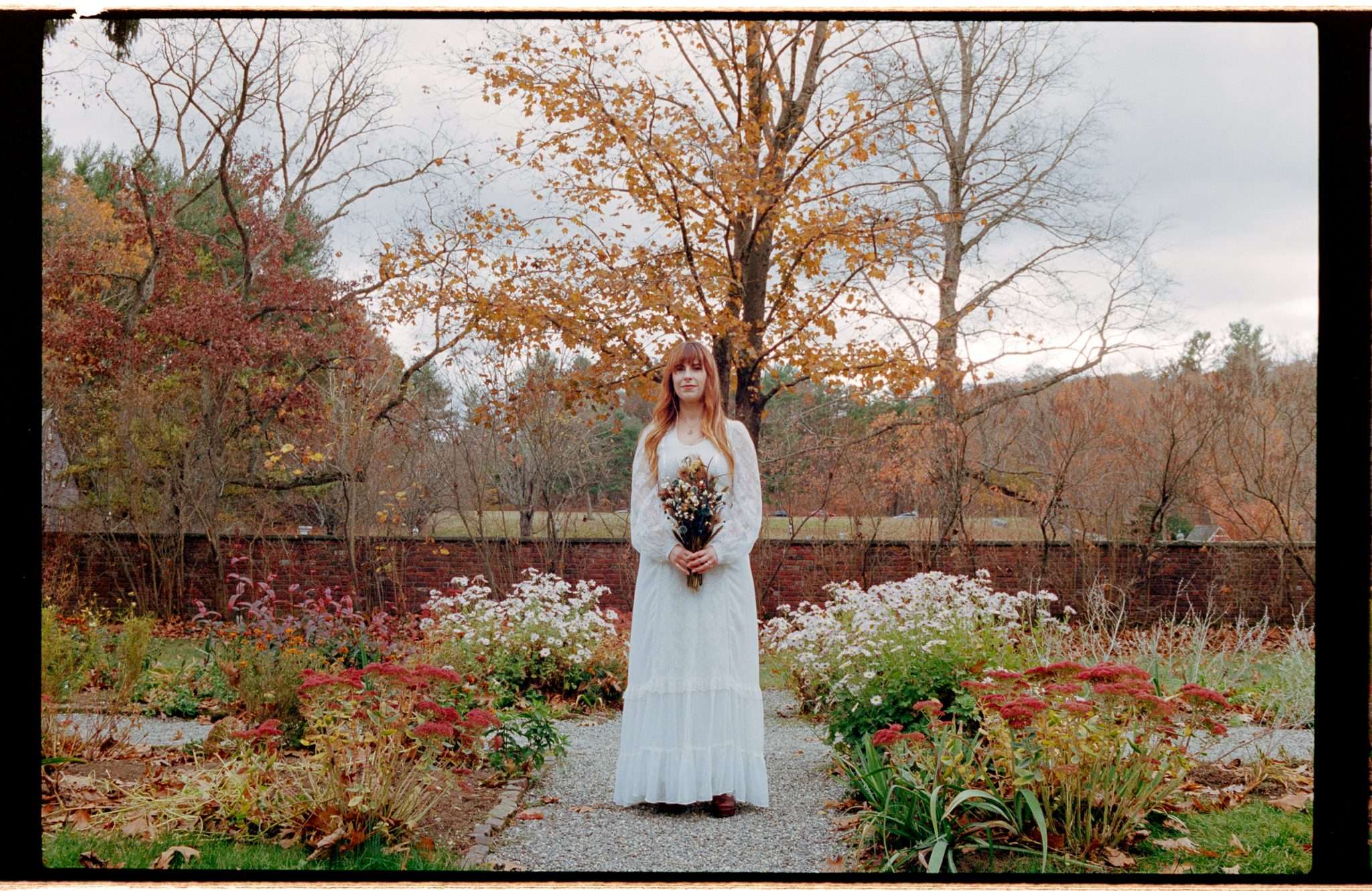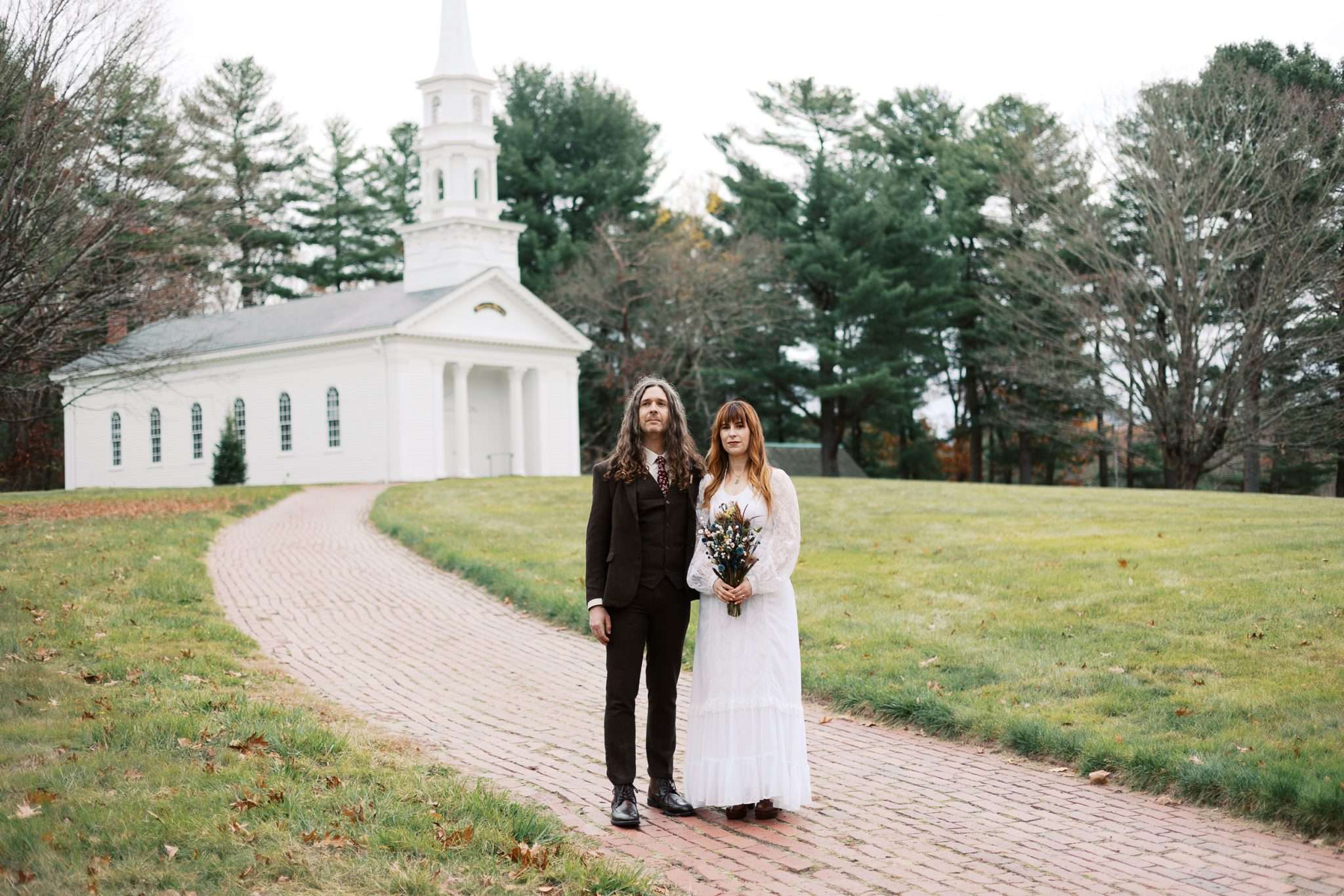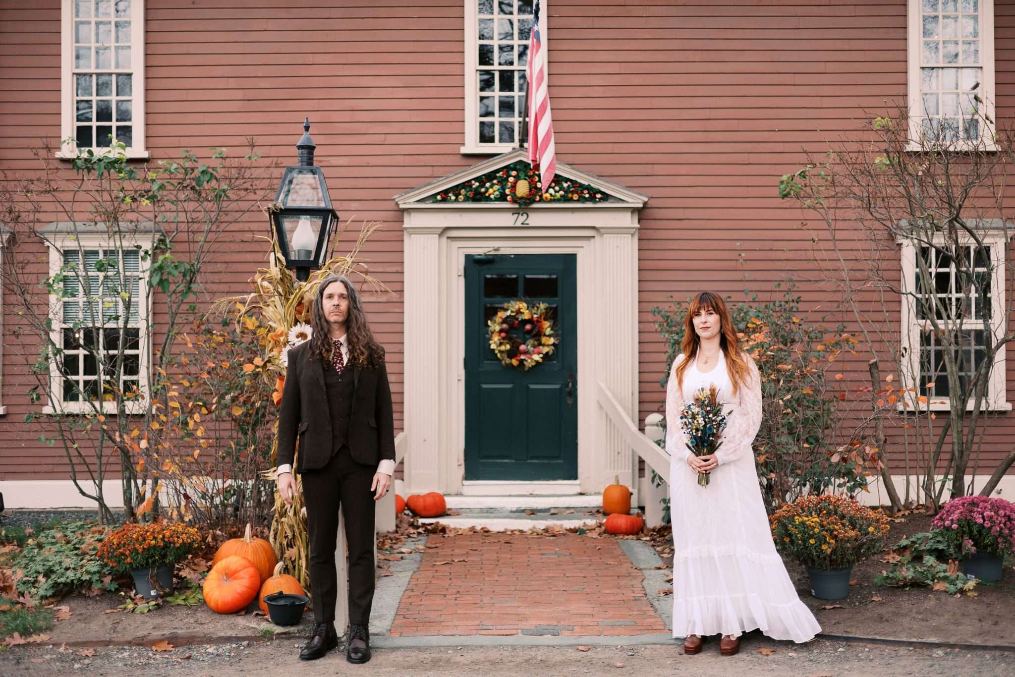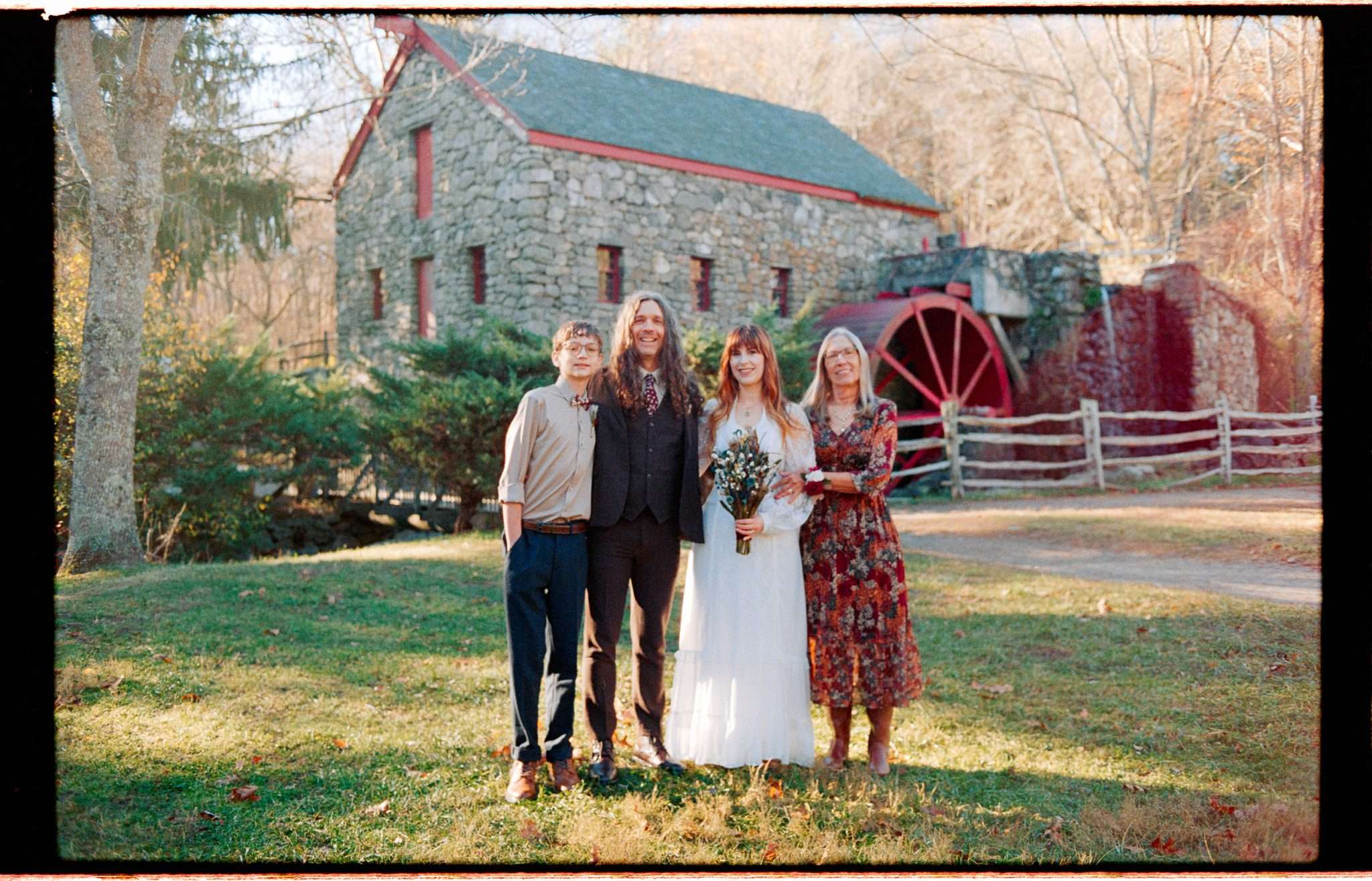 Helena and Josh didn’t want a big wedding and they didn’t want a church. What they did want was fog, foliage, and something that felt a little haunted. They landed on a plan that involved flying to New England with only two guests – Helena’s mother and Josh’s son Dexter – and getting married in front of an old water mill, just after Halloween, wearing outfits that wouldn’t look out of place in a Hammer Horror film.