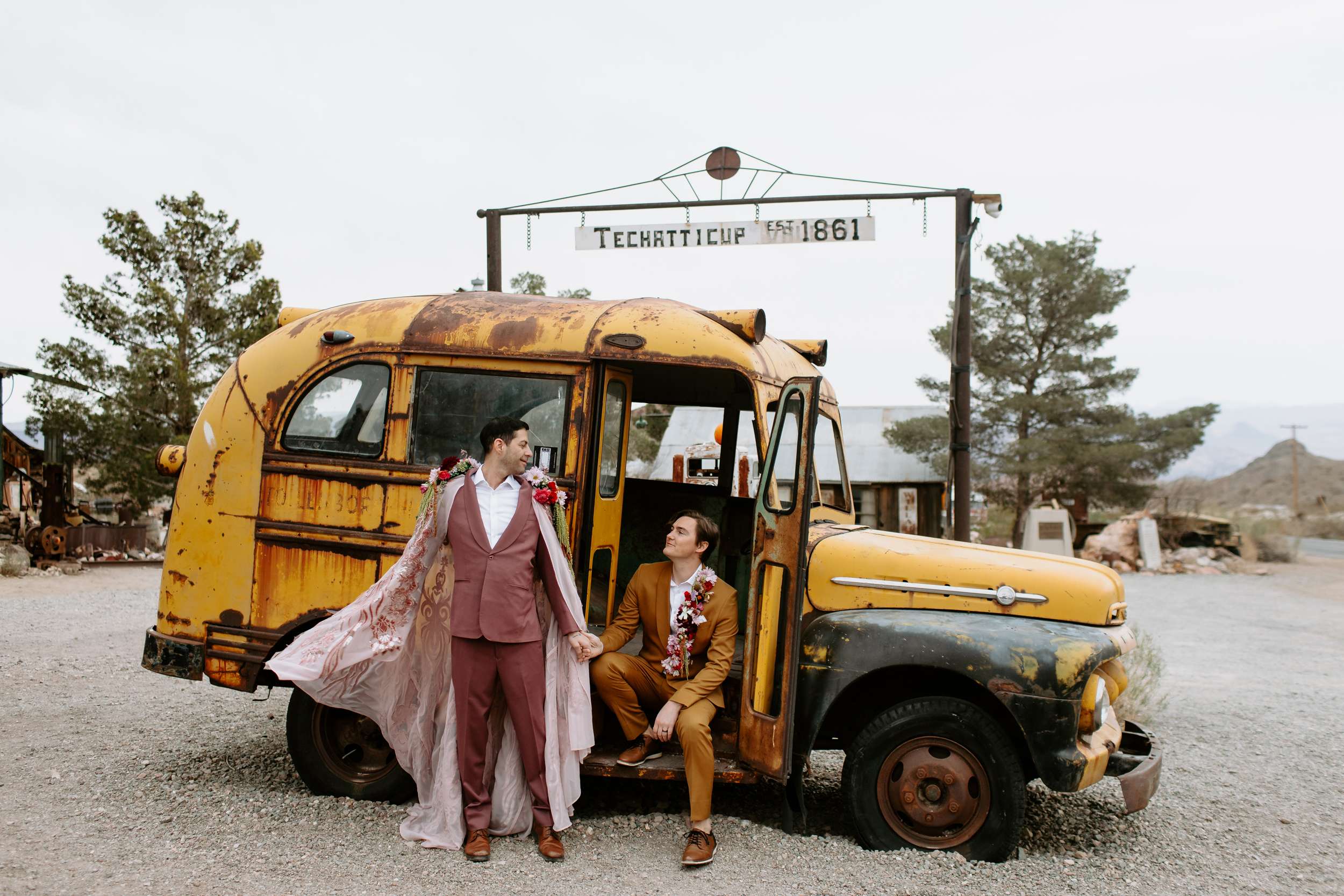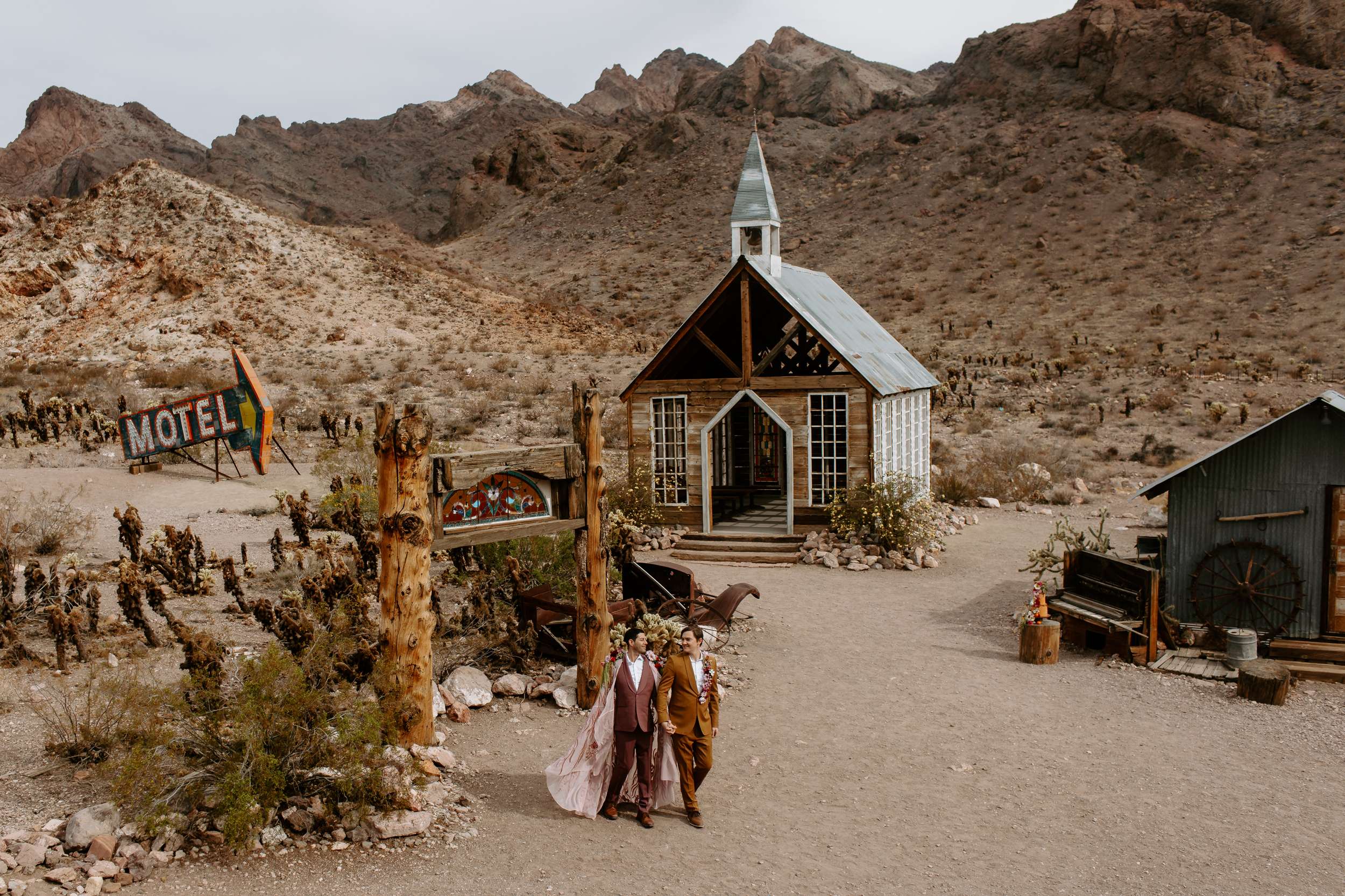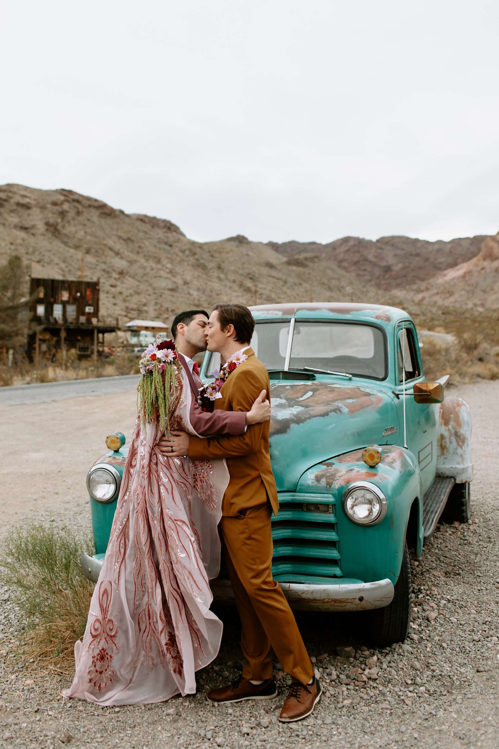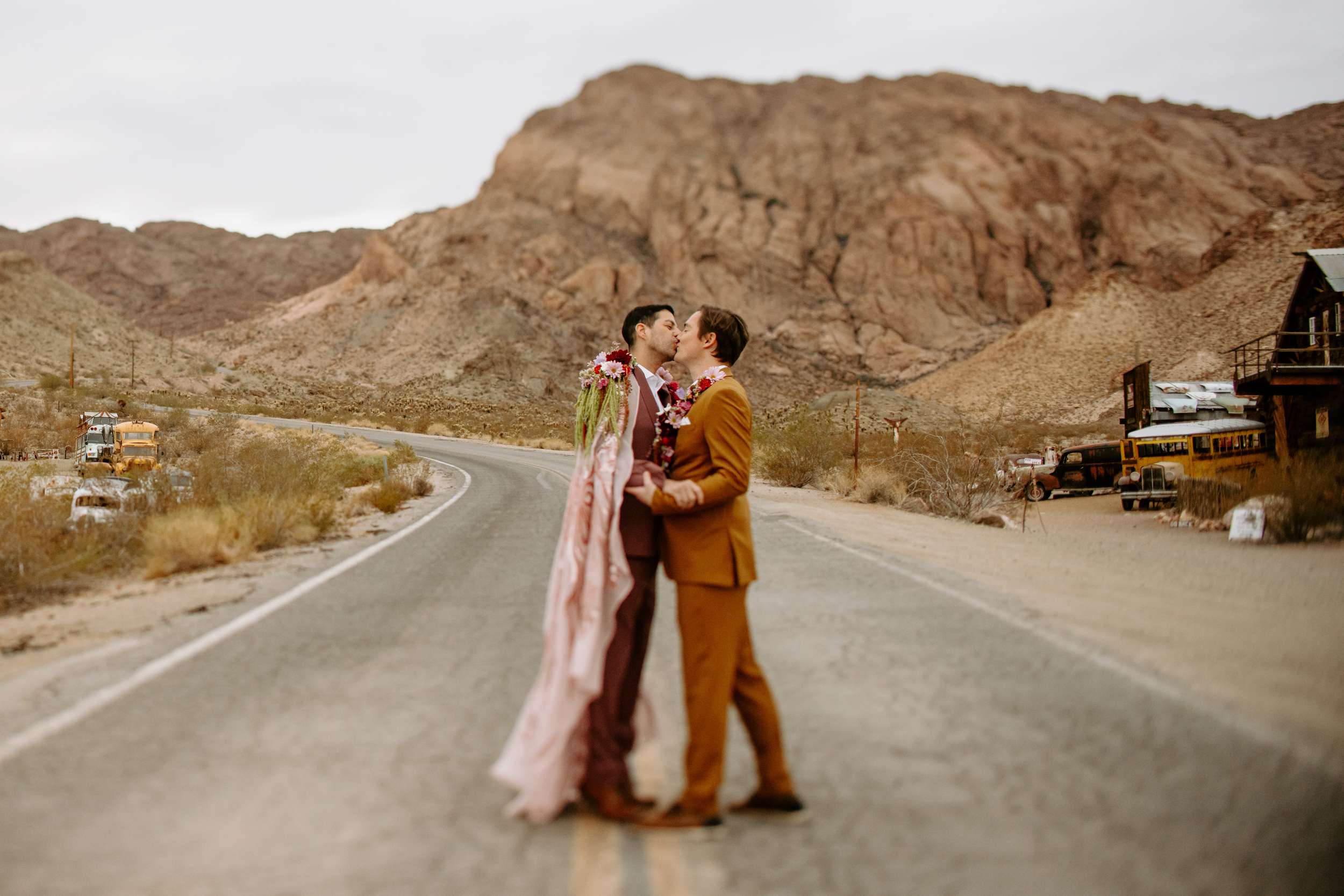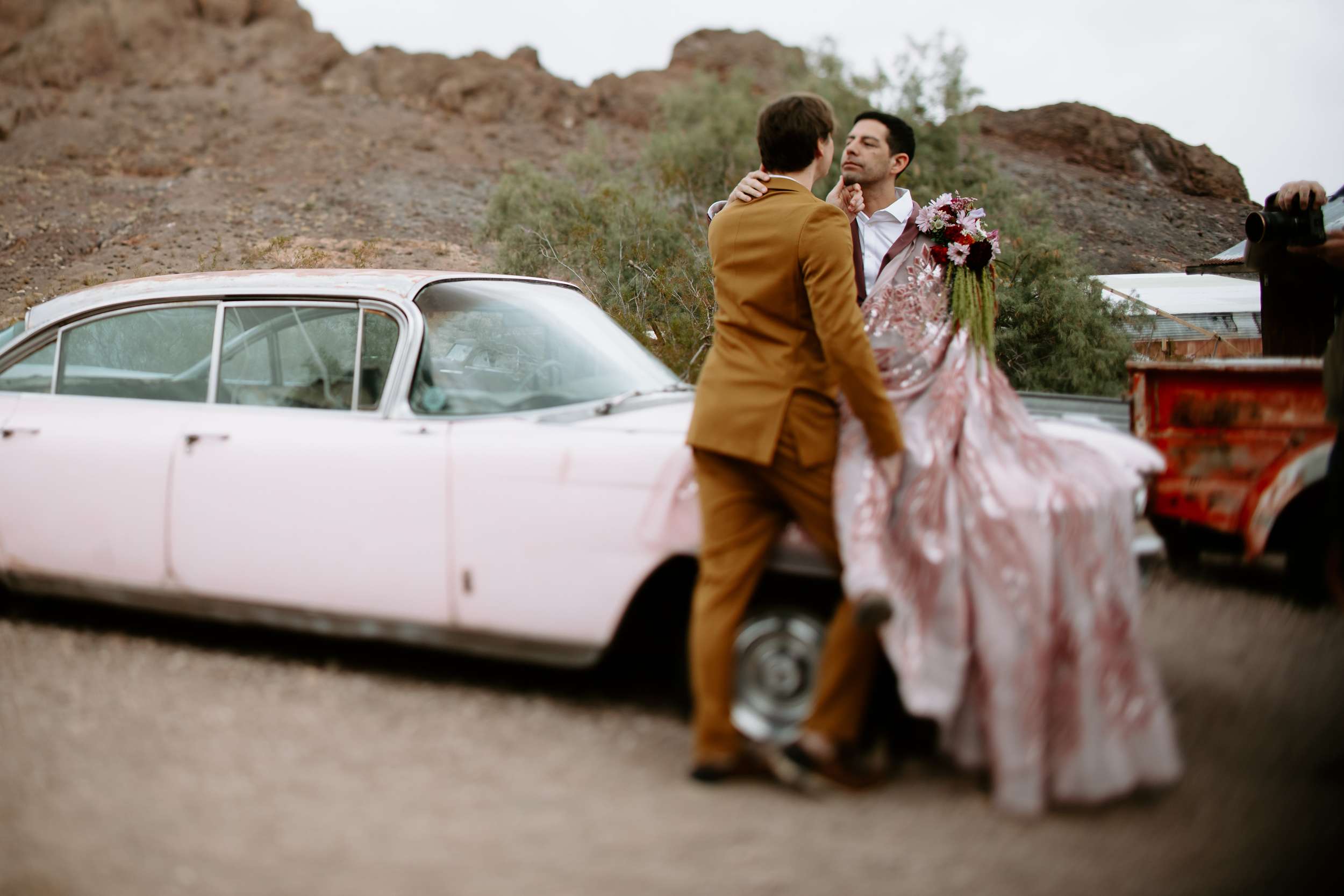 This shoot, organised The Capture Workshop, was all about blending vintage Vegas glam with raw desert beauty. while this wasn’t a real wedding, this shoot was designed to challenge expectations, especially around what men are ‘supposed’ to wear when they get married.