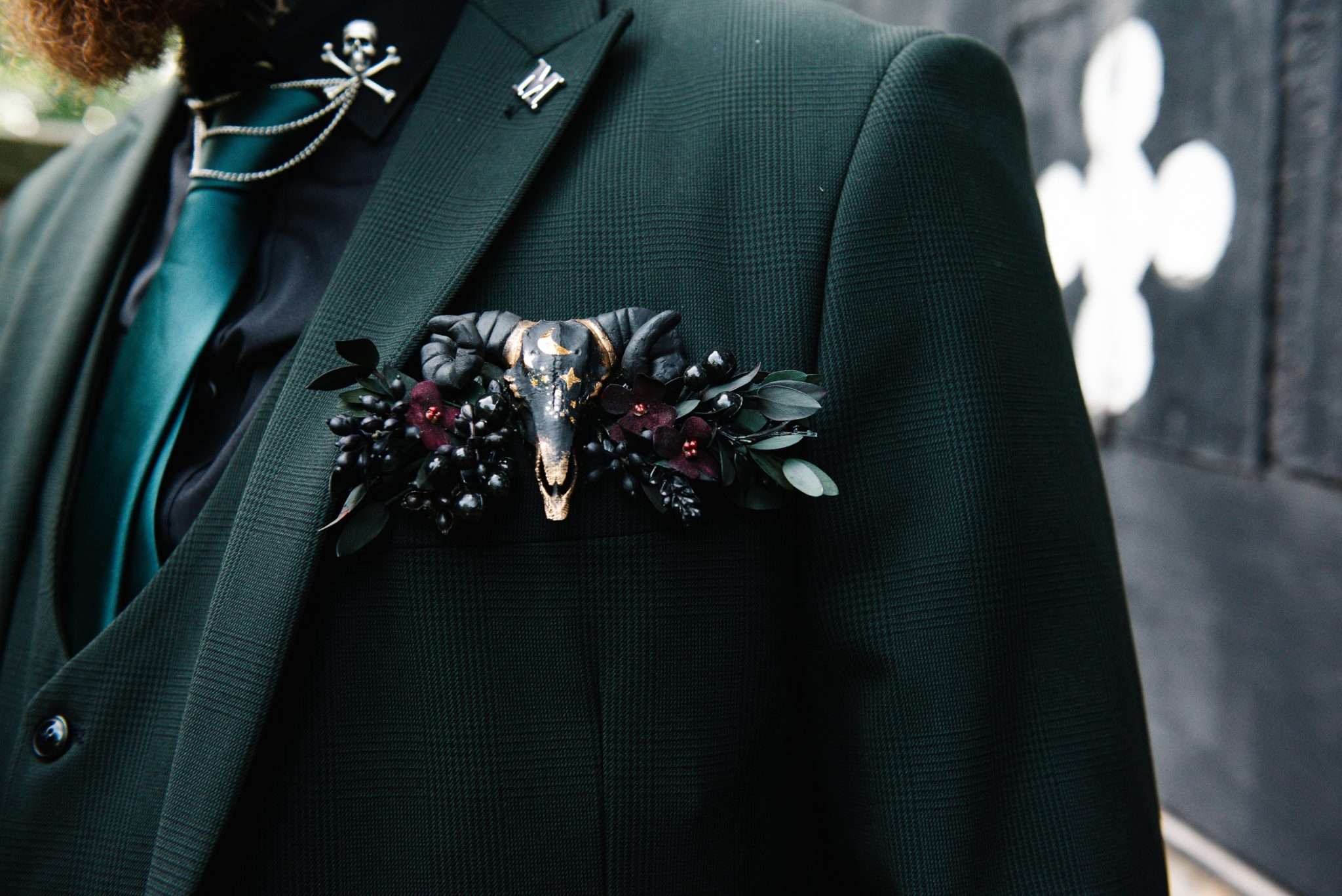 After a motorbike accident which nearly took the groom too soon, Mollie and Richard knew a ’til death do us part’ had to be the theme of their wedding. A mix of dark romance, symbolism, and personal meaning, their wedding took place on Friday 13th.