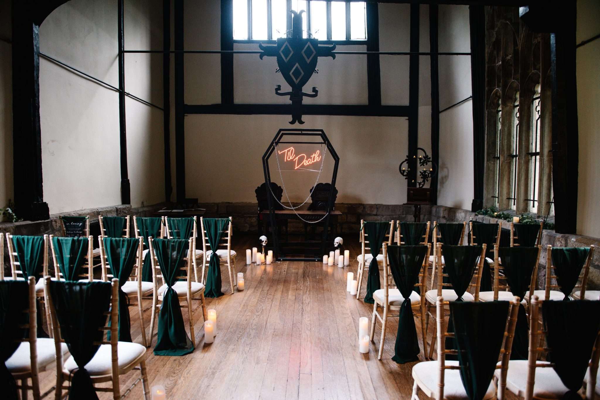 “It’s honestly a miracle he’s still here”, Mollie told us. “That experience gave real weight to the phrase ’til death do us part, and we knew we wanted our wedding to reflect both our story and our personalities. We’ve always had a love for tattoos and anything a little alternative – black is basically our shared wardrobe staple, so a traditional wedding just wouldn’t have felt like us. Friday the 13th played a big role too. There’s only one in 2025, and once we saw it landed on a Friday in June, we booked it instantly. It’s one of Richard’s favourite movies, and I’ve always been drawn to the superstitious side of things, so it felt perfectly meant to be.”