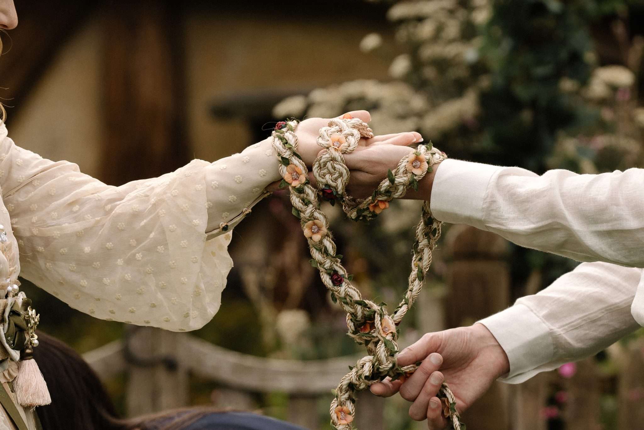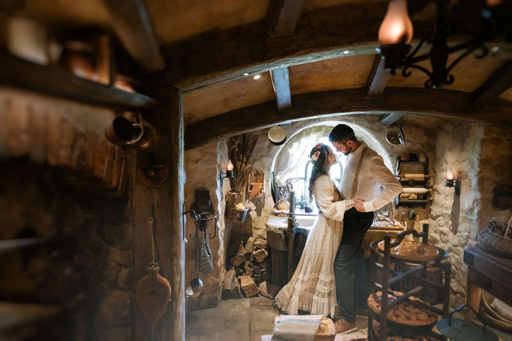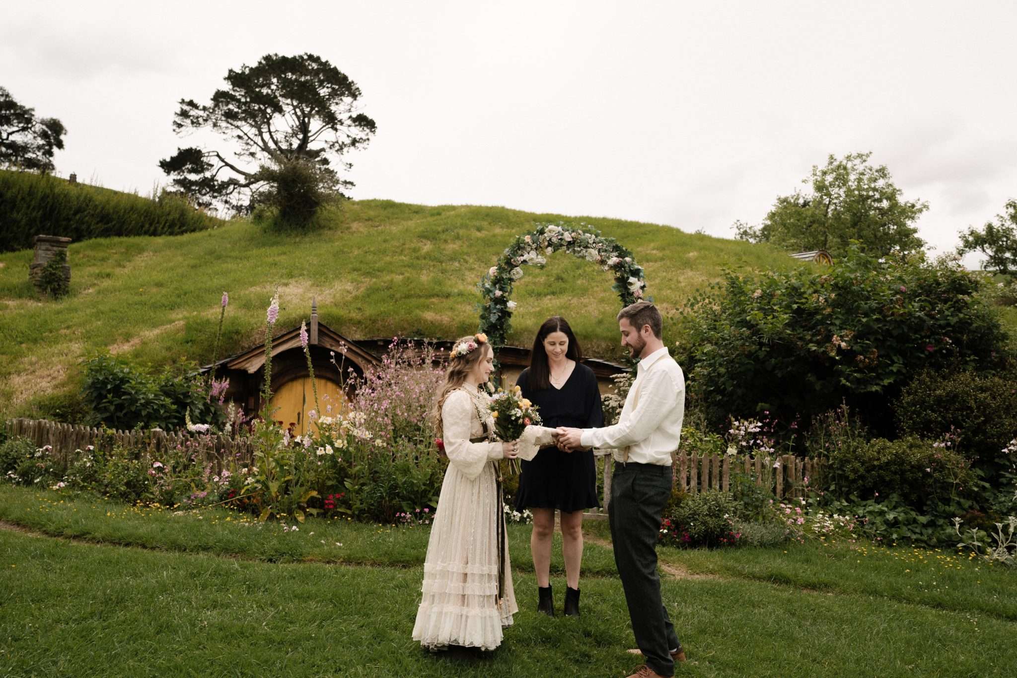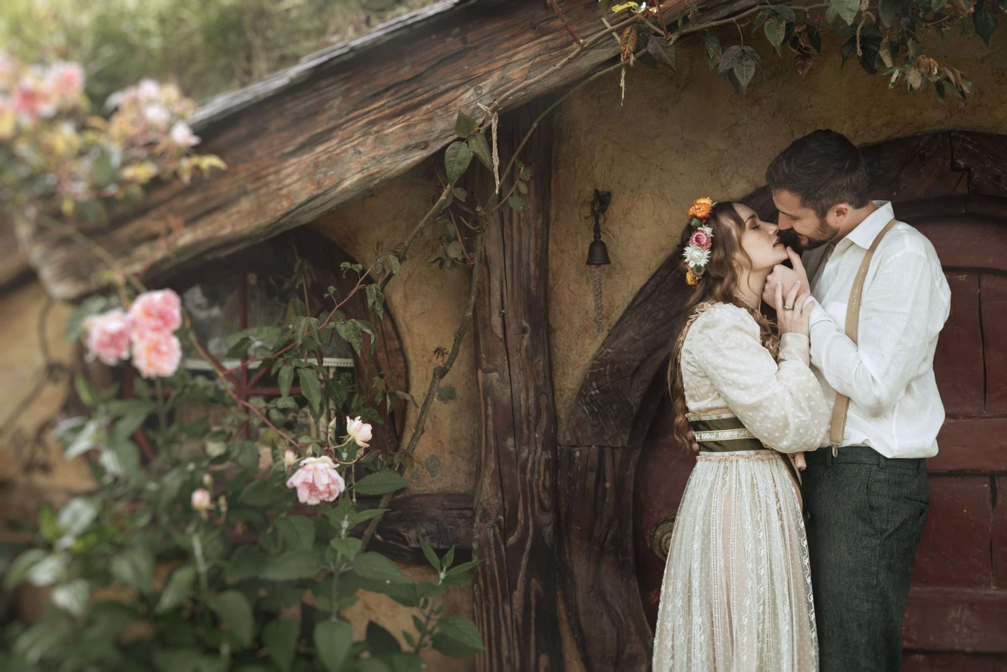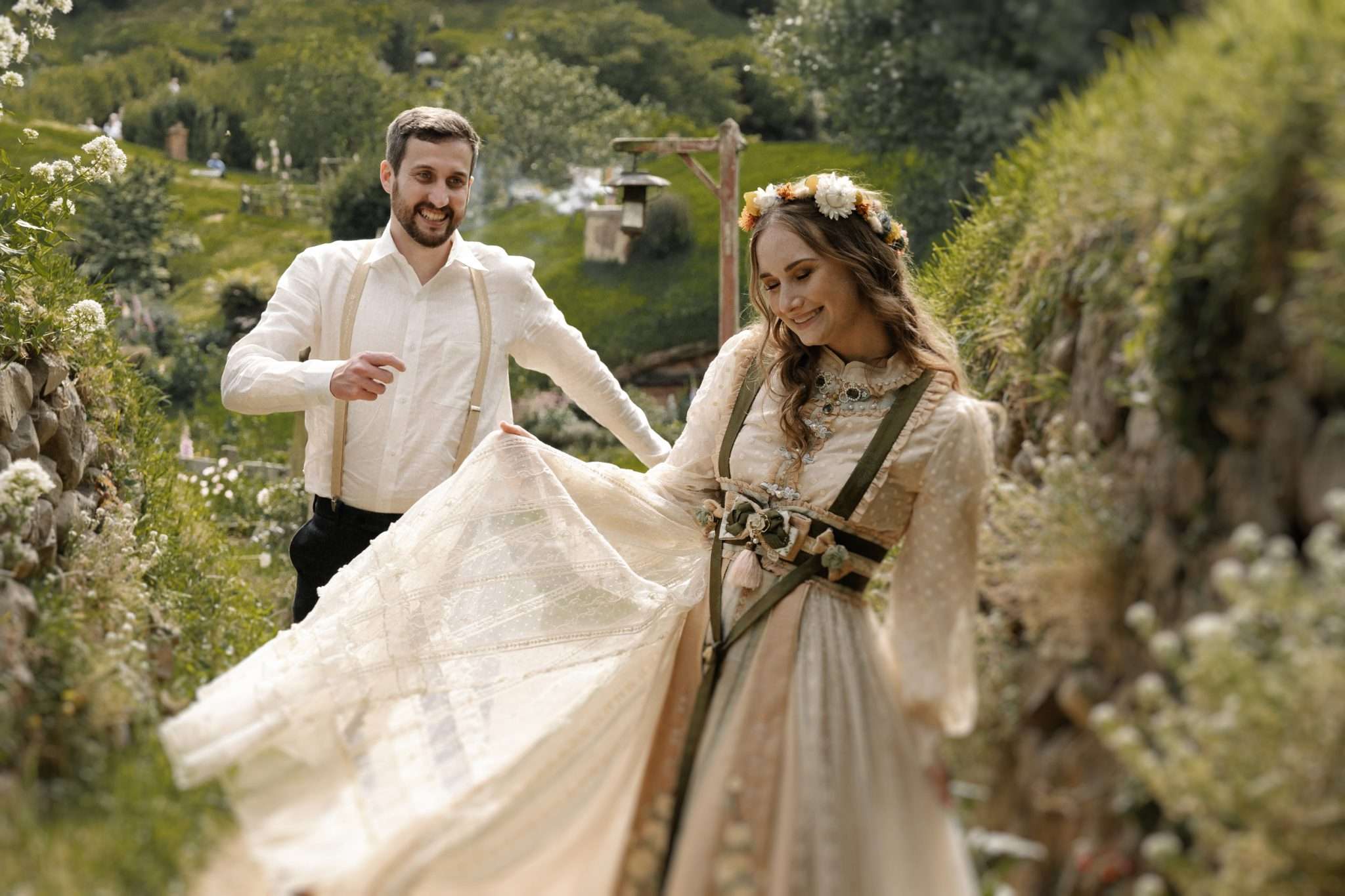 Their day stripped away everything people usually expect from a wedding. “It was just the two of us. No family, no friends, no catering, no reception, no flower girl, and the only ring bearer for us was Frodo Baggins!” they laughed. For their walk down the aisle they didn’t bother with tradition either. Instead, thanks to the Hobbiton staff, they walked down to Johnny Cash’s Ring of Fire as a tongue-in-cheek nod to the flames of Mount Doom. They wrote their own vows, performed a handfasting, and toasted the day with a bottle of officially licensed Lord of the Rings wine.