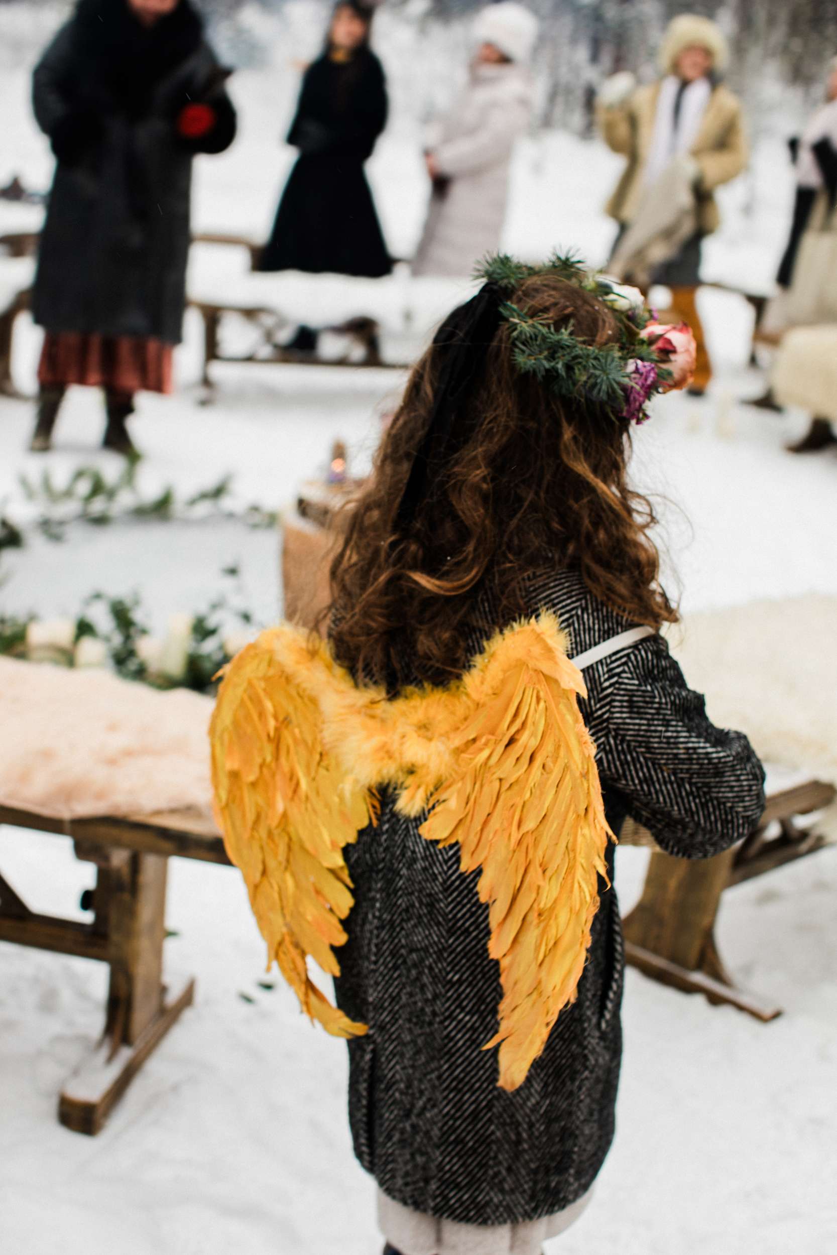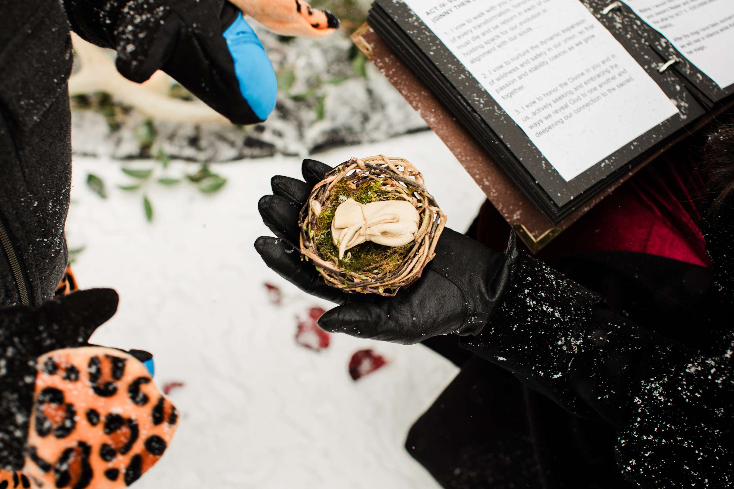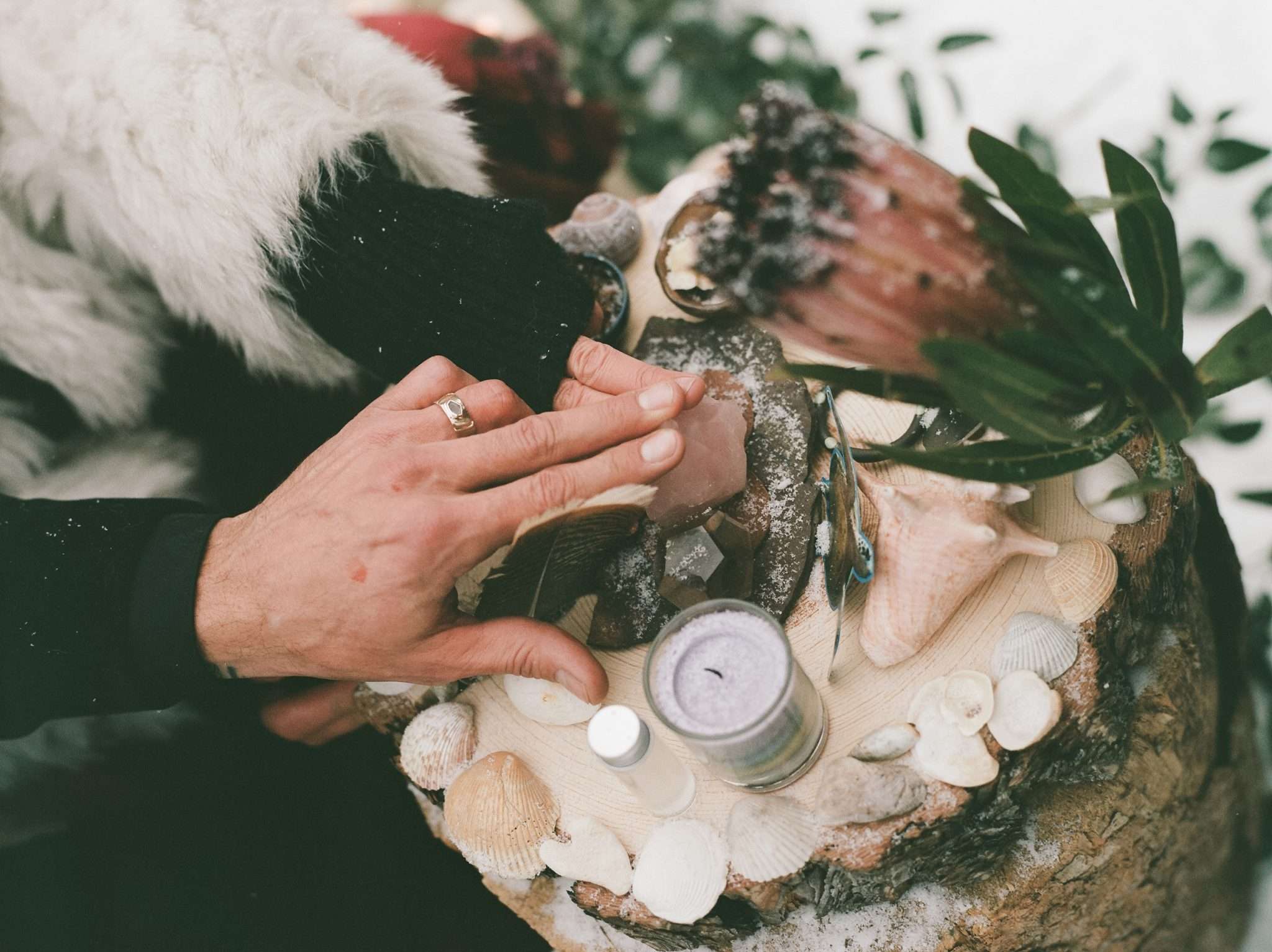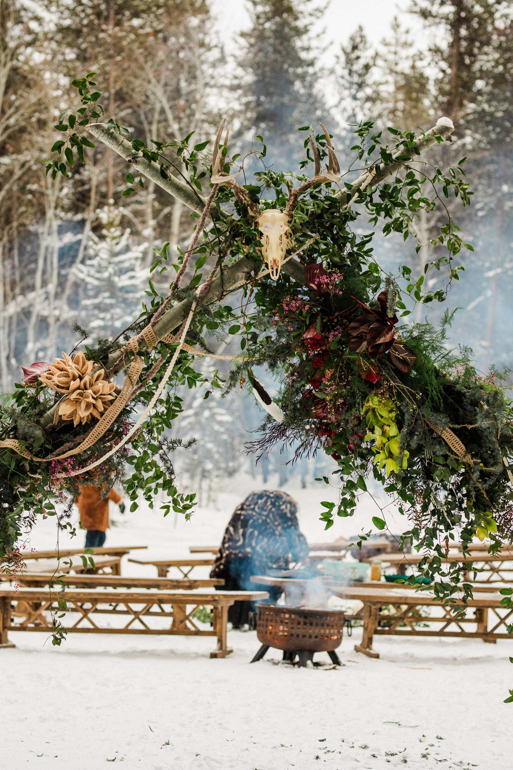 They set the date in January, both a practical and symbolic choice. “We decided to fully embrace the winter, choosing a high mountain location guaranteed to be blanketed in snow”, Ginny told us. “Winter belongs to the direction of the North on the medicine wheel of the indigenous traditions we have both studied. It is the direction of the ancestors and the place where all dreaming begins. We envisioned the whole ceremony as a dream we got to weave, together with our community, our ancestors and the land.”