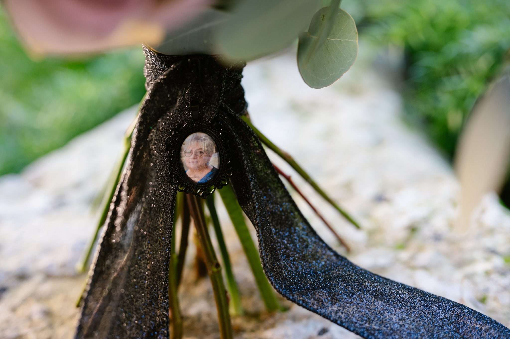 The ceremony featured pagan handfasting traditions. Family and friends carried coloured ribbons representing values like strength, health, kindness, and wisdom. Each person was chosen because they embodied that quality in the couple’s lives, and together those threads were woven into the cord that bound Marialaura and Fausto’s hands. It was personal, emotional, and communal. They also created a memory corner for loved ones who had passed, including Marialaura’s mother. Her presence was carried in a tribute within the bouquet, and her grandmother’s poem about love and destiny appeared in the invitations and ceremony booklet.