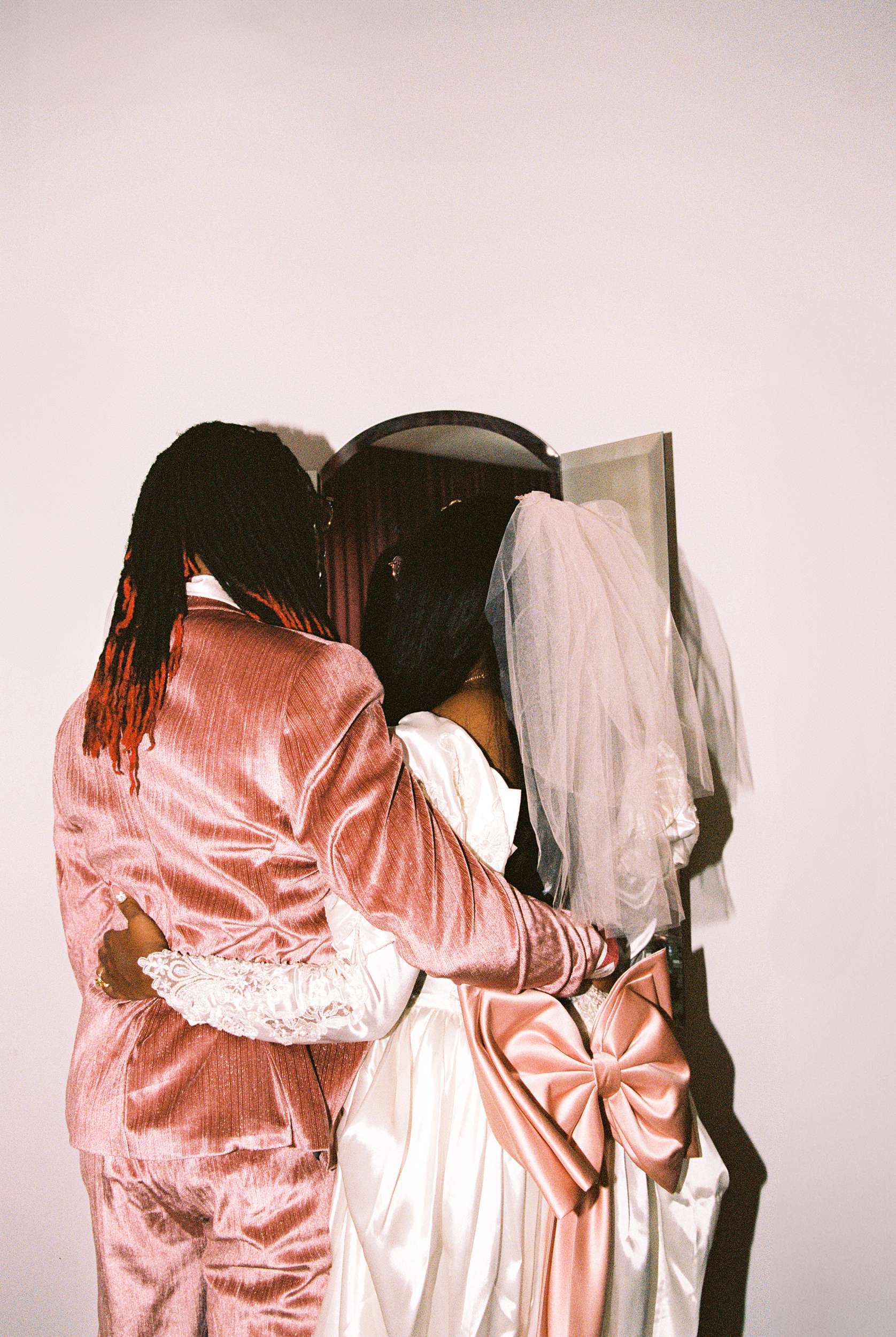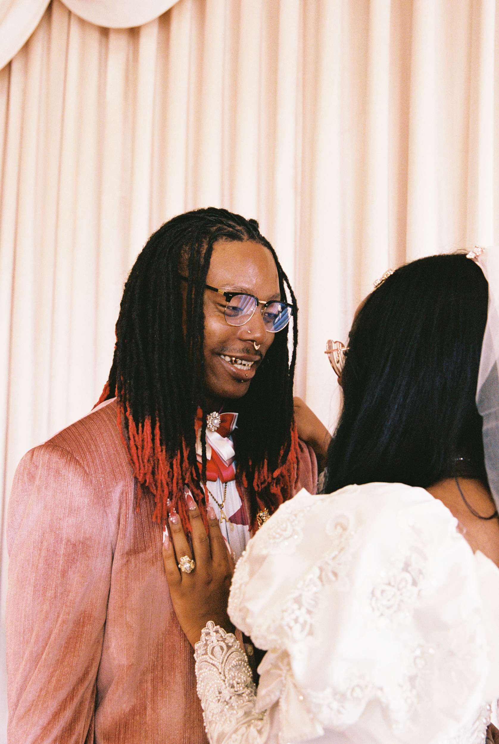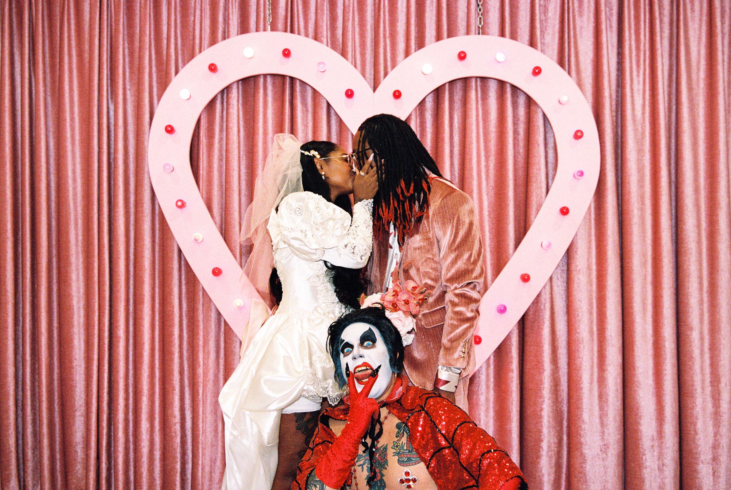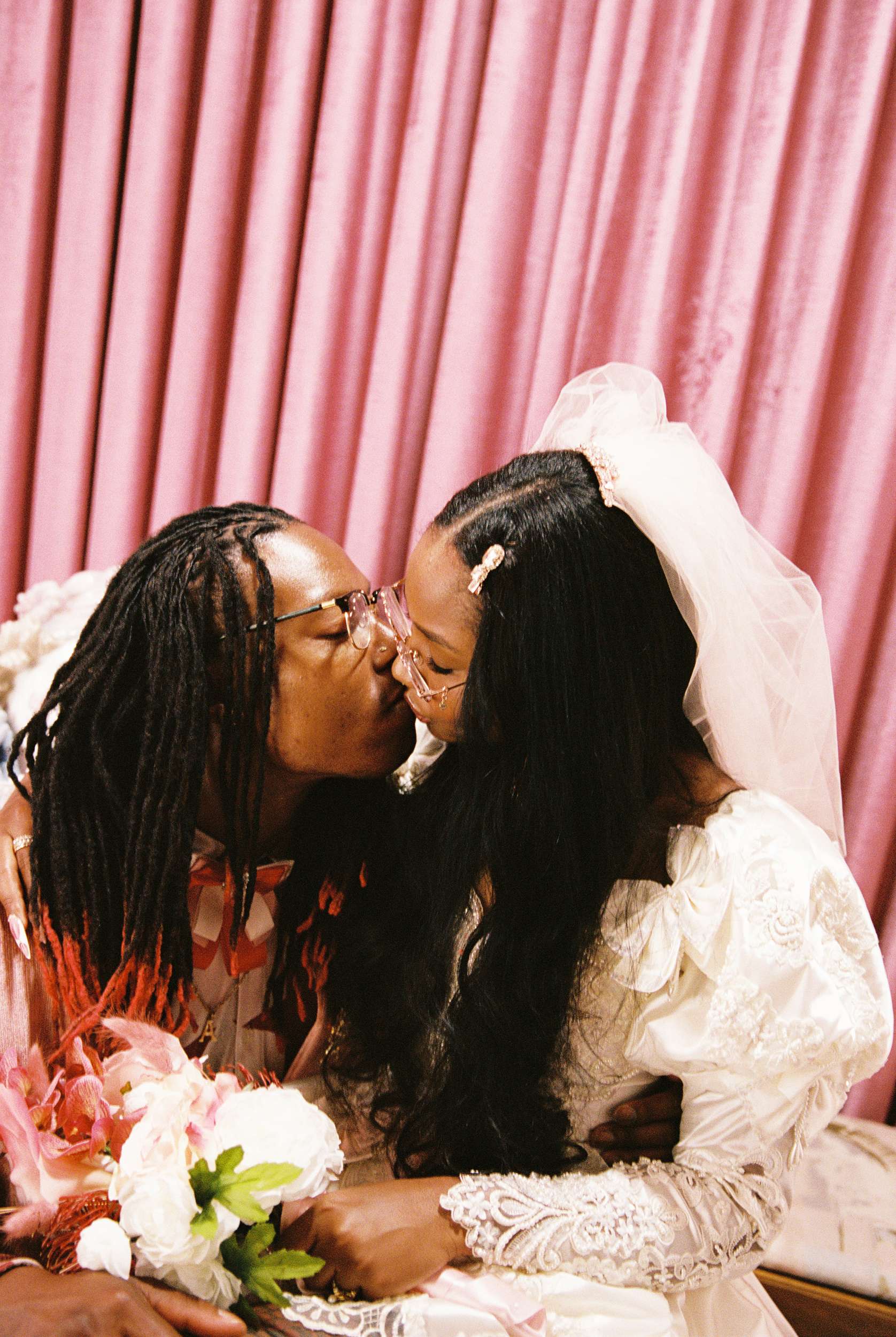 The guest list was short, and attendees were all asked to dress in pink or red. The bride and groom’s outfits were bold and totally them. Keshaun wore grillz and a pink velvet tux he scored for $70 on Amazon. Alyssa found her vintage gown by chance. “My best friend randomly pointed out a vintage bridal store while we were driving, and I immediately knew my dress was the one as soon as I saw it.” The gown cost $350 with another $180 in alterations, making it one of the biggest wins of the day.