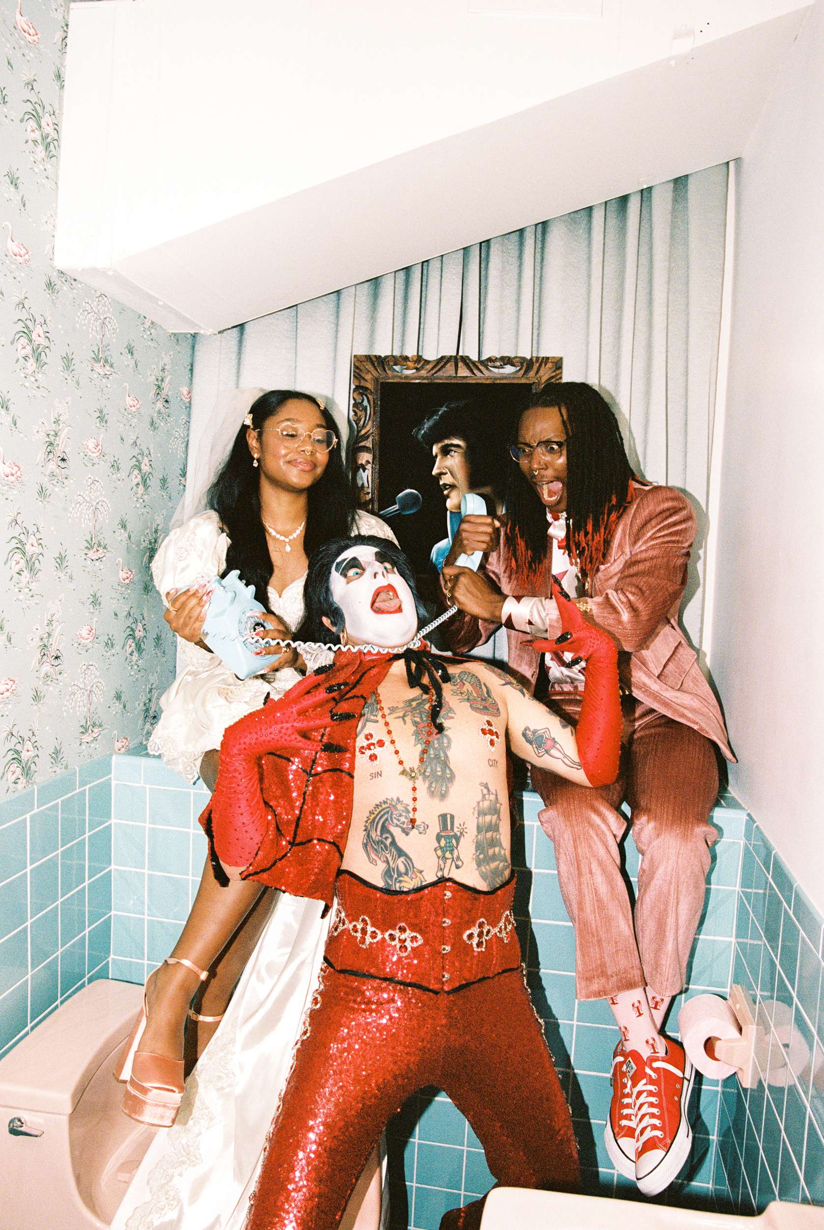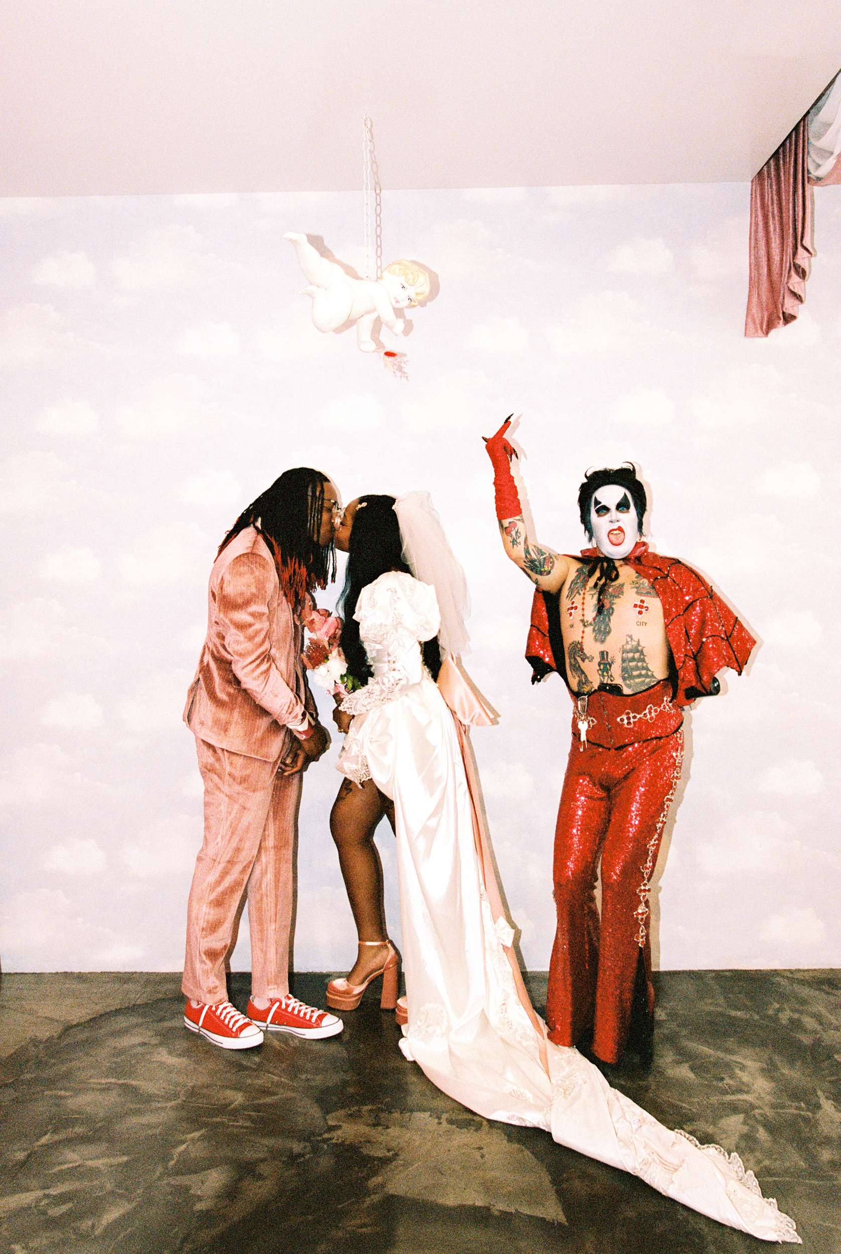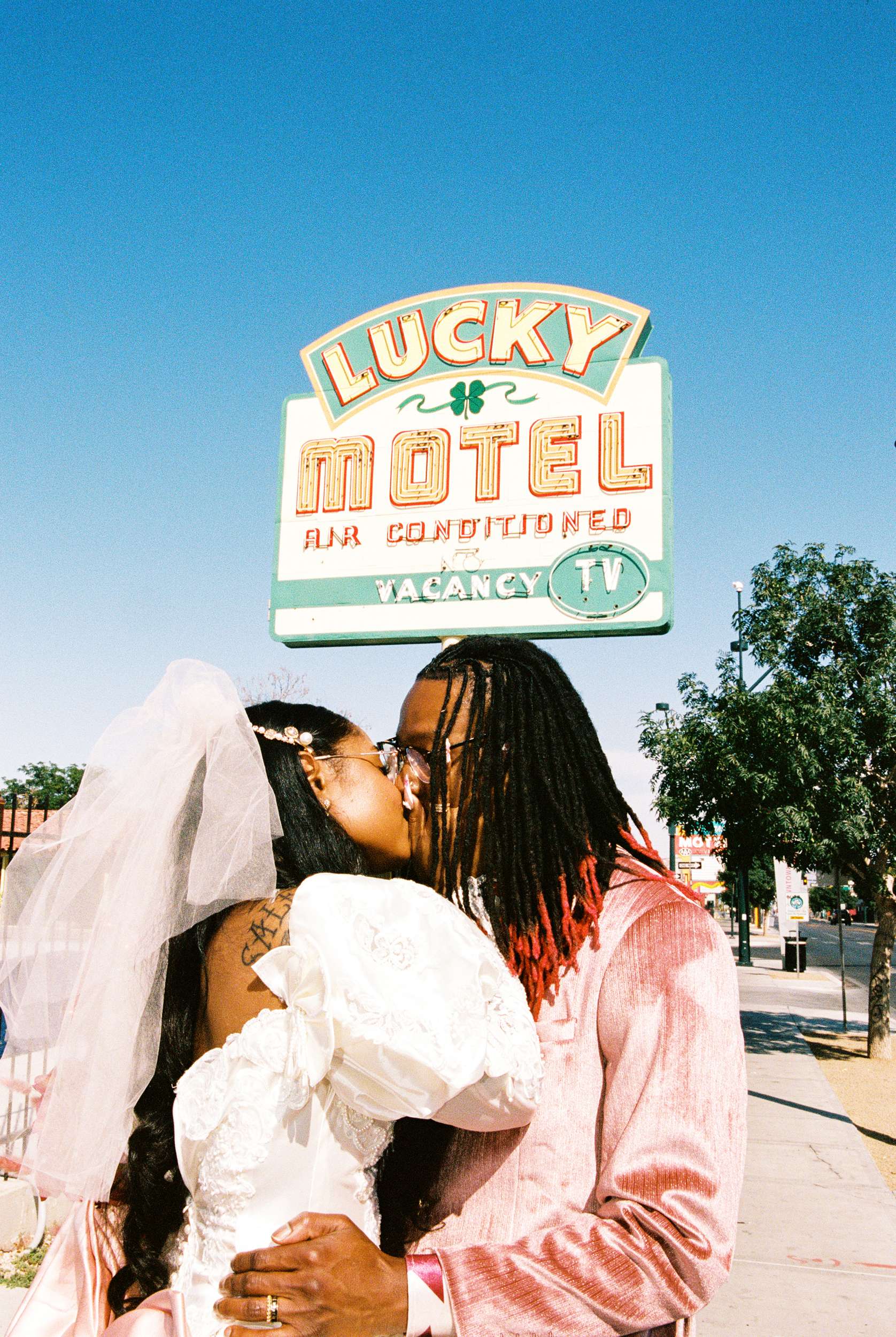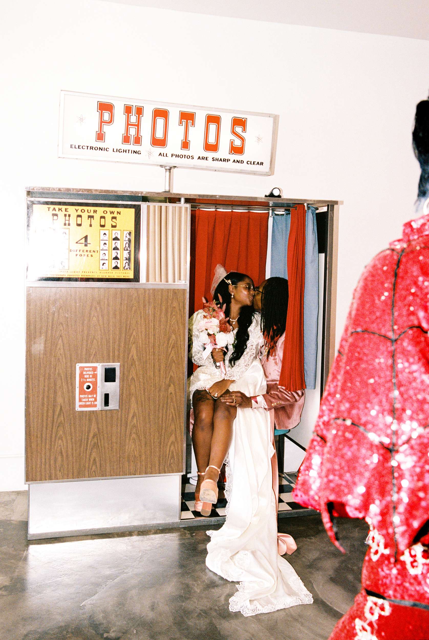 The guest list was short, and attendees were all asked to dress in pink or red. The bride and groom’s outfits were bold and totally them. Keshaun wore grillz and a pink velvet tux he scored for $70 on Amazon. Alyssa found her vintage gown by chance. “My best friend randomly pointed out a vintage bridal store while we were driving, and I immediately knew my dress was the one as soon as I saw it.” The gown cost $350 with another $180 in alterations, making it one of the biggest wins of the day.
