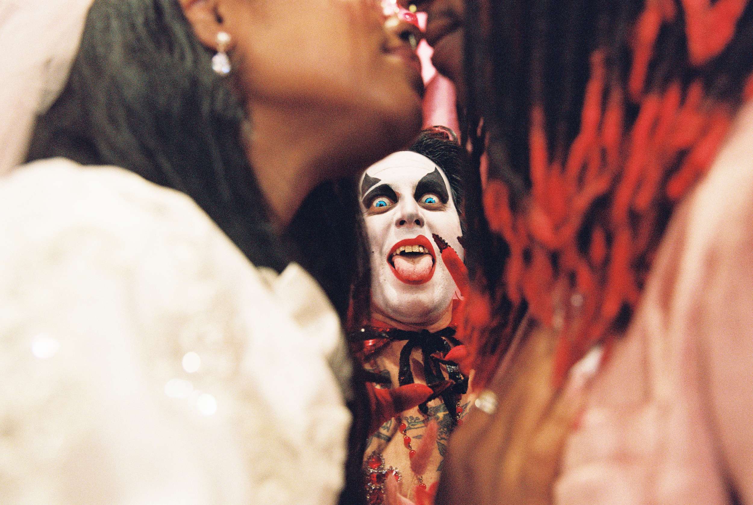 The couple married on Alyssa’s birthday at Sure Thing Chapel in Vegas. Hellvis officiated so there was no religious rituals and no pre-prepared vows. “We basically swore on the ‘unholy’ bible to spend the rest of our lives together having fun and committing sins, which definitely made my Christian mother’s eye twitch!” Alyssa said. “We also chose not to write vows because I hate PDA. The only reason we’re seen kissing is because our photographer told us to!”