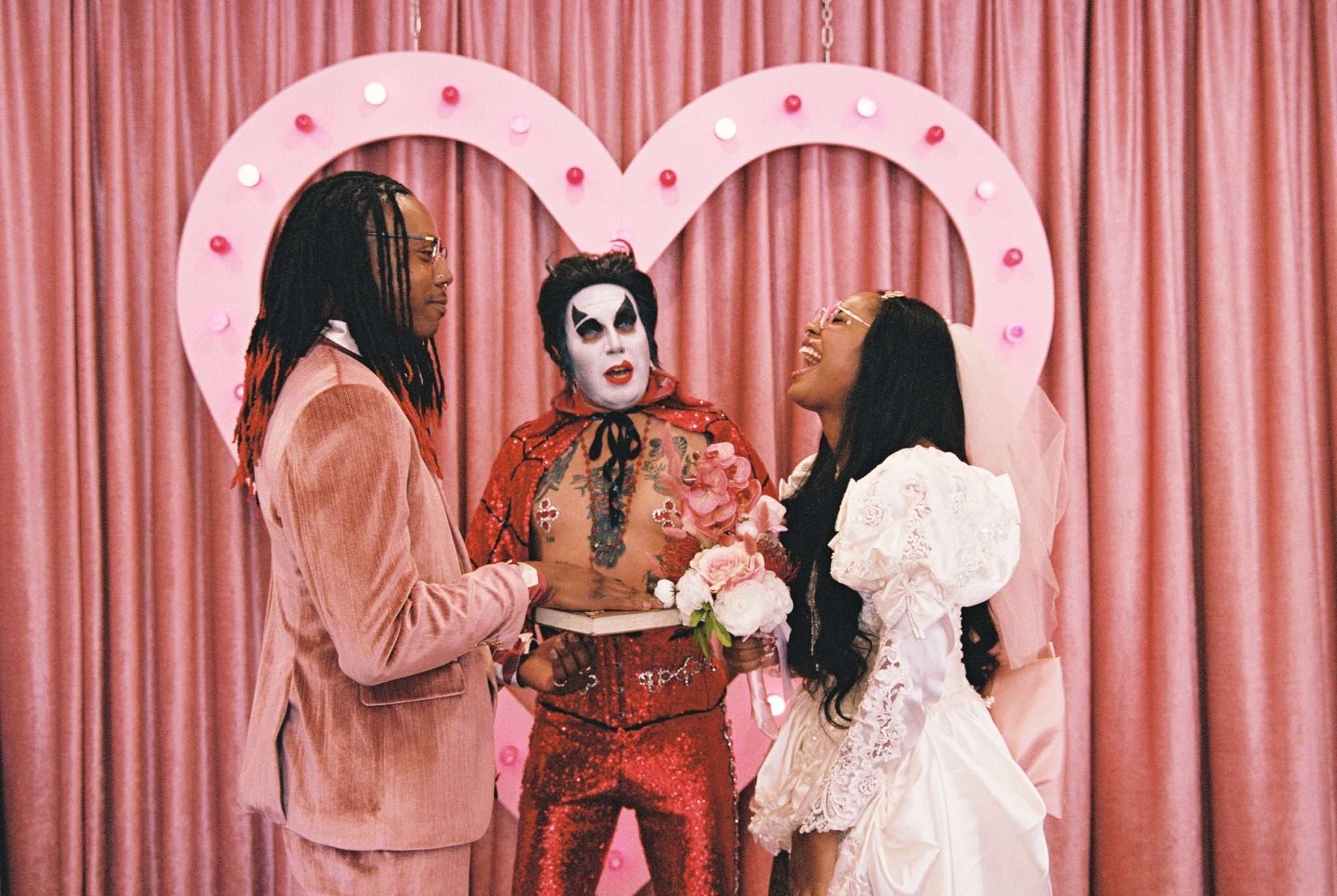 When it came to their wedding, Alyssa called the theme “80s 80s 80s!! And pink!” She lives for Memphis design, the music, the fashion. Their house already looks like a neon time capsule, so the wedding was simply an extension of that. “Keshaun loves me, so he’s on board with whatever makes me happy,” she laughed.