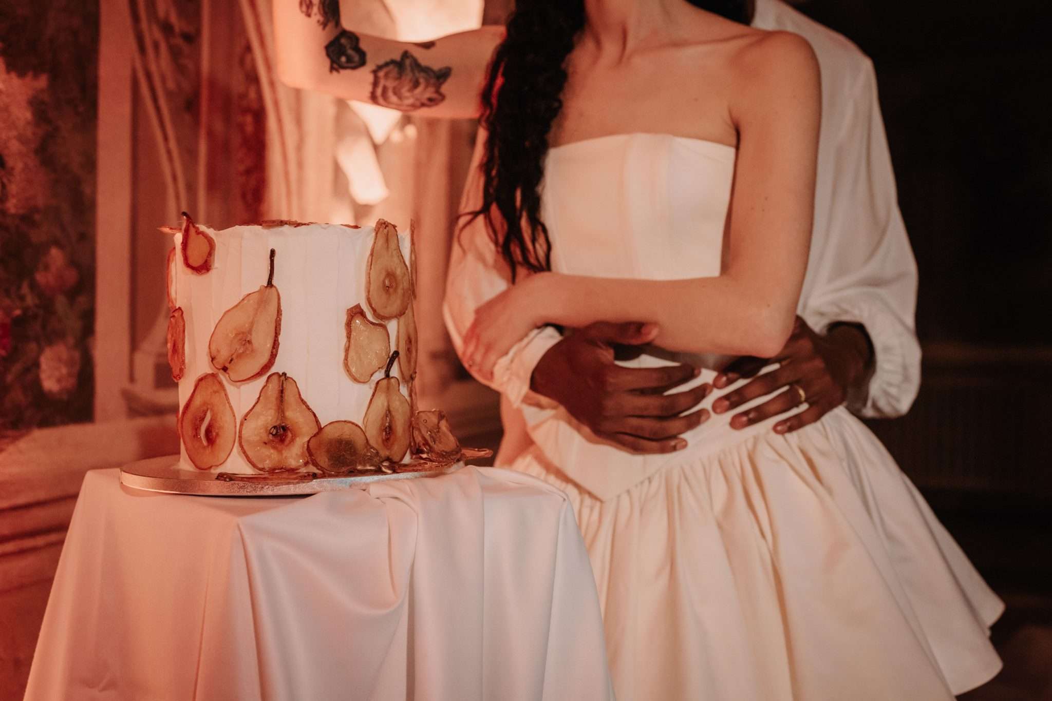 Wedding planner Antonella Zamboni, who art directed the shoot, and her team of Italian creatives shaped the concept with precision and care. The florals rise like sculptural works. The tailoring carries weight and structure. The setting feels less like a backdrop and more like another character in the story.