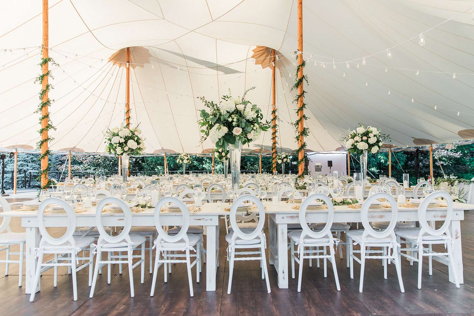 Unless you’re in a climate with no chance of rain or heat and humidity (which hardly exists), a tent isn’t optional, it’s essential. A tent does more than protect against weather. It creates an elegant, defined space where you can control lighting, temperature, and sound. Think chandeliers, draping, custom flooring, and climate control.