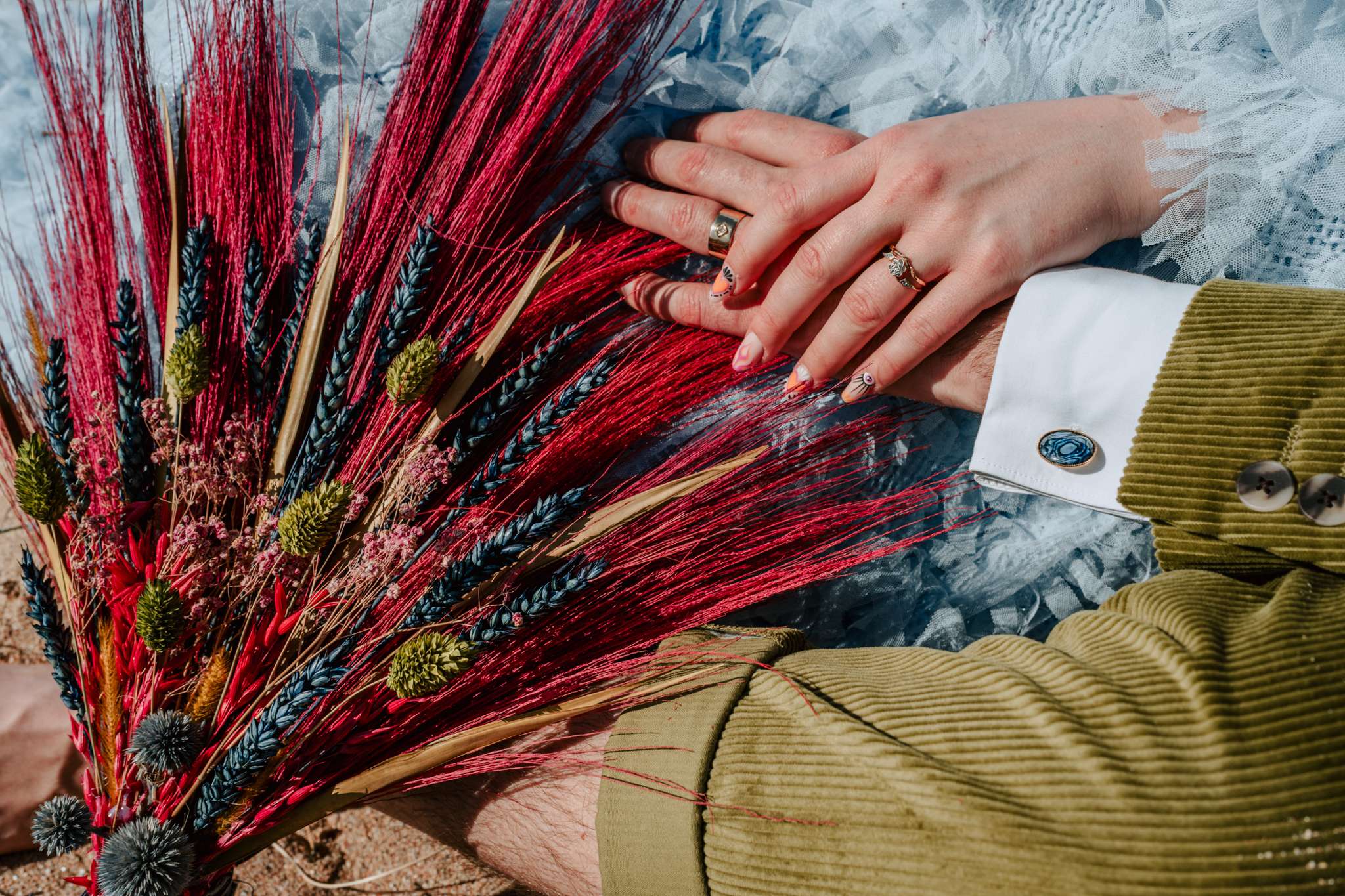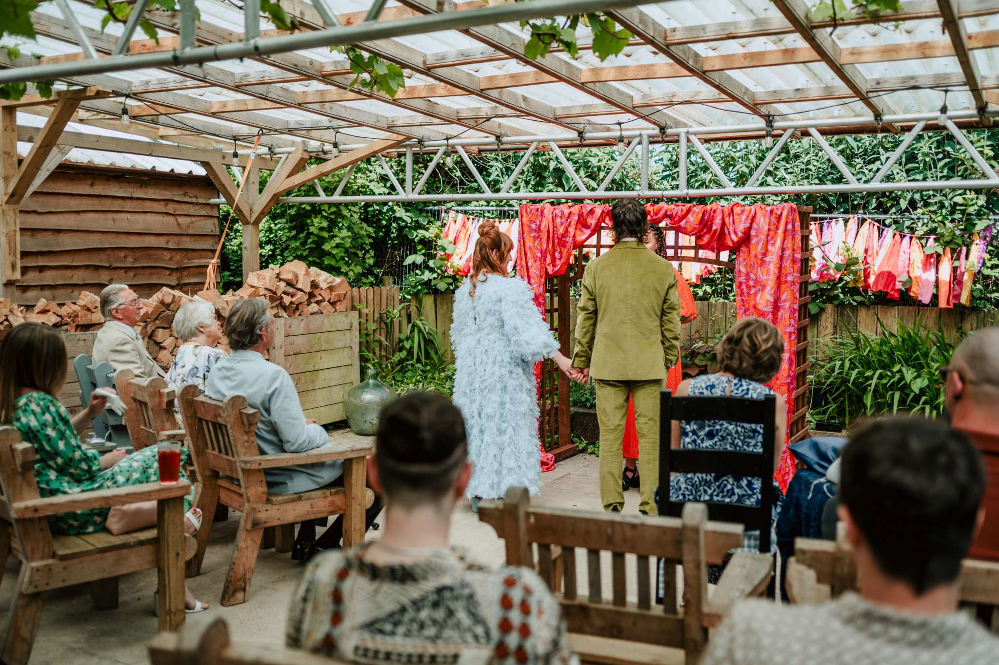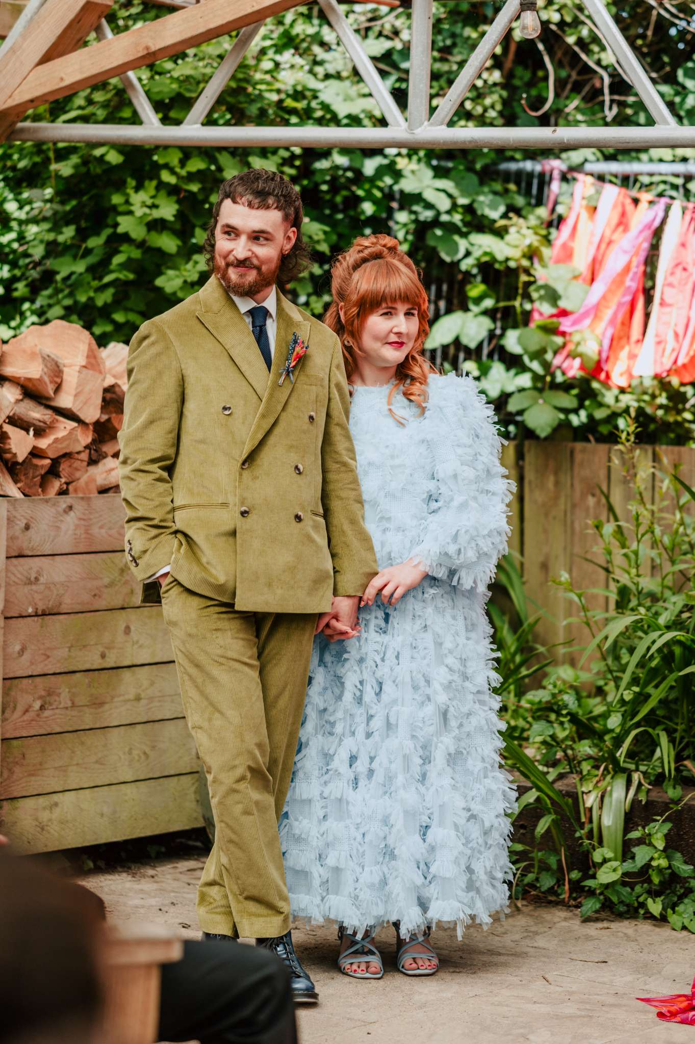 Although doing their wedding their way wasn’t always easy, in the end, they are so happy with how it all turned out. Marie concluded, “Going the alternative route with weddings is not always the simplest. We had originally thought that we were making things easier but in reality that was not the case. However, stripping the idea of a wedding back to its bones then building it back up with every tiny detail that’s just for you is fun and feels so special on the day. It did mean we had to work out how we would construct this day we wanted, how to communicate what the day would be like to our guests and it felt more exposing to judgement than if we had gone with a standard type wedding. With all that said we wouldn’t have changed it as it really felt like us. We were able to celebrate our relationship whilst feeling fully ourselves on the day and that is worth the extra work.”