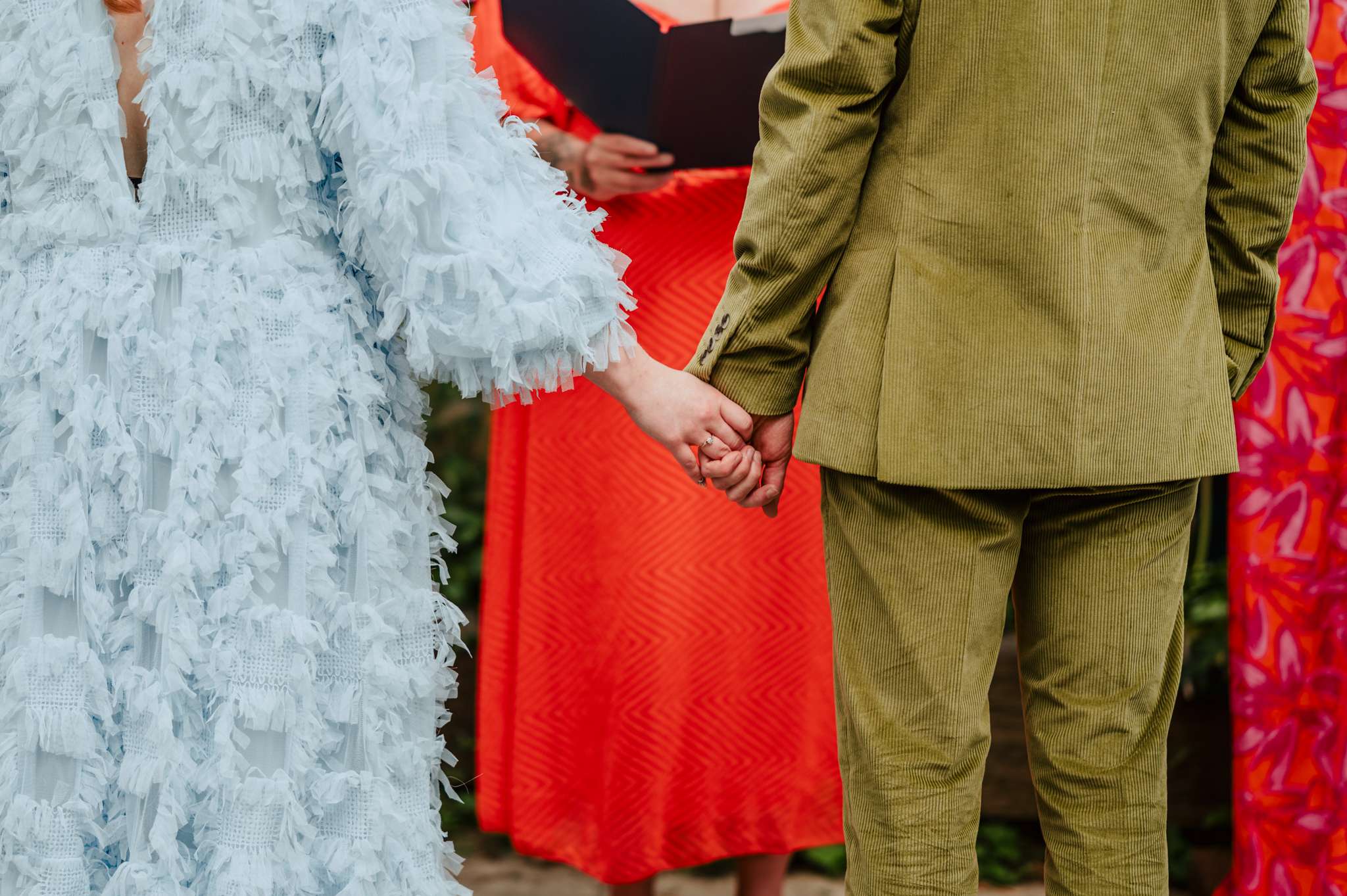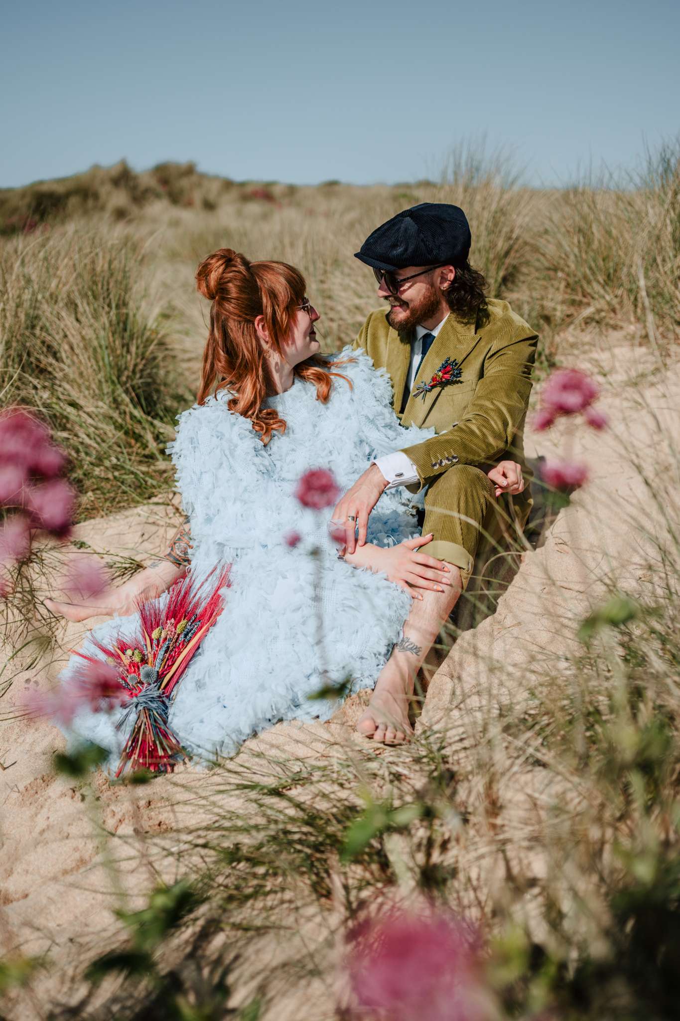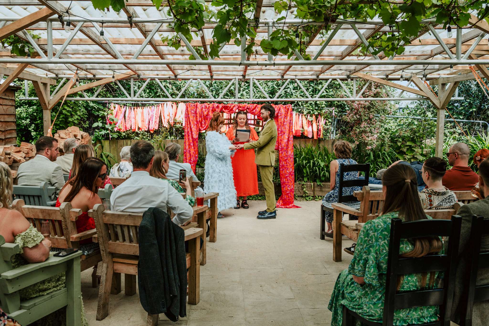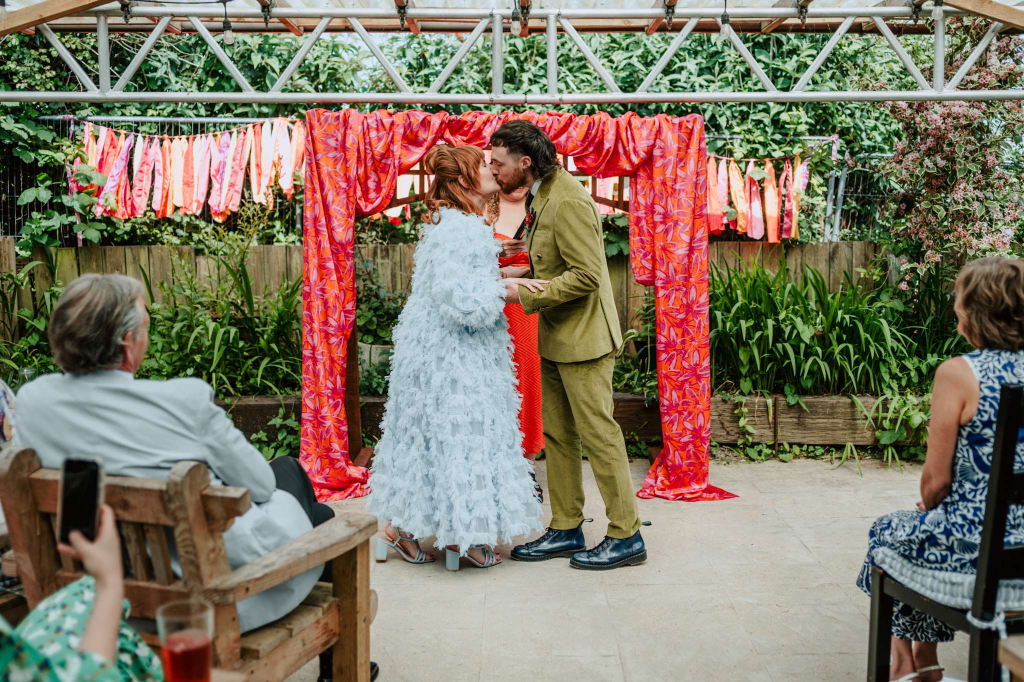 Although doing their wedding their way wasn’t always easy, in the end, they are so happy with how it all turned out. Marie concluded, “Going the alternative route with weddings is not always the simplest. We had originally thought that we were making things easier but in reality that was not the case. However, stripping the idea of a wedding back to its bones then building it back up with every tiny detail that’s just for you is fun and feels so special on the day. It did mean we had to work out how we would construct this day we wanted, how to communicate what the day would be like to our guests and it felt more exposing to judgement than if we had gone with a standard type wedding. With all that said we wouldn’t have changed it as it really felt like us. We were able to celebrate our relationship whilst feeling fully ourselves on the day and that is worth the extra work.”
