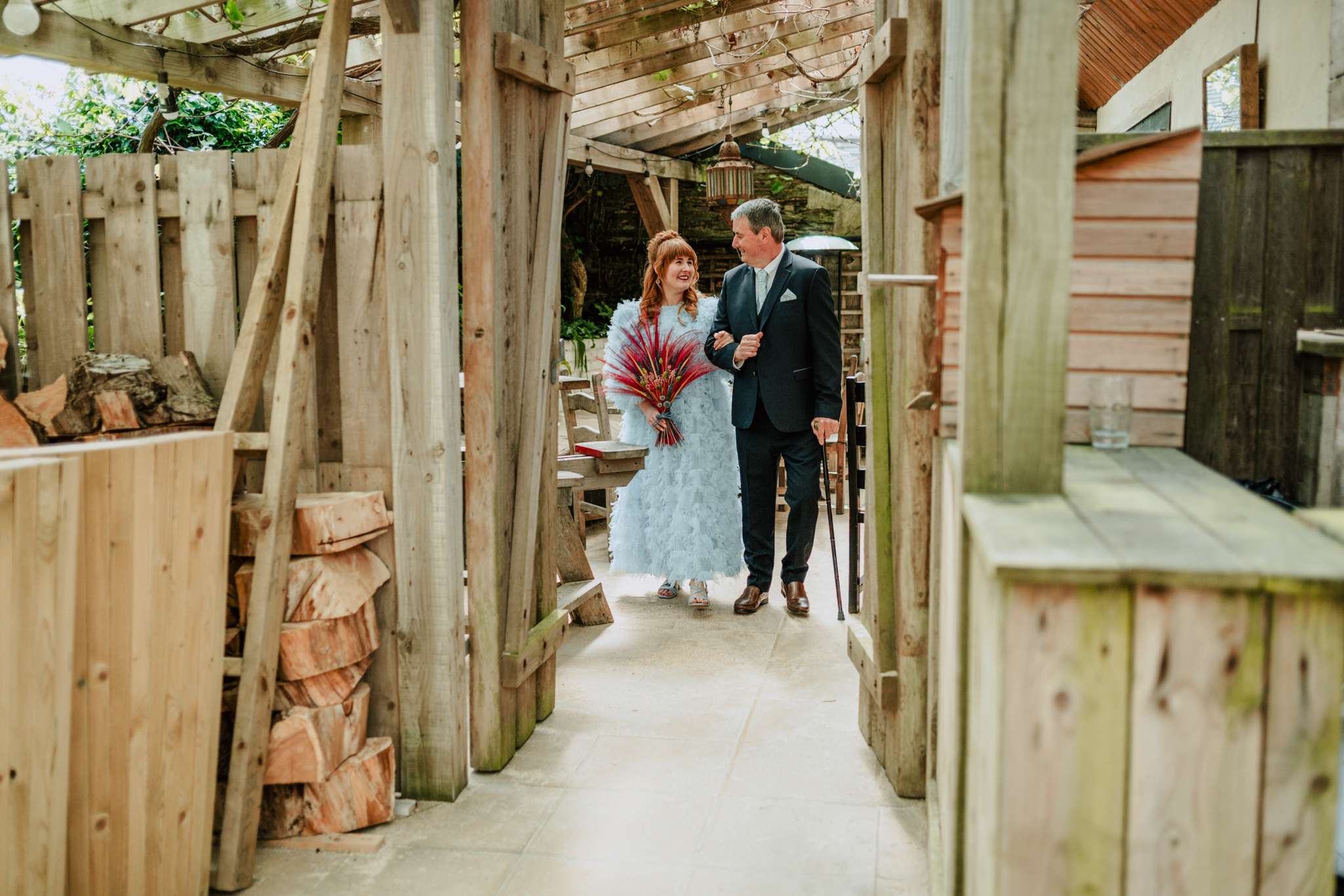However, if they could have splurged, they would have chosen a venue already set up for weddings. DIY weddings, however small, can be a lot more work. “Doug was in the courtyard at 8 am on the morning of our wedding building the altar, draping fabric, arranging chairs and all the rest when he should have been getting ready,” Marie explained. “I had my wedding dress hoisted up and was stood in the mud taking bunting down whilst Doug was taking the altar apart with a drill in his suit!” The effort was intense, but it made the day unmistakably theirs.